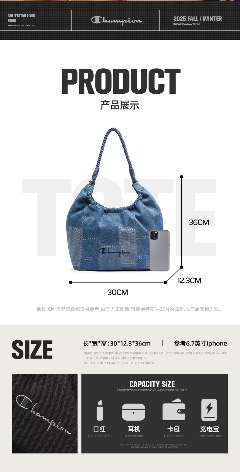 Champion Shoulder Bag Underarm Bag Spring Trendy Casual Outdoor Commuting Tote Bag Women's Fashion Backpack