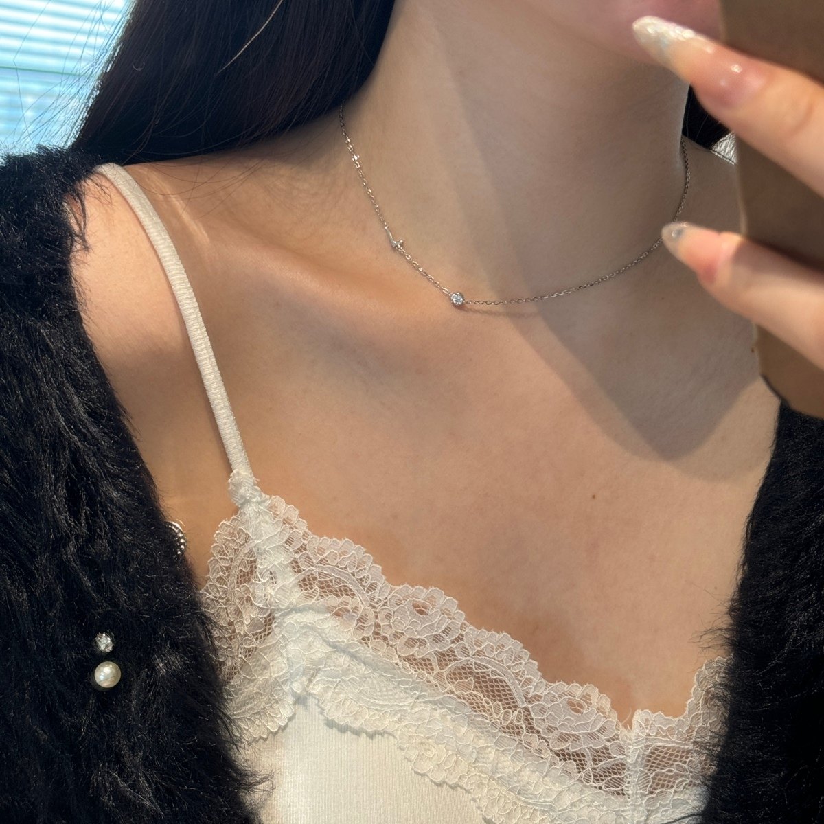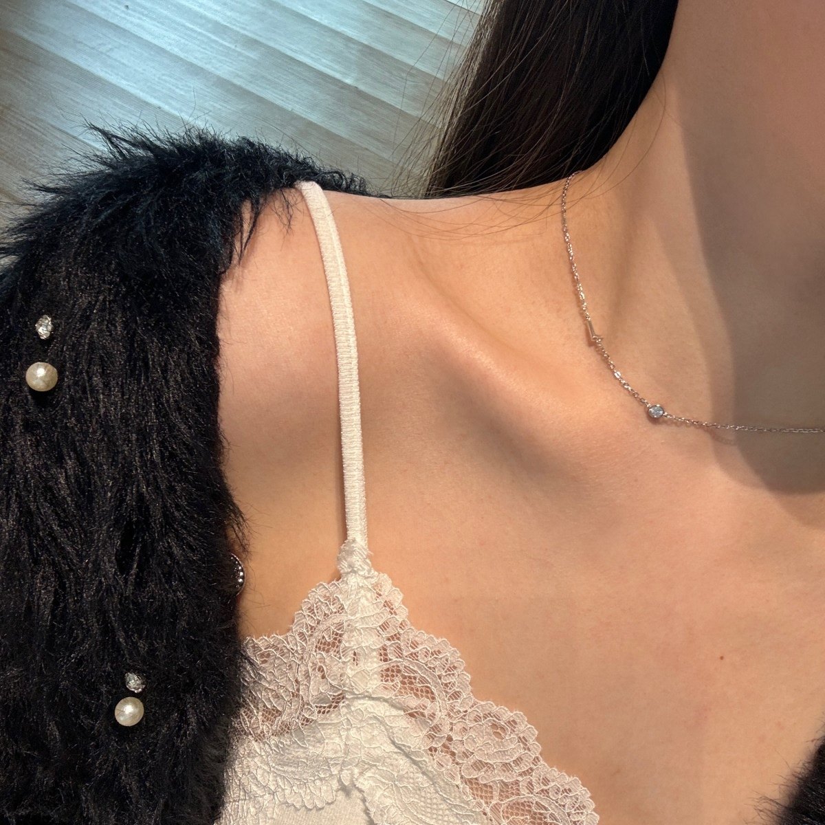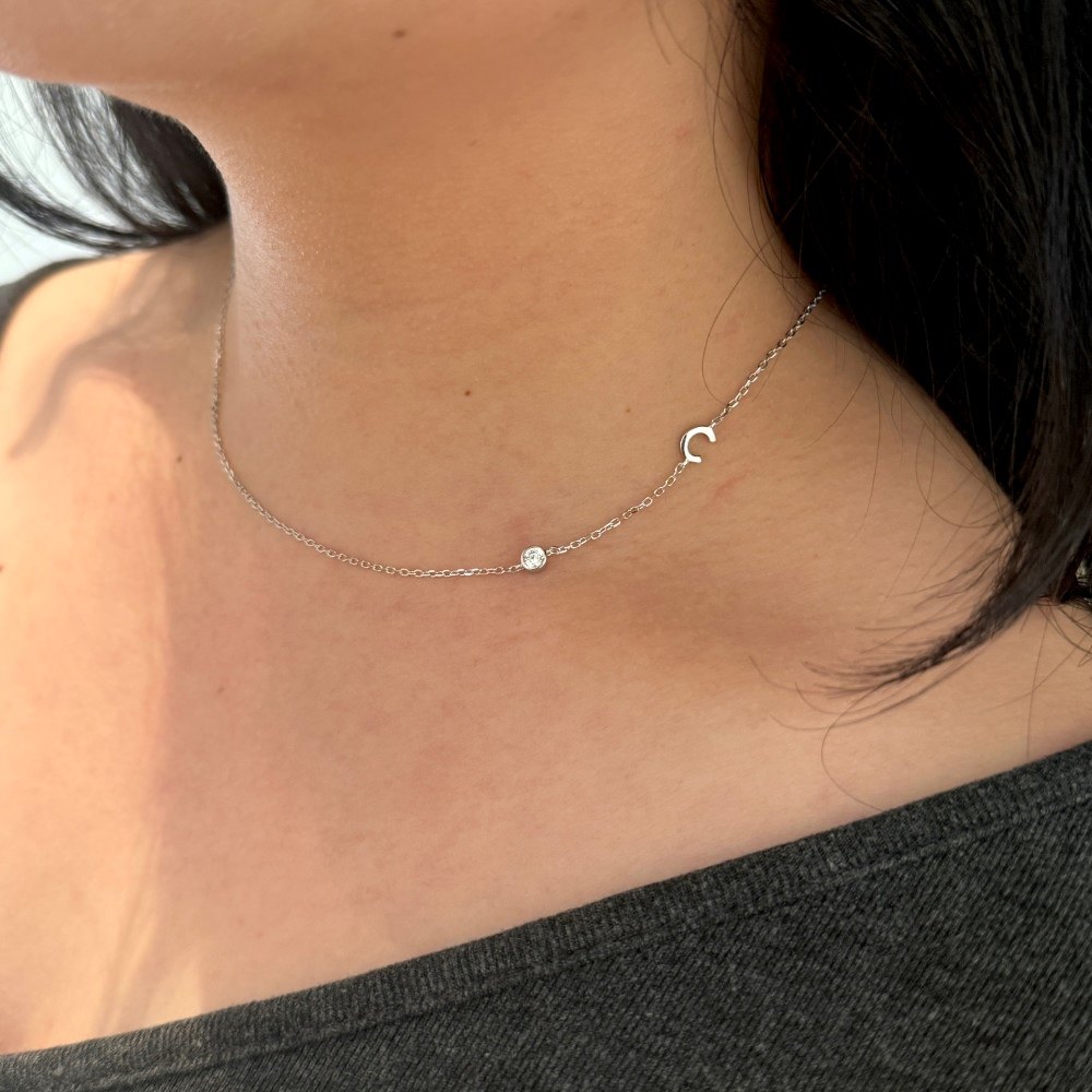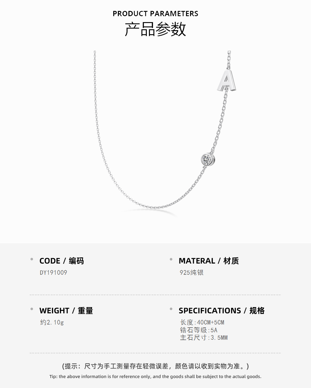 Kellerfu Initial Necklace S925 Silver Women's Single Diamond Clavicle Chain Best Friend Birthday Gift 26 English Letters