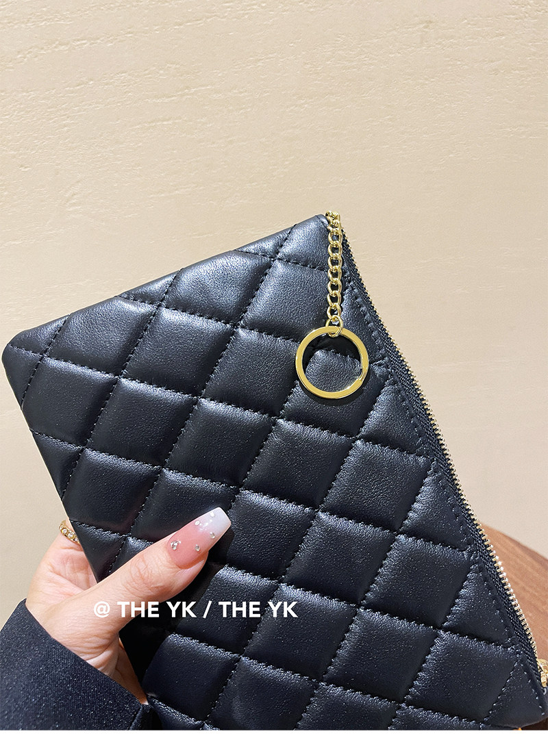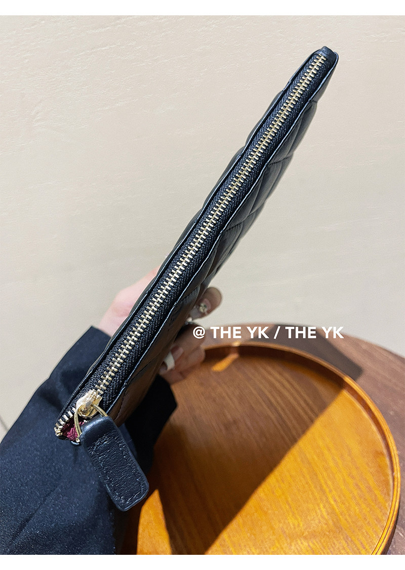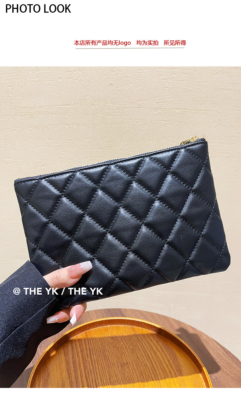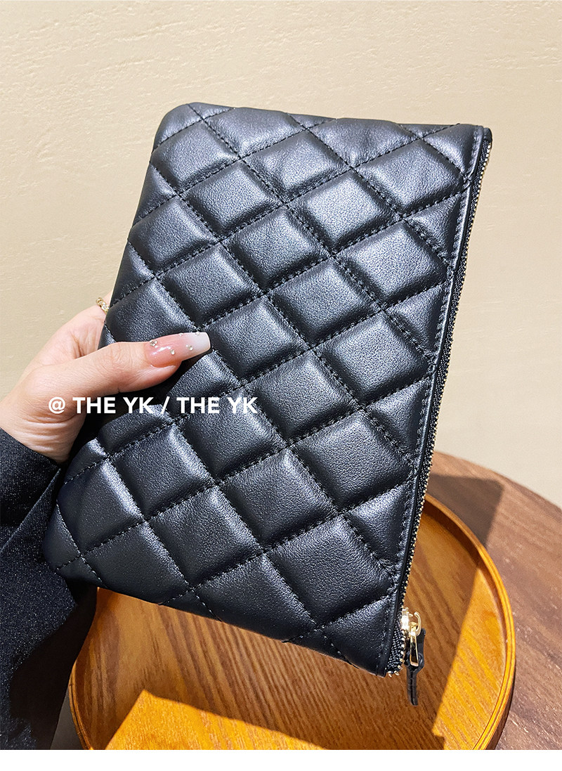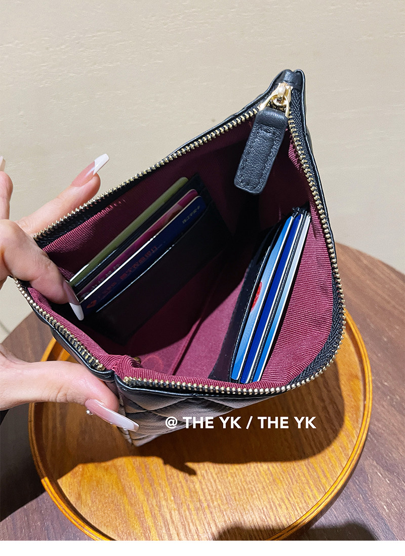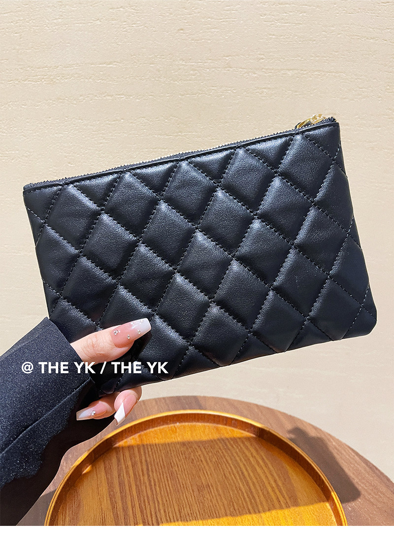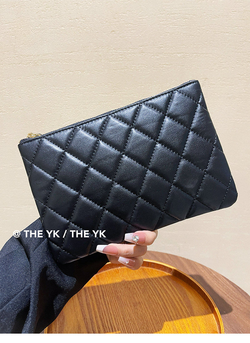 Genuine Leather Small Chanel-Style Clutch Bag for Women, Large-Capacity Quilted Makeup Bag, Document Organizer, Key Bag, Wallet