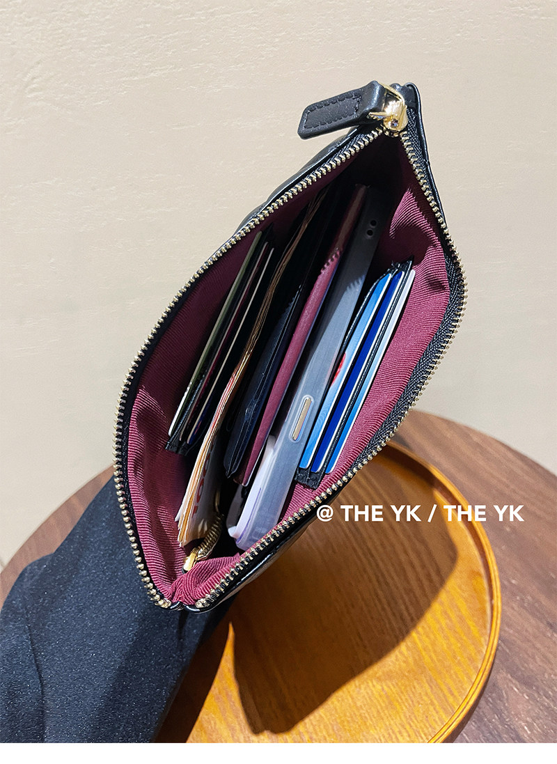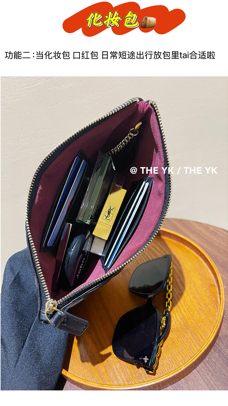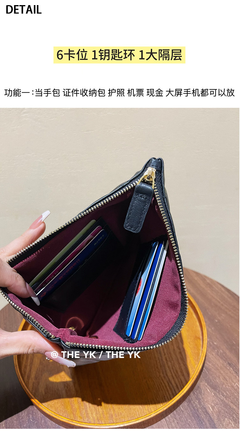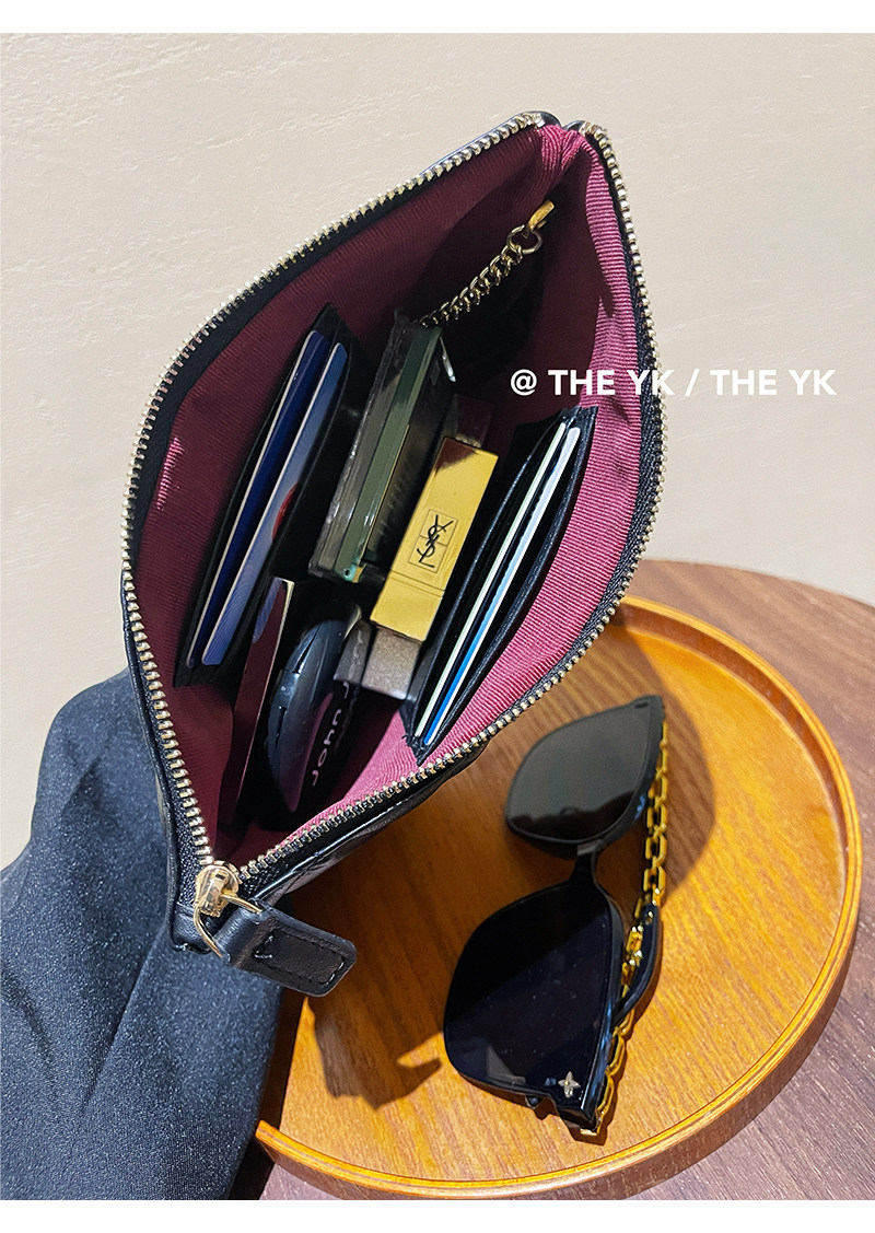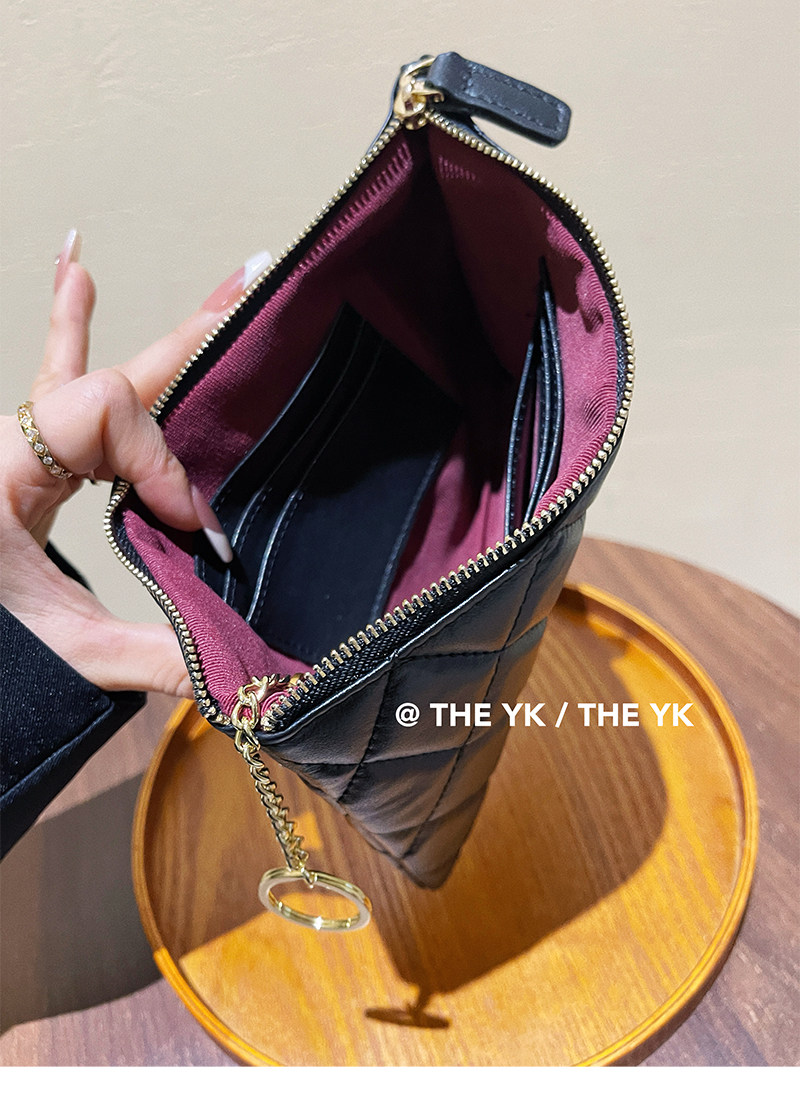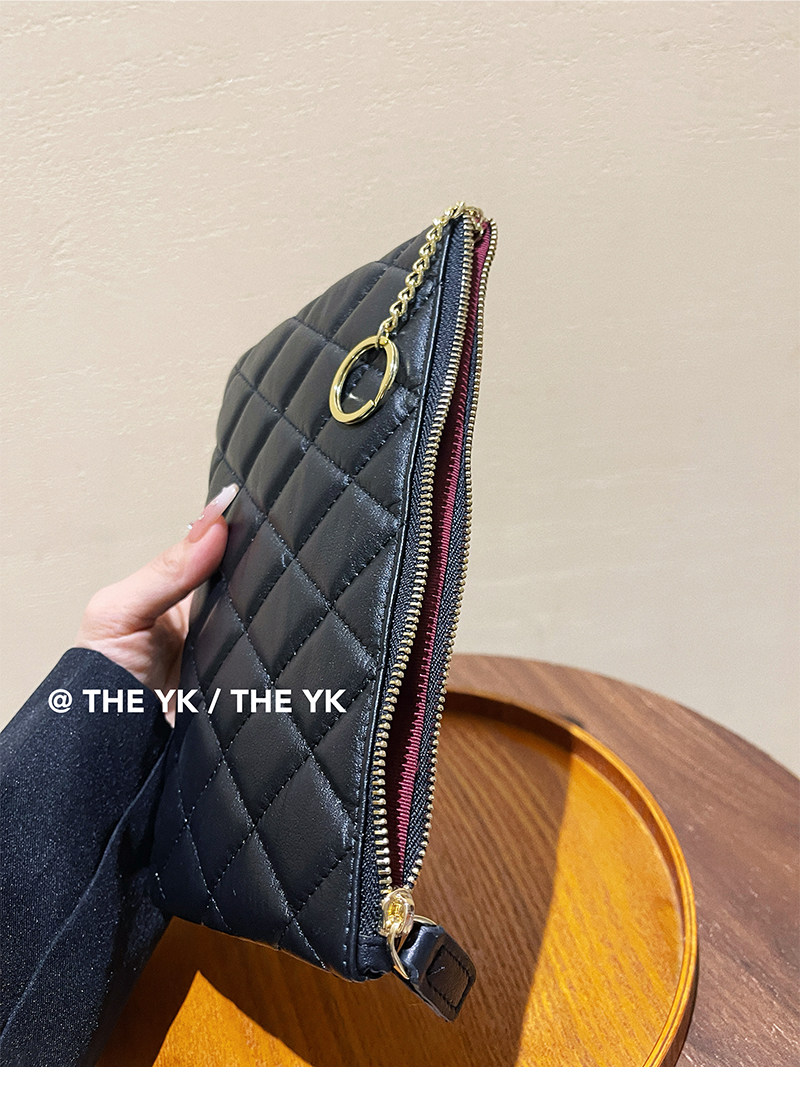 Genuine Leather Small Chanel-Style Clutch Bag for Women, Large-Capacity Quilted Makeup Bag, Document Organizer, Key Bag, Wallet