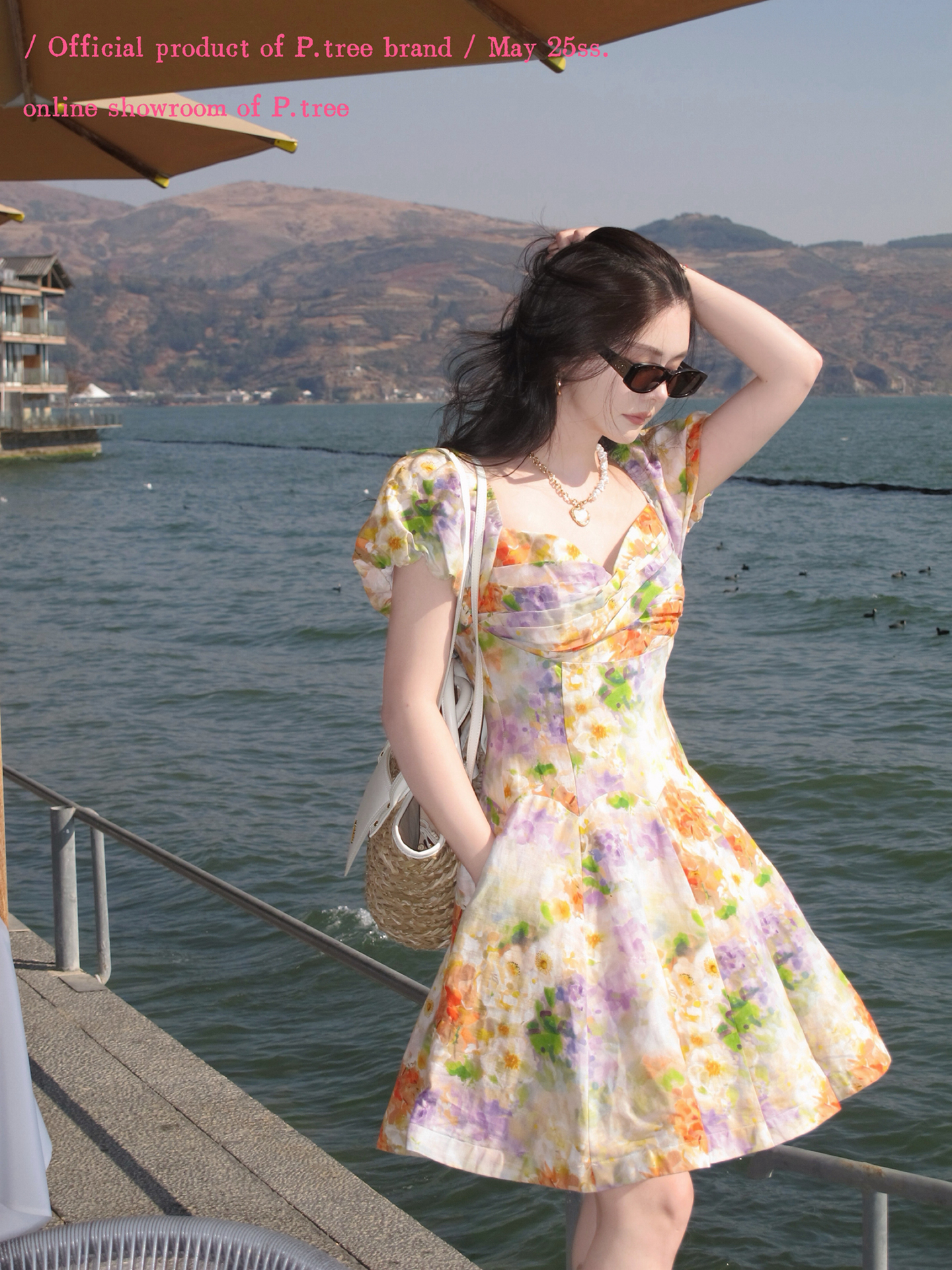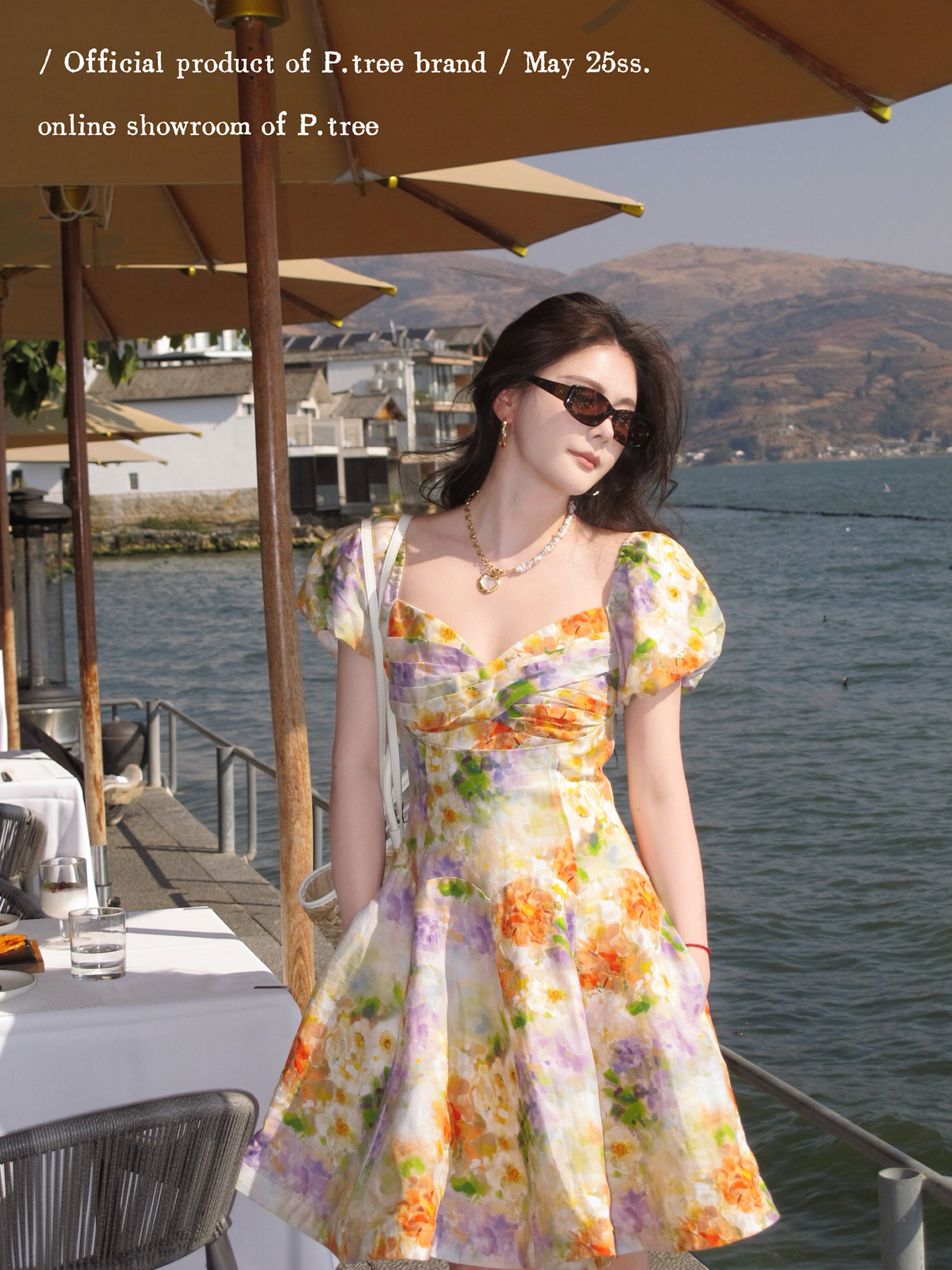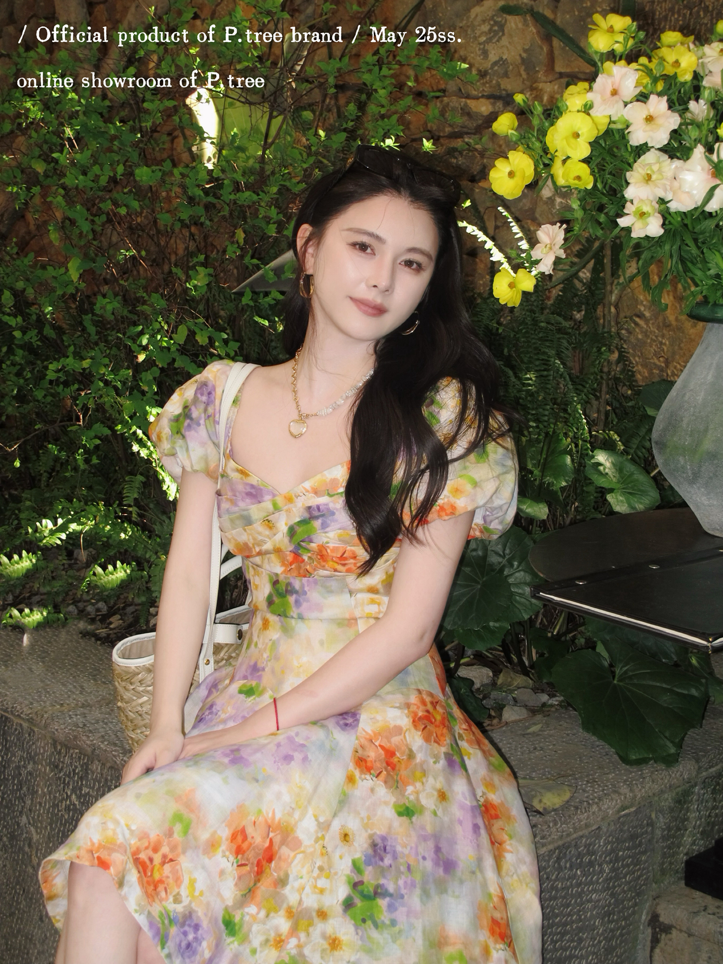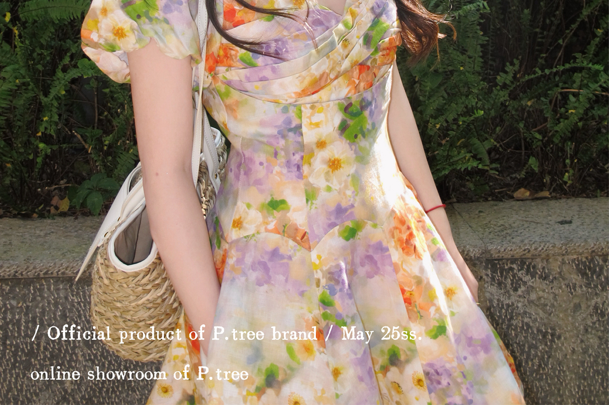 P.Tree “St. Sarah's Garden” 100% Linen Printed Dynamic Short French Dress