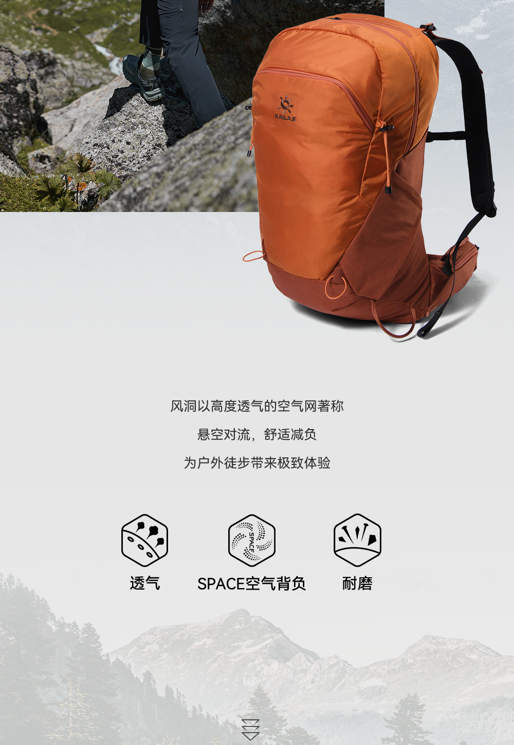 Kailas Wind Cave Iv 26L Lightweight Hiking Backpack, Breathable, Wear-Resistant, Splash-Proof, Double-Shoulder Outdoor Sports