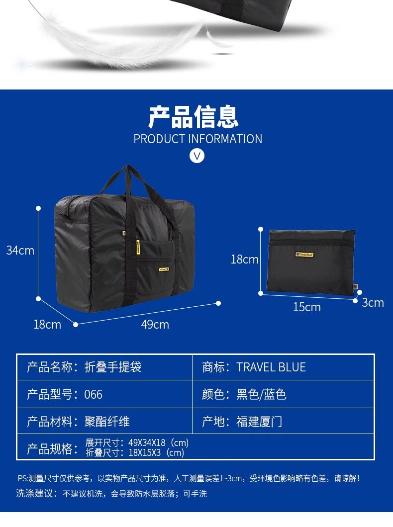 Travel Blue Large-Capacity Portable Luggage Bag for Men, 30L Portable Boarding Foldable Travel Bag