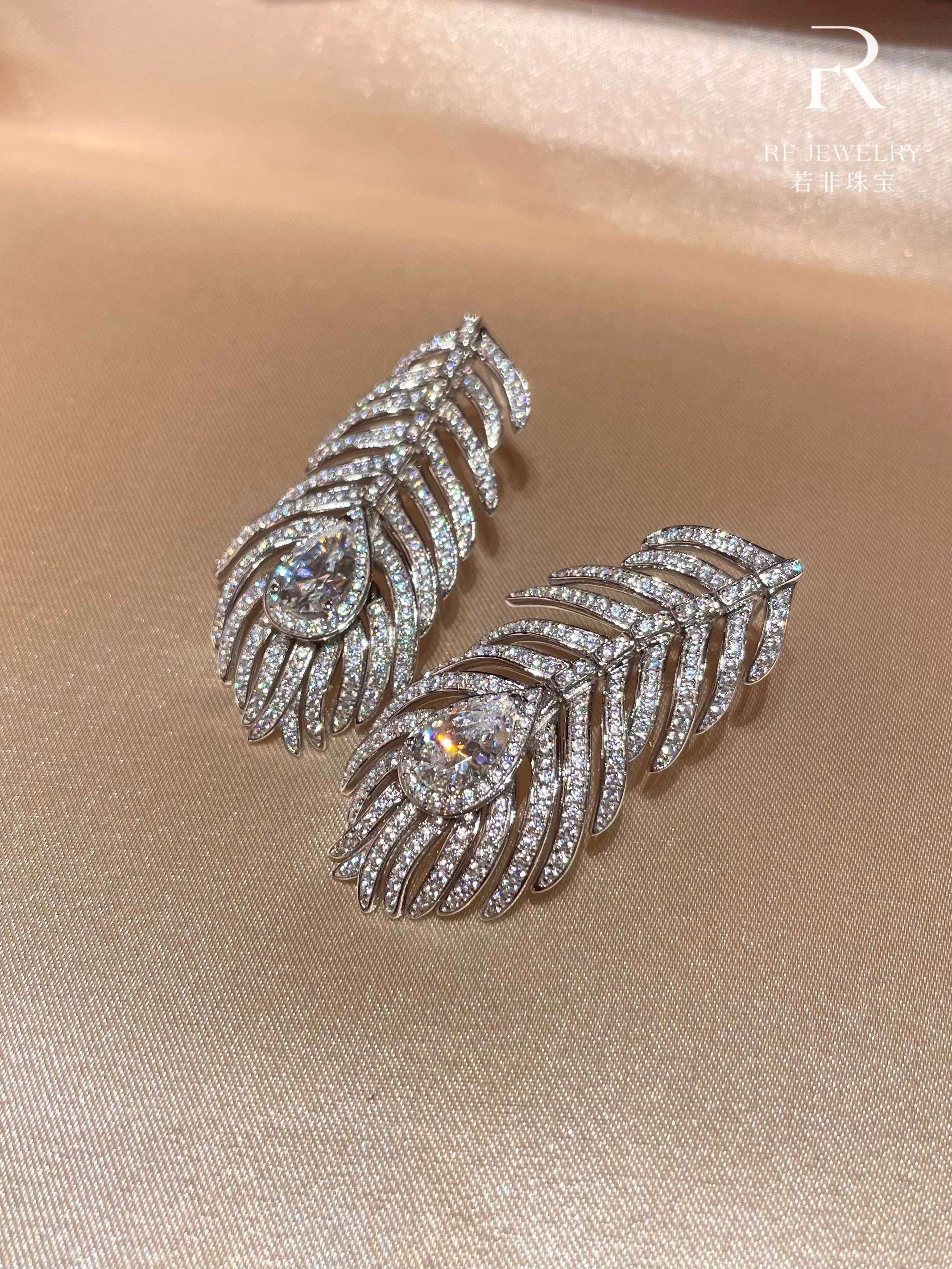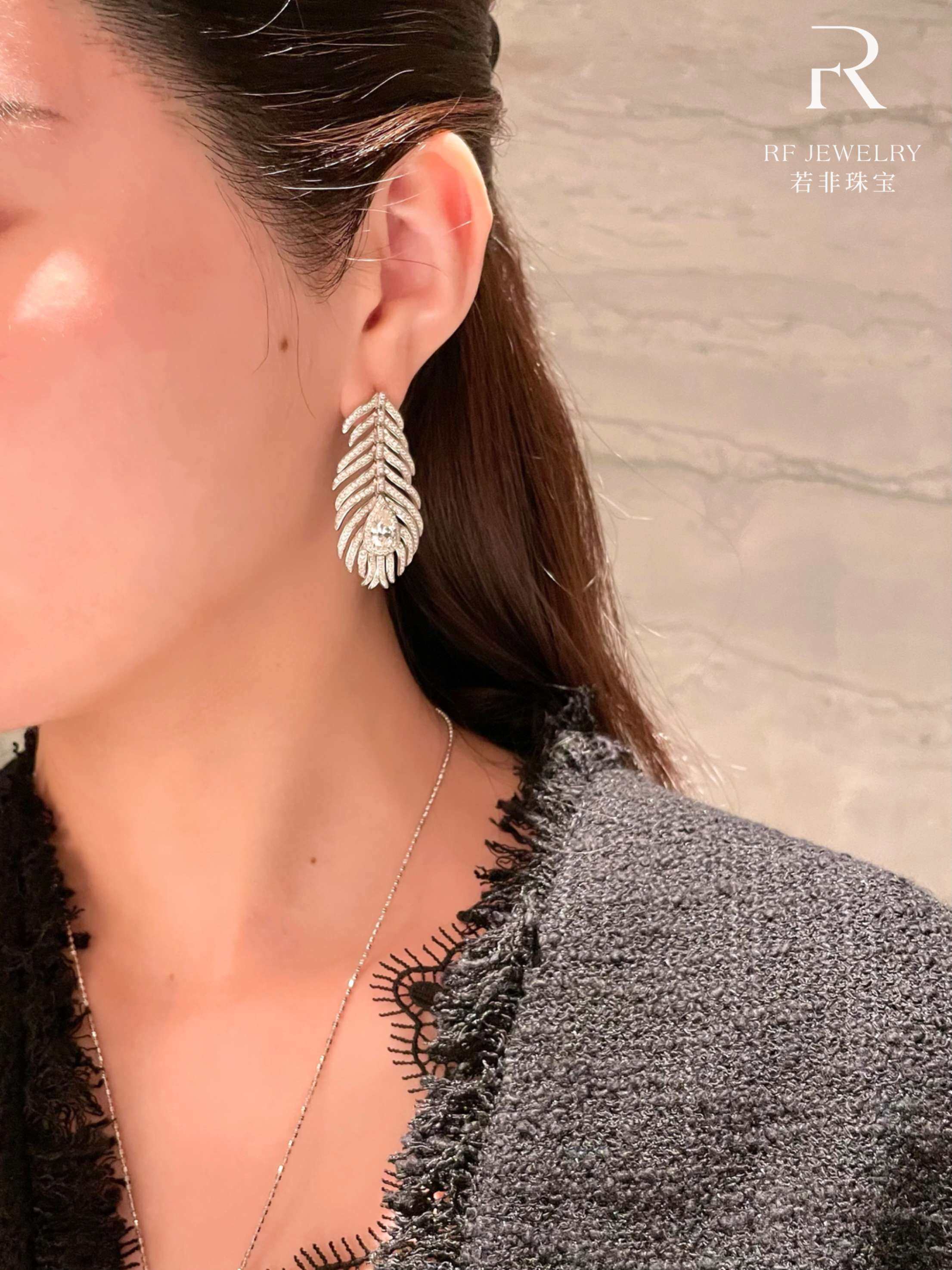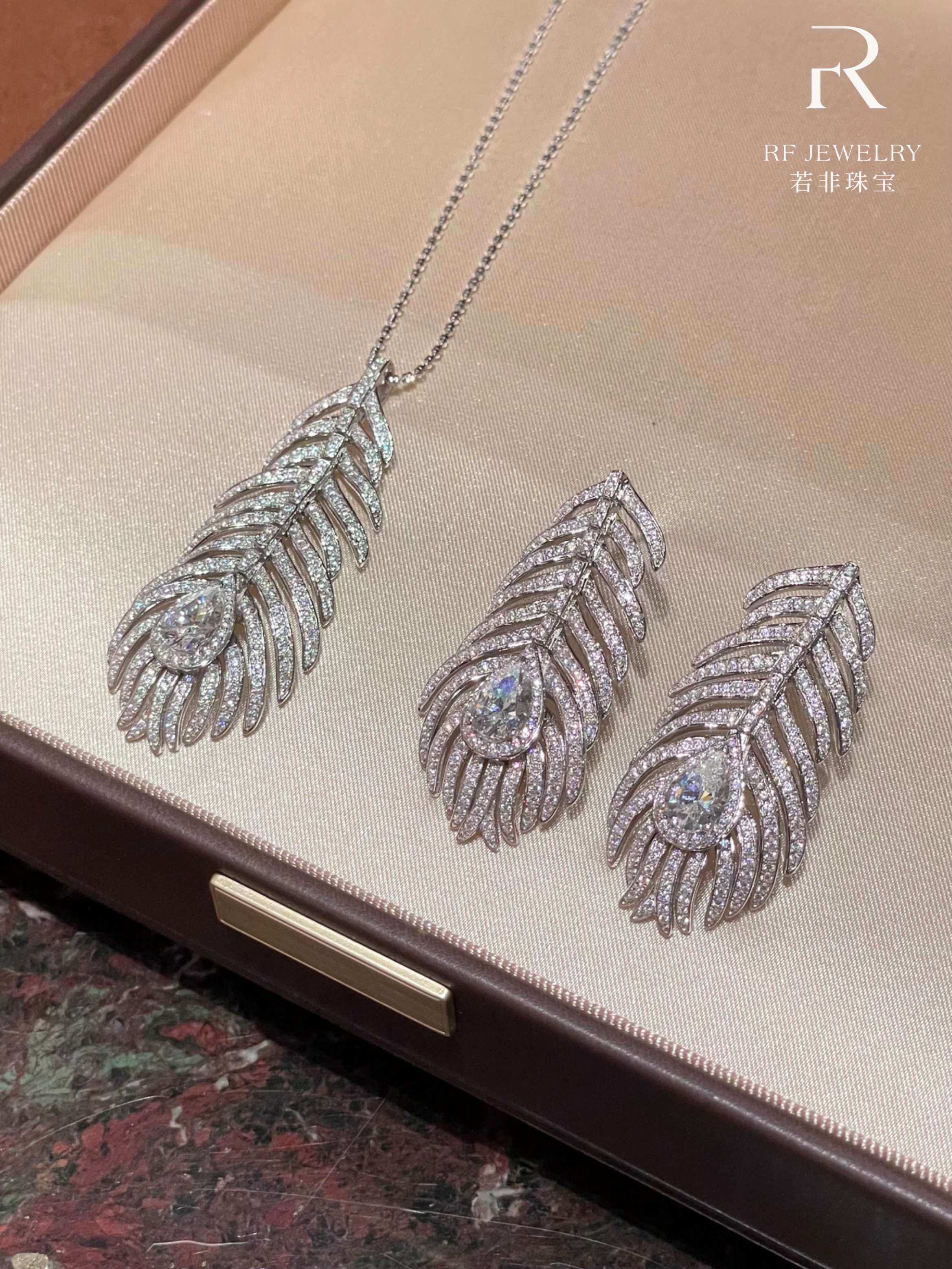 If It Were Not for Jewelry|High-End Full Diamond Feather Tassel Necklace and Earring Set|Silver Gold-Plated