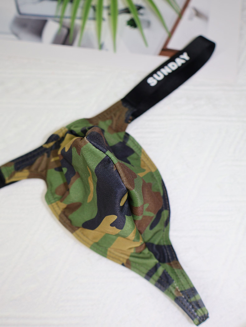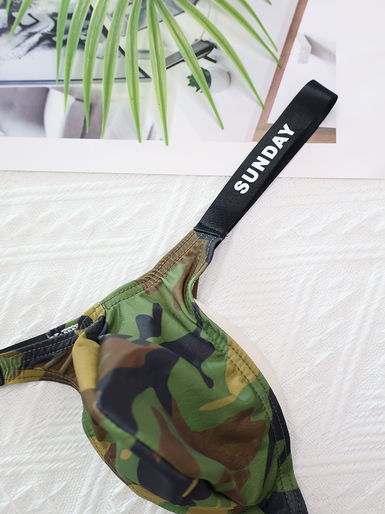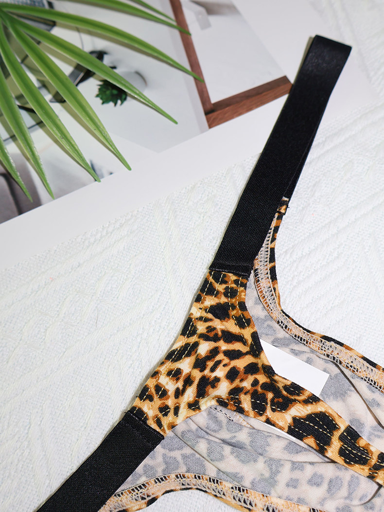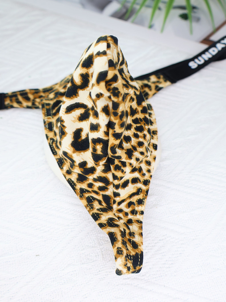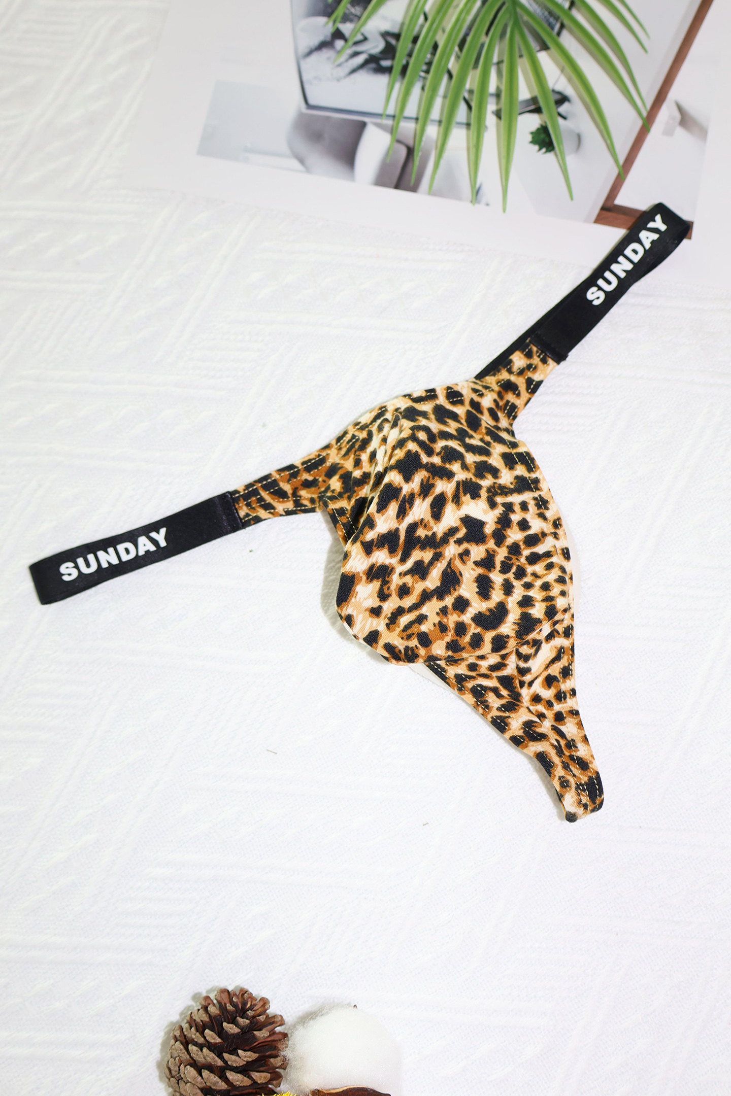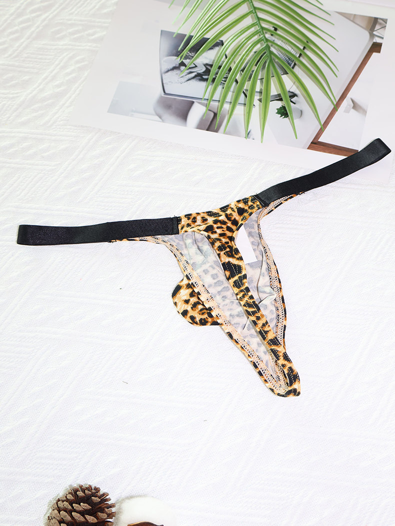 Leopard Print Men's Thong Low-Rise Sexy U-Convex Single Thong Underwear Men's Summer Personalized Exposed Buttocks Narrow Edge Printed T-String