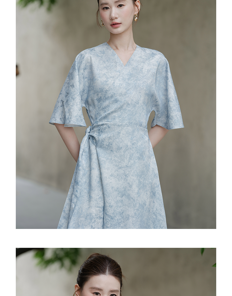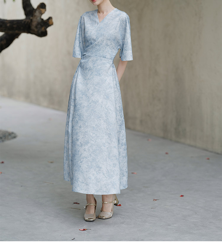 Chuqianyi New Chinese Style Cross-Collar Dress for Women 2025 Summer Jacquard National Style Elegant A-Line Waist-Cinching Flowing Long Dress
