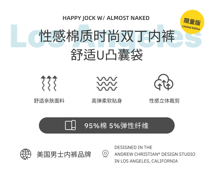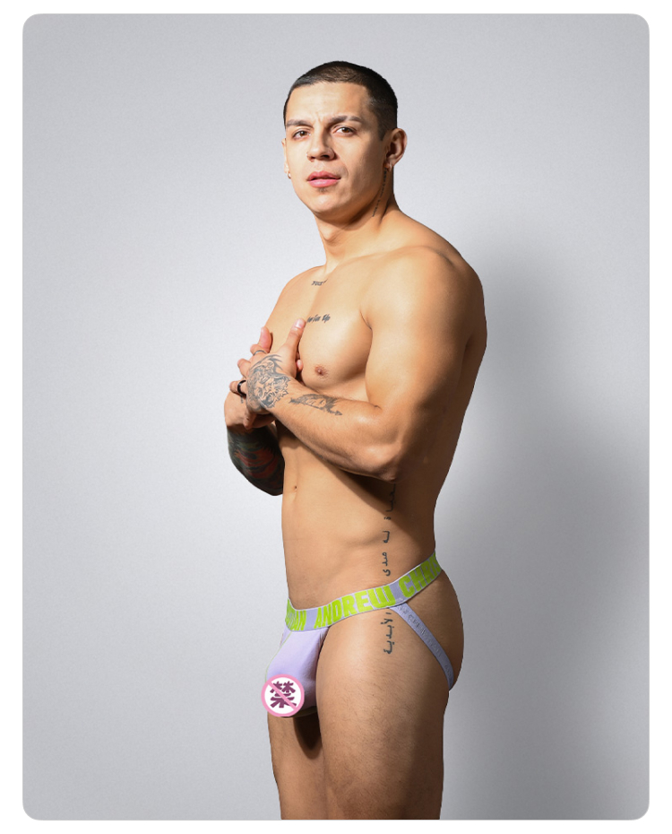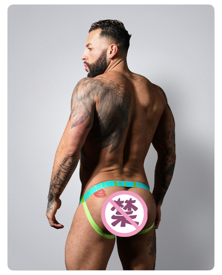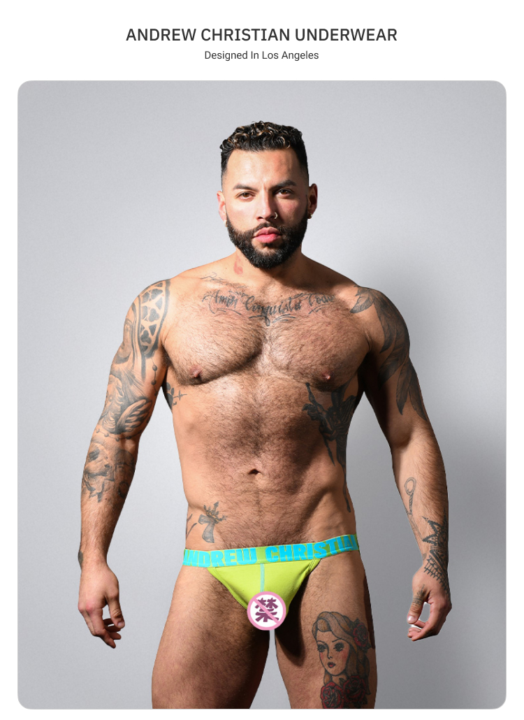 Andrew Christian Sexy Men's Double Thong Underwear Cotton U Convex Pouch Sports Fitness Revealing Buttocks 93595