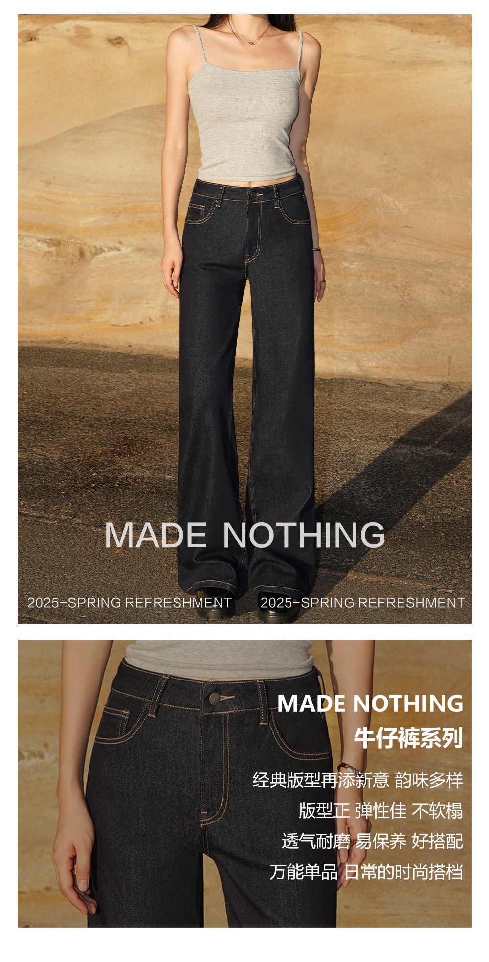 Made Nothing Lyocell Mr050 Denim Original Color Classic Mid-Low Waist Stretch Straight-Leg Jeans for Women