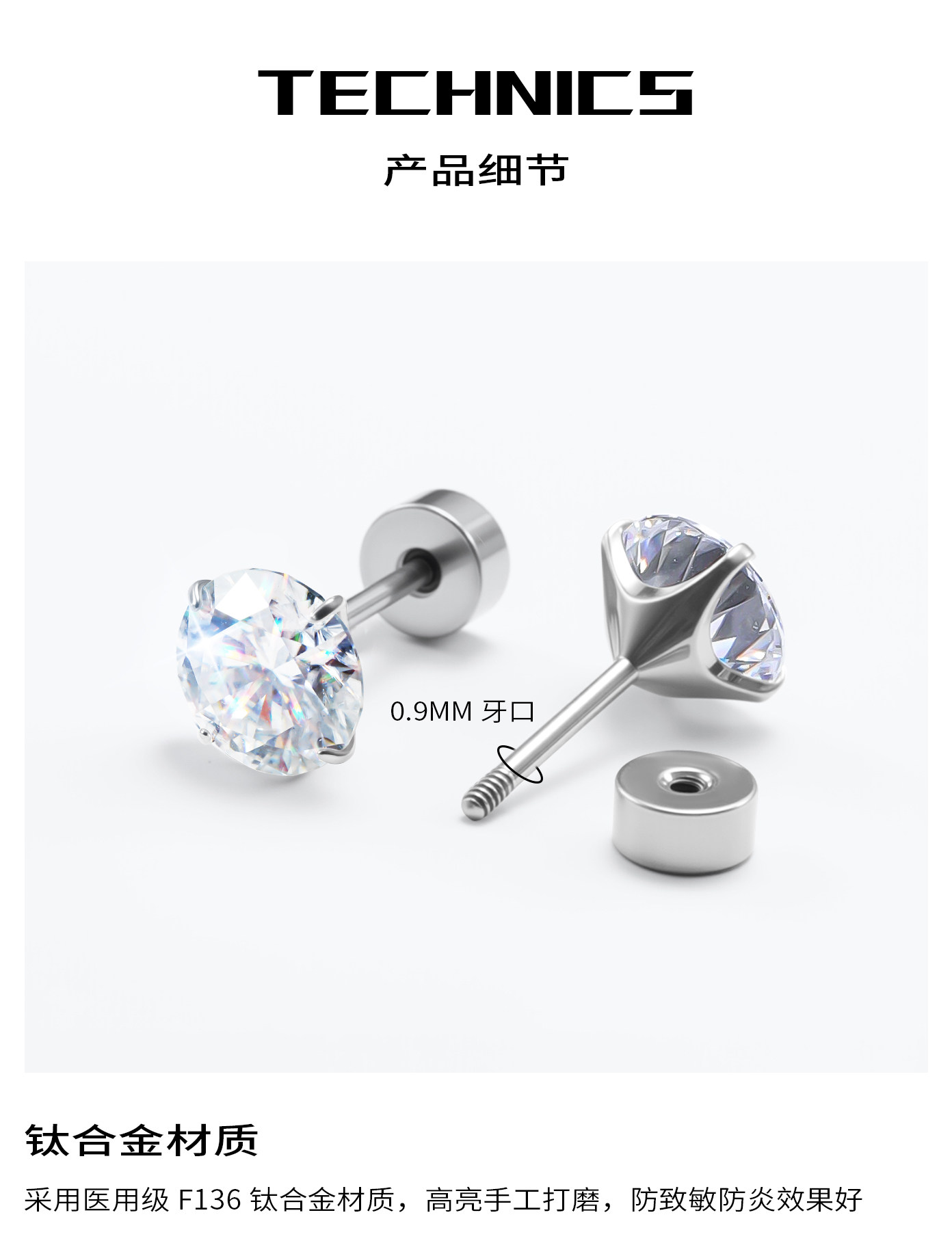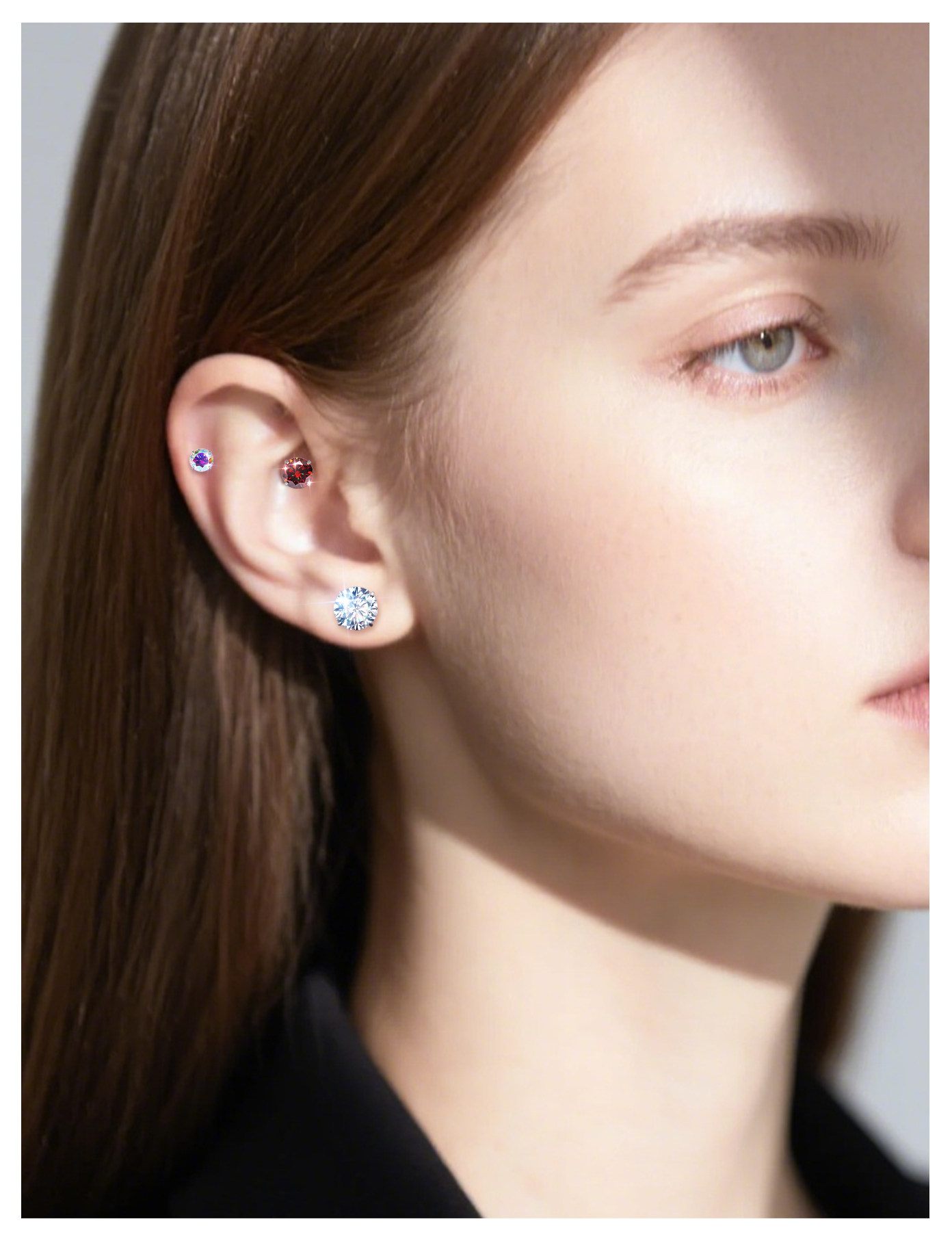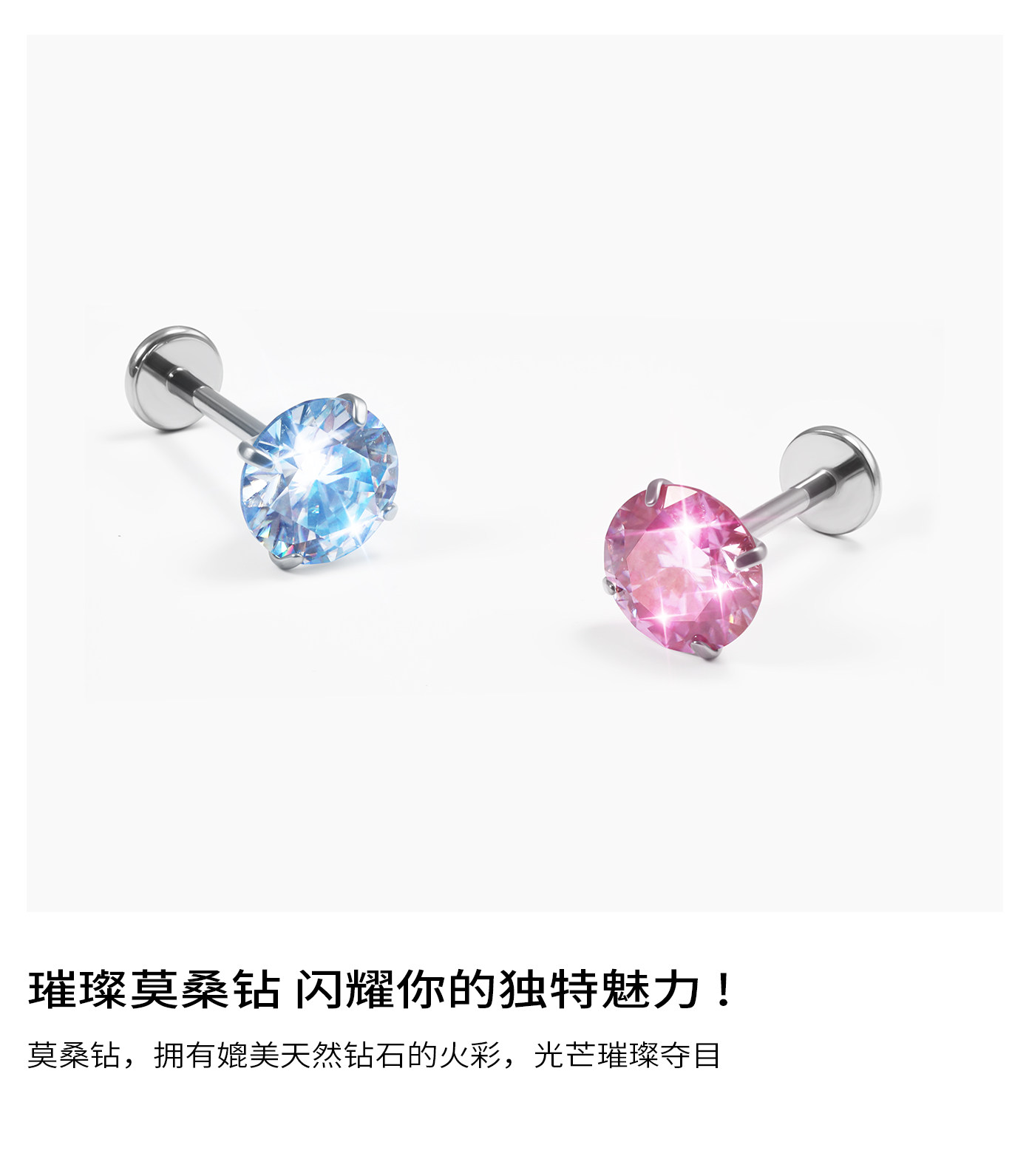 Moissanite Diamond Earrings, Titanium Alloy Ear Studs, Spiral Inner Design, High-Grade Cultured Diamond Ear Cartilage Studs, Dazzling Cochlear Studs