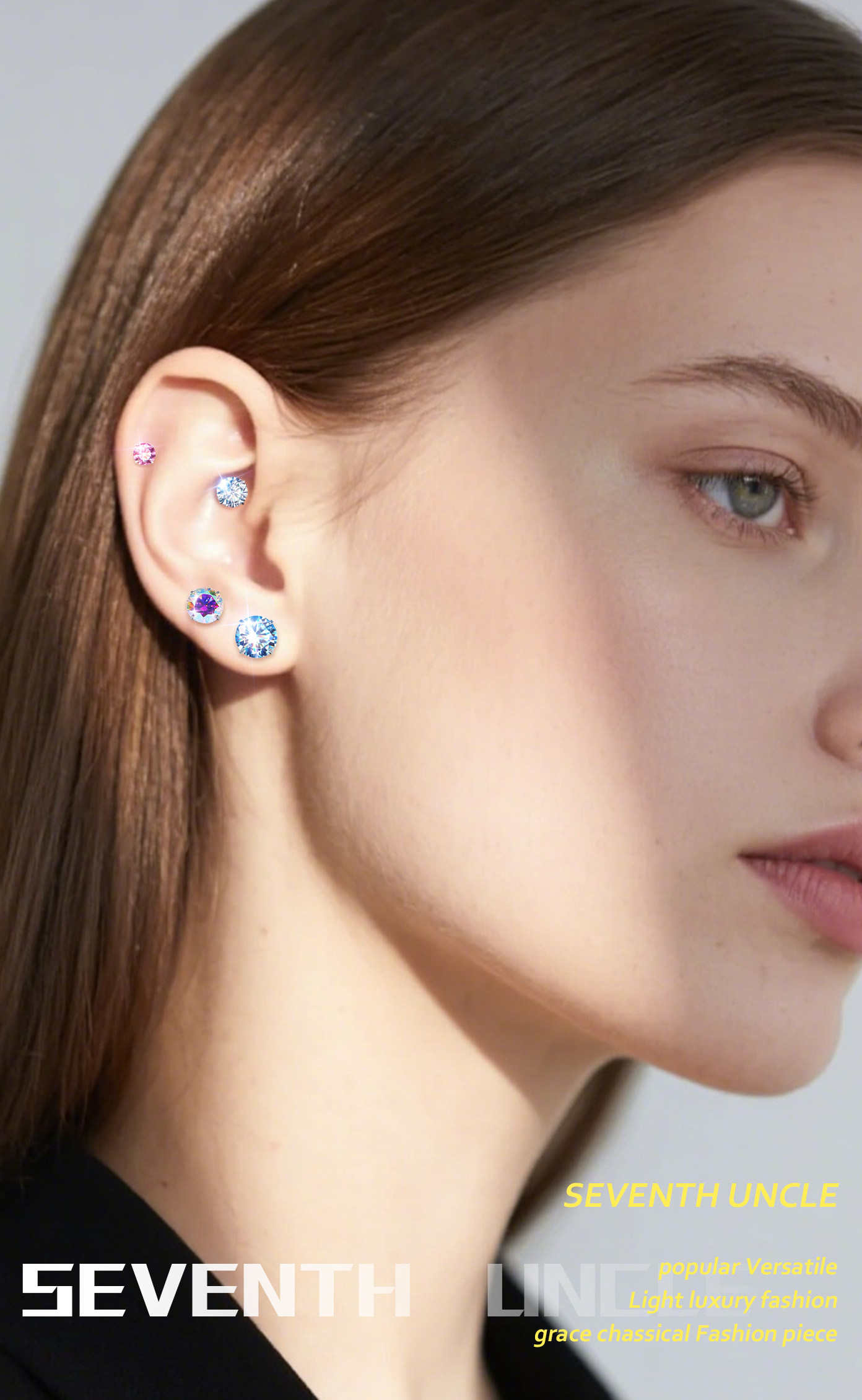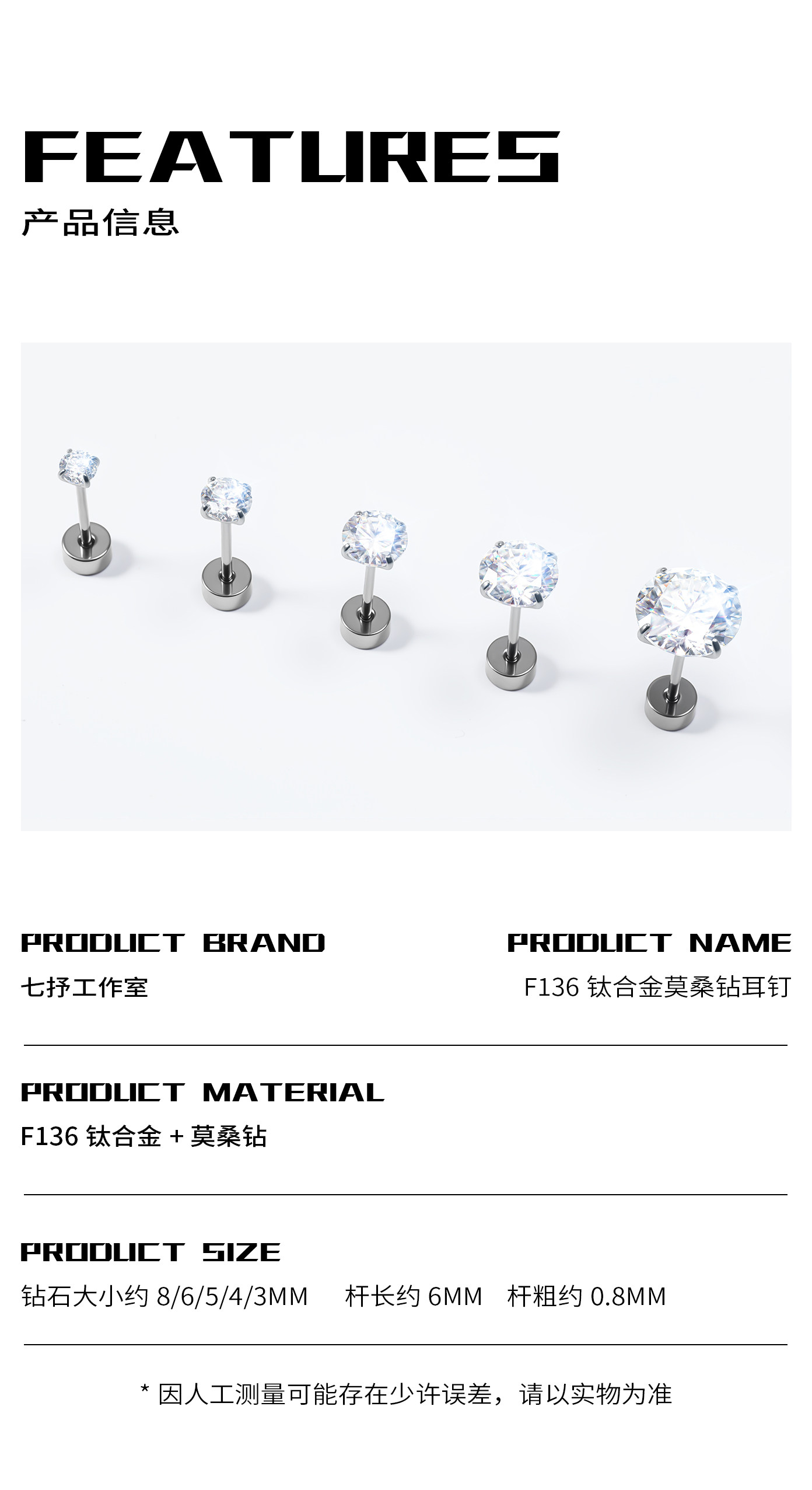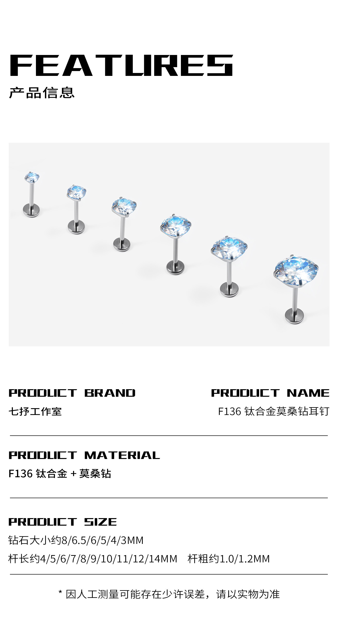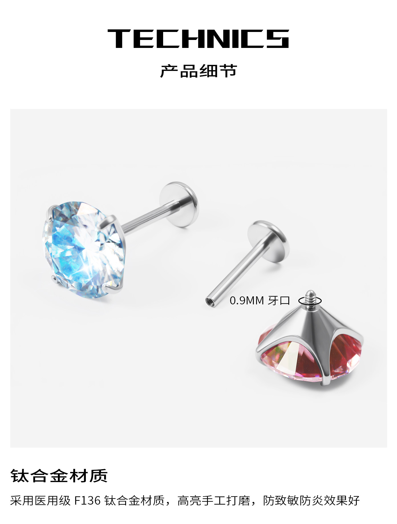 Moissanite Diamond Earrings, Titanium Alloy Ear Studs, Spiral Inner Design, High-Grade Cultured Diamond Ear Cartilage Studs, Dazzling Cochlear Studs