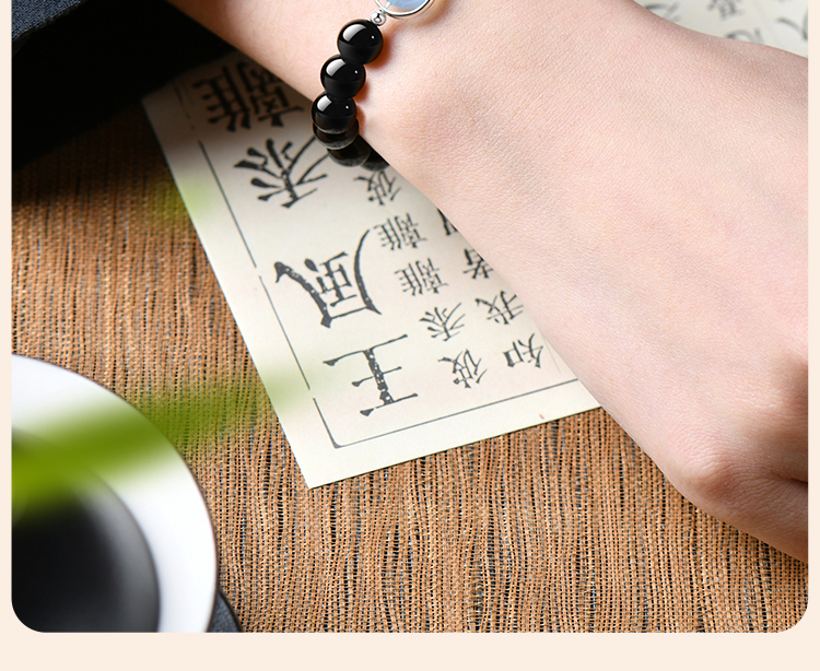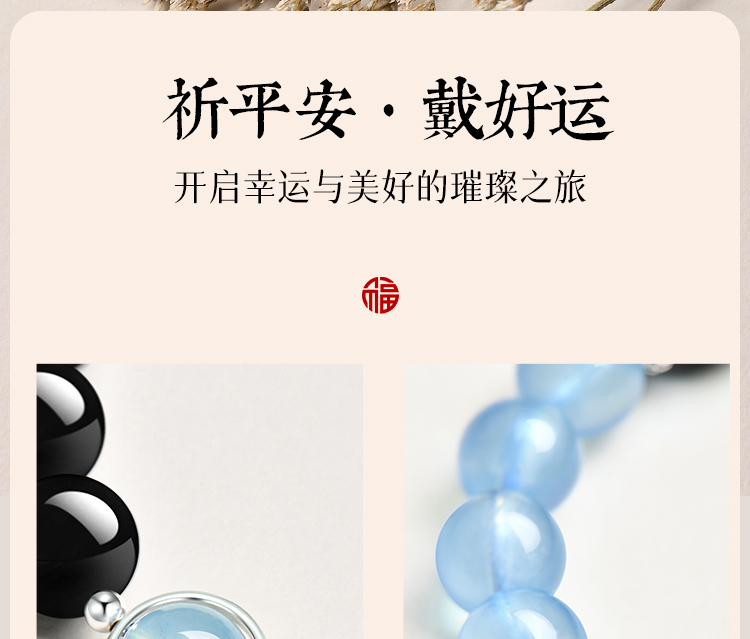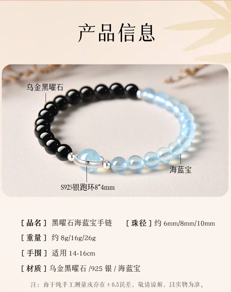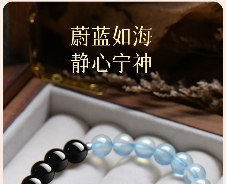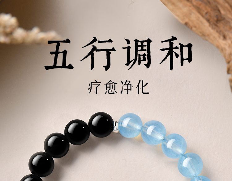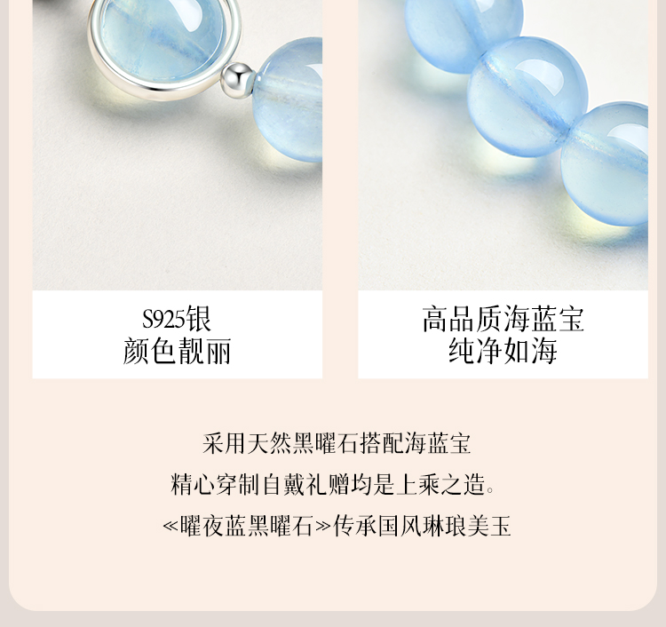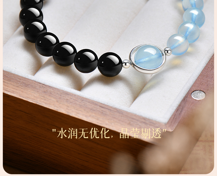 Putuo Mountain Natural Obsidian Aquamarine Crystal Bracelet for Women, Hydrating Double-Layer Raw Stone Bracelet, Wealth-Bringing Gift for Men
