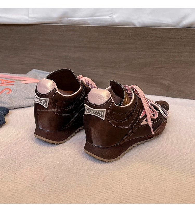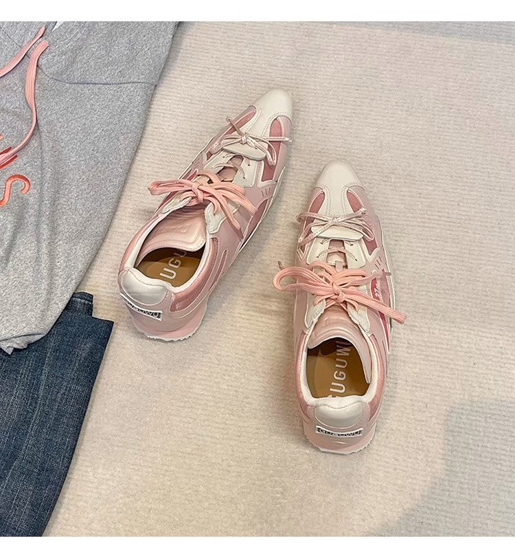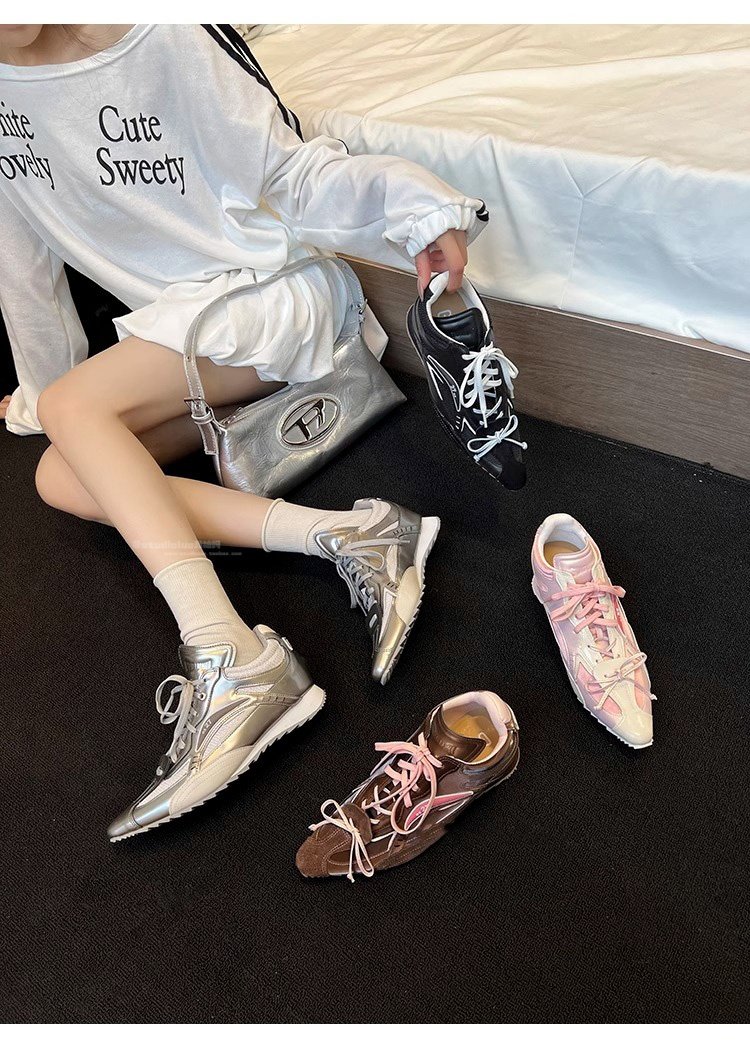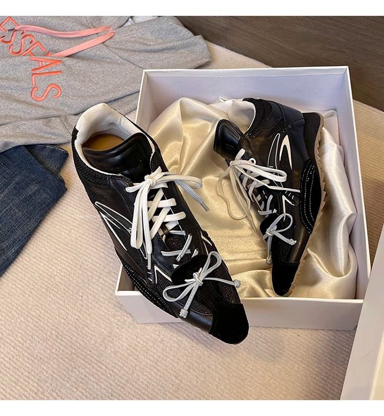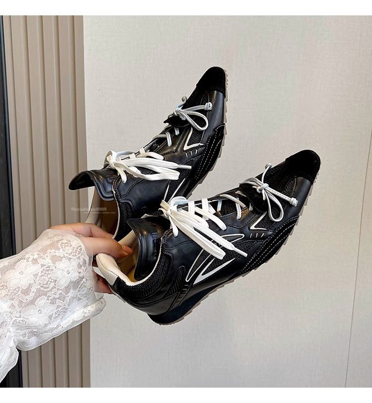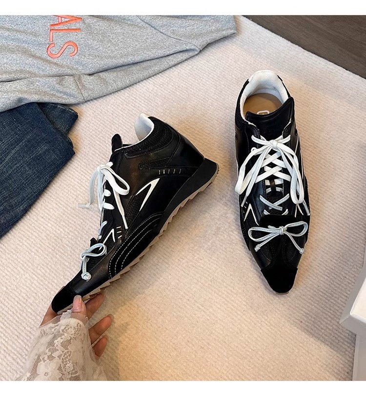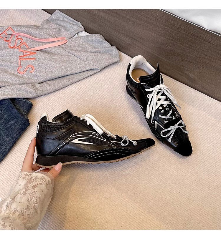 Hong Kong Pointed-Toe Thick-Soled Lace-Up Boxing Shoes for Women 2025 Spring/Summer New Sports Casual Shoes Versatile Height-Increasing Training Shoes