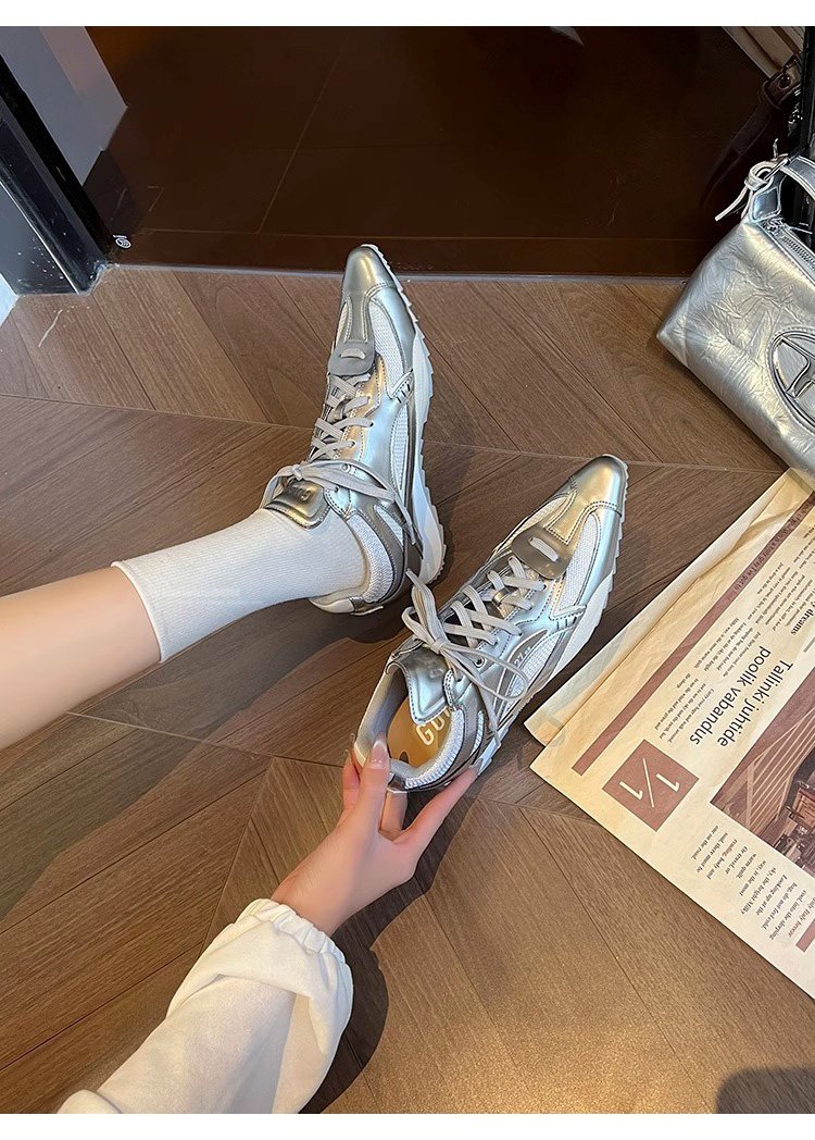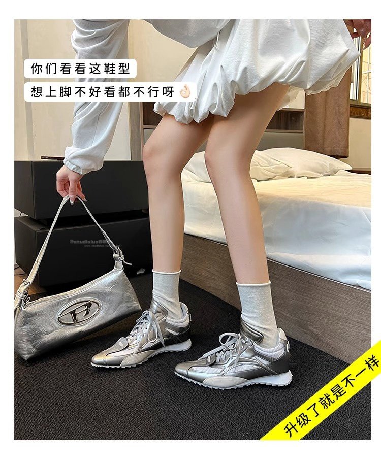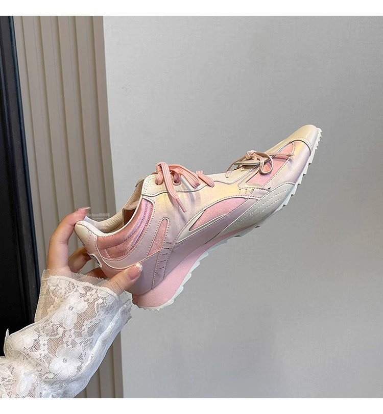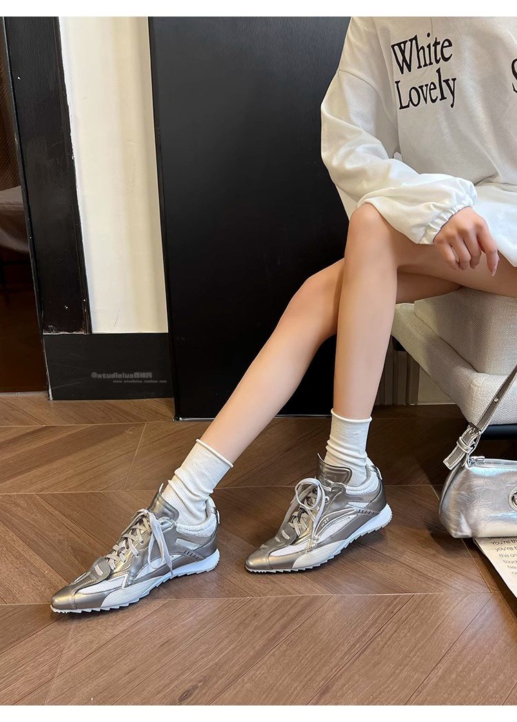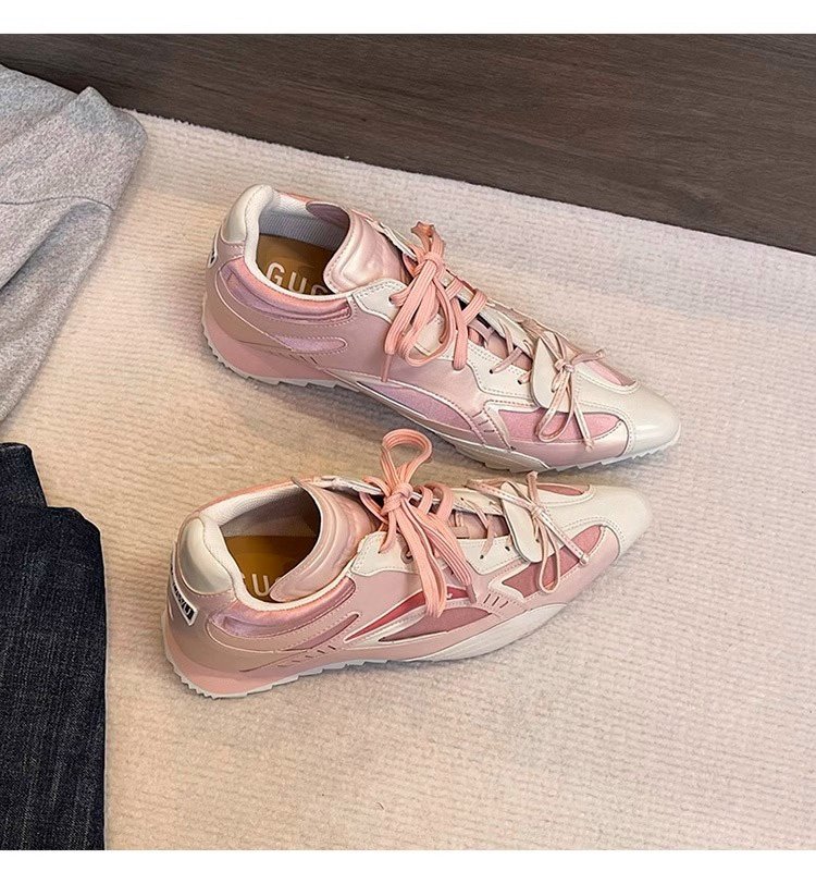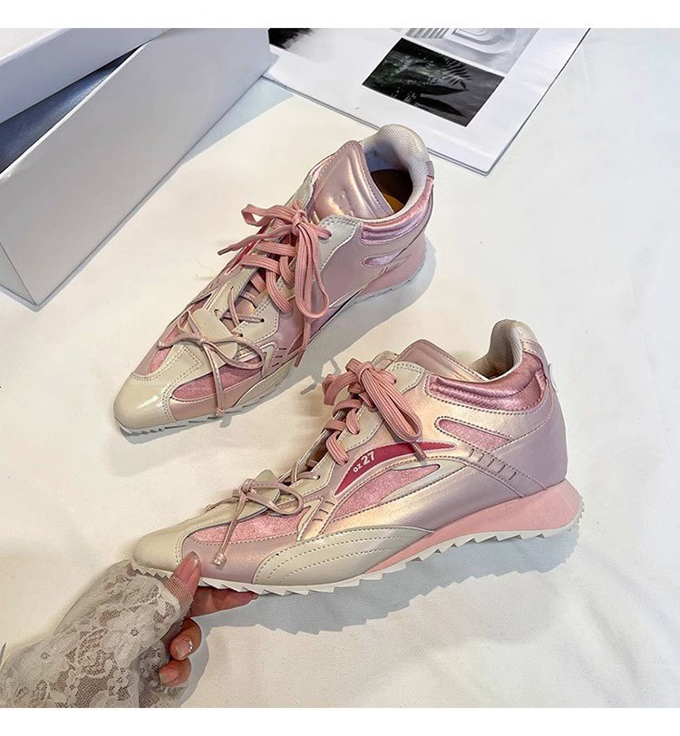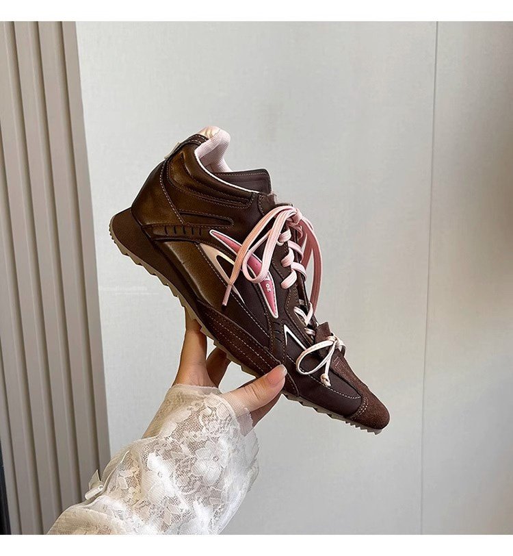 Hong Kong Pointed-Toe Thick-Soled Lace-Up Boxing Shoes for Women 2025 Spring/Summer New Sports Casual Shoes Versatile Height-Increasing Training Shoes