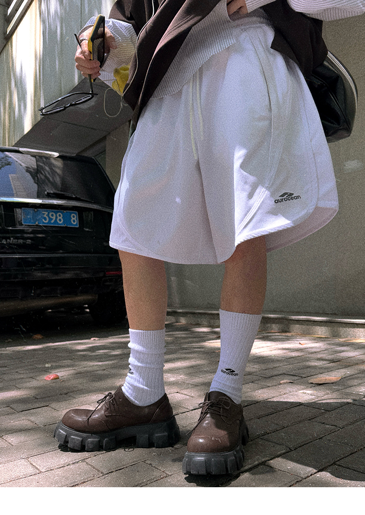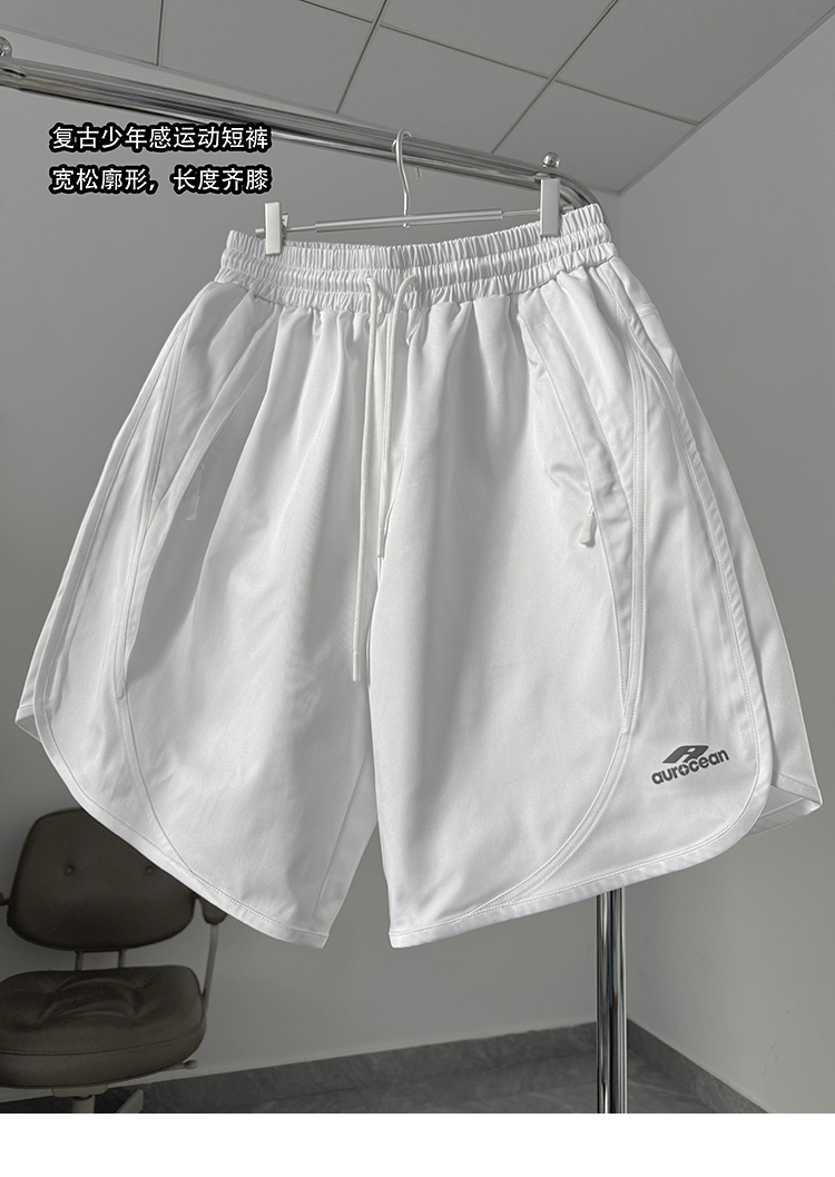 Aurocean Retro Youth Sports Shorts, Three-Dimensional Silhouette Cut, Cool and Quick-Drying White Five-Point Shorts