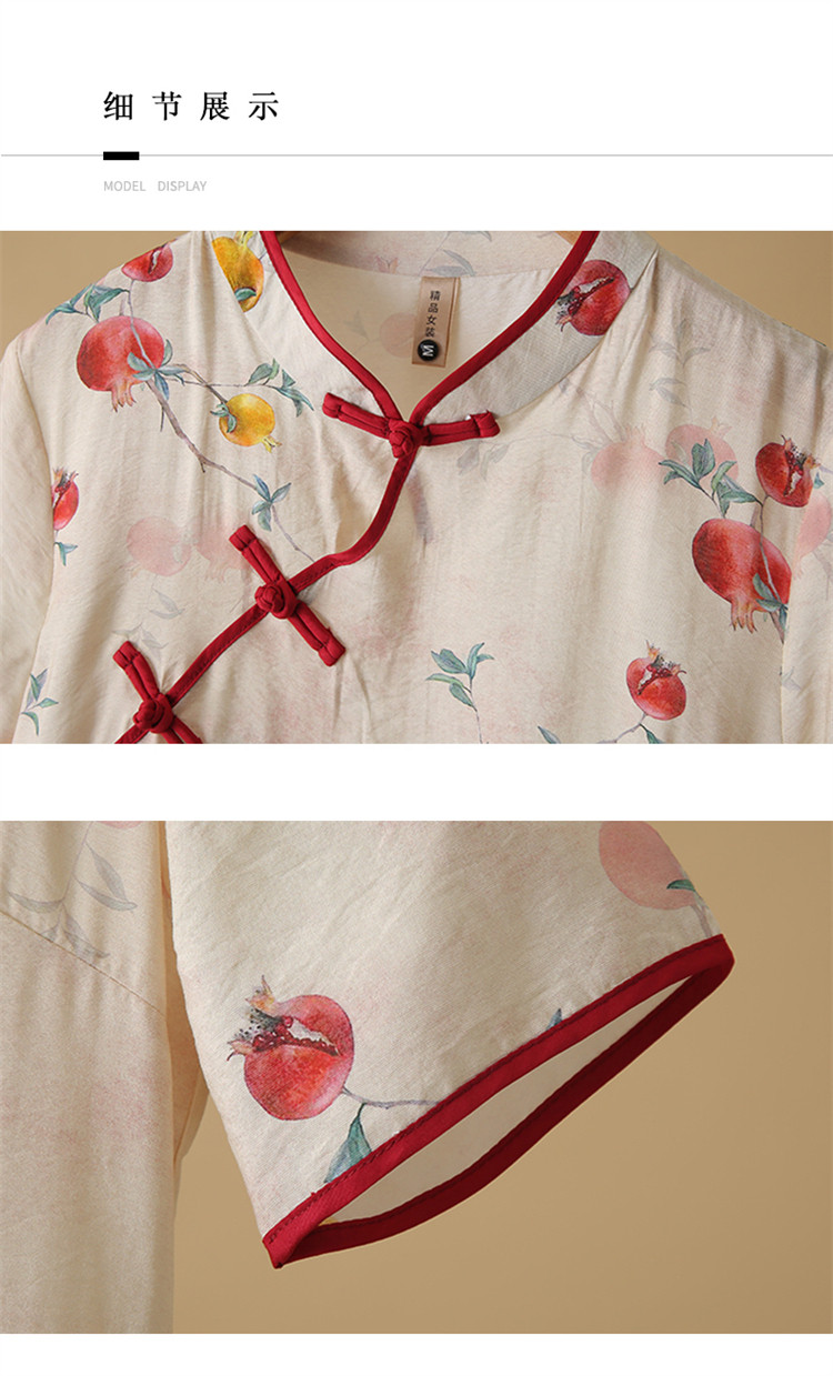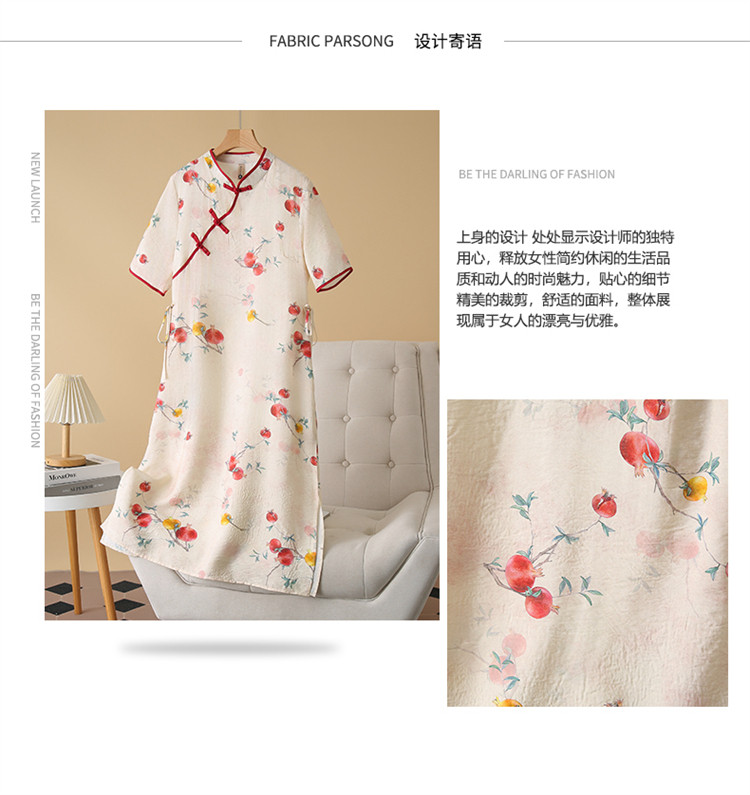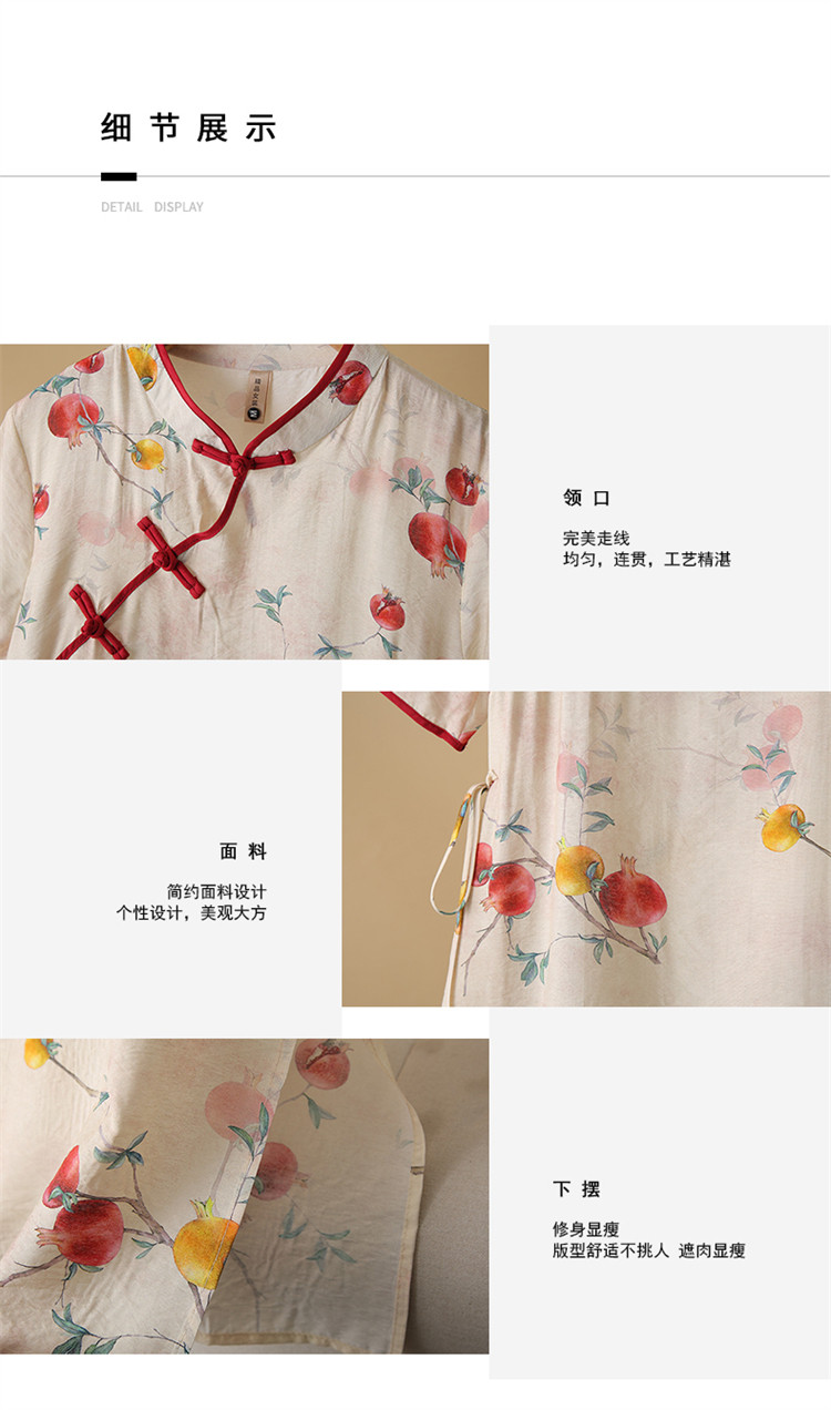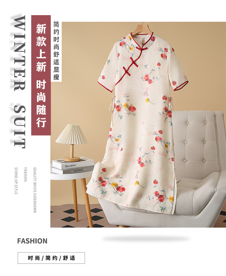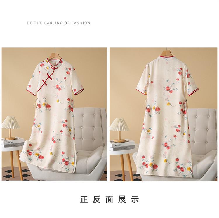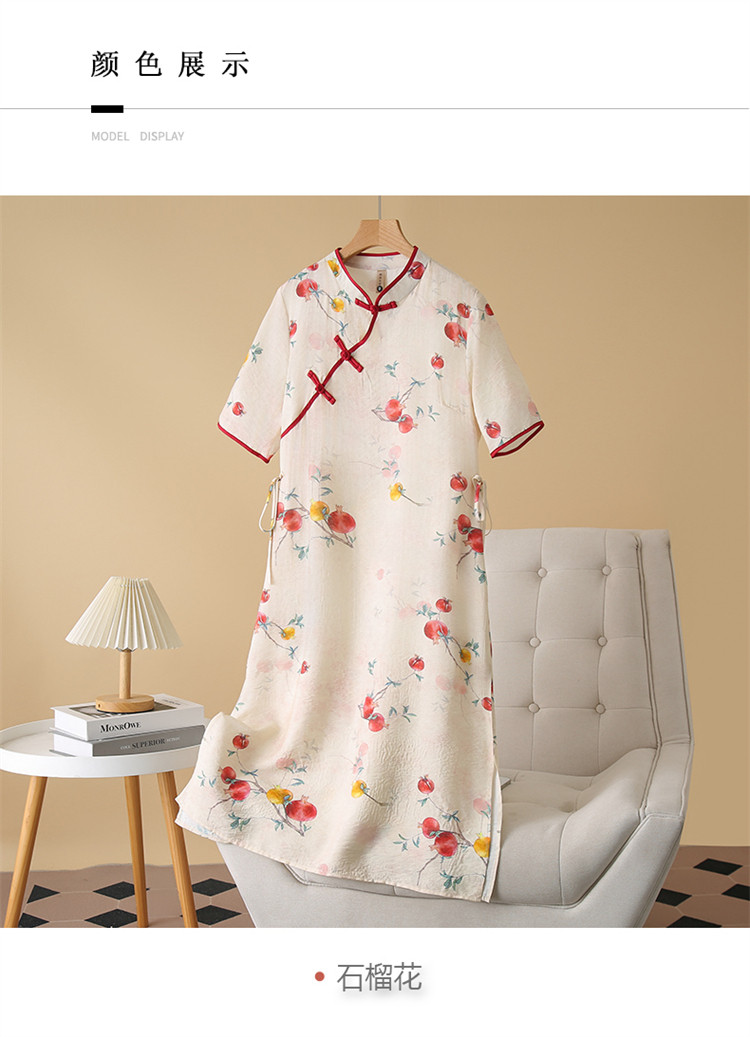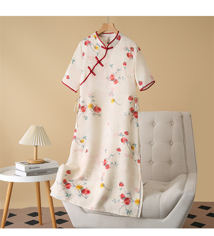 2025 Summer New Style New Chinese Style Retro Button Embroidery Short Sleeve Dress Thin Stand Collar Cheongsam Dress