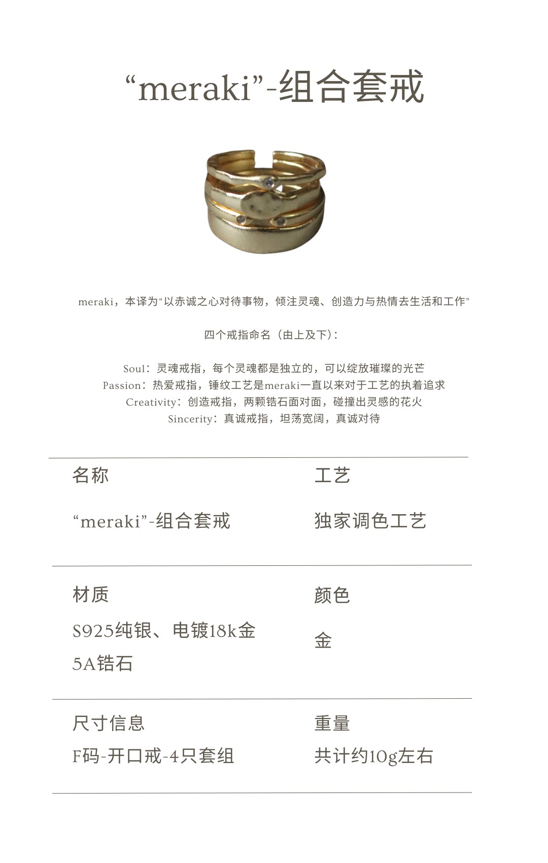 Via Meraki“ Meraki” Combination Ring Soul/Love/Creation/ Sincere Silver Plated 18K Gold