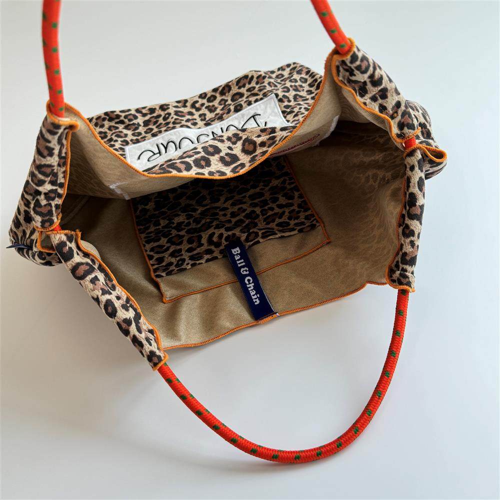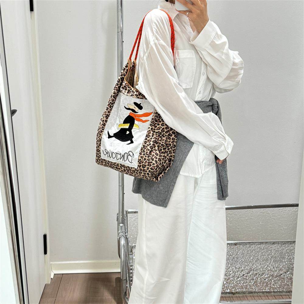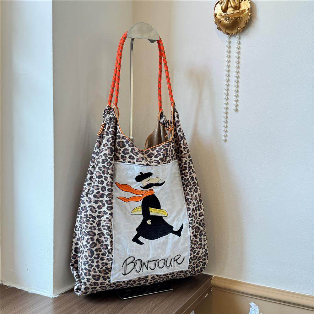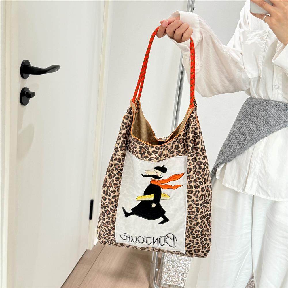 Japanese-Style Ball Chain Embroidered Leopard Print Eco-Friendly Jewish Shopping Bag Crossbody Canvas Bag Women's Shoulder Commuter Bag