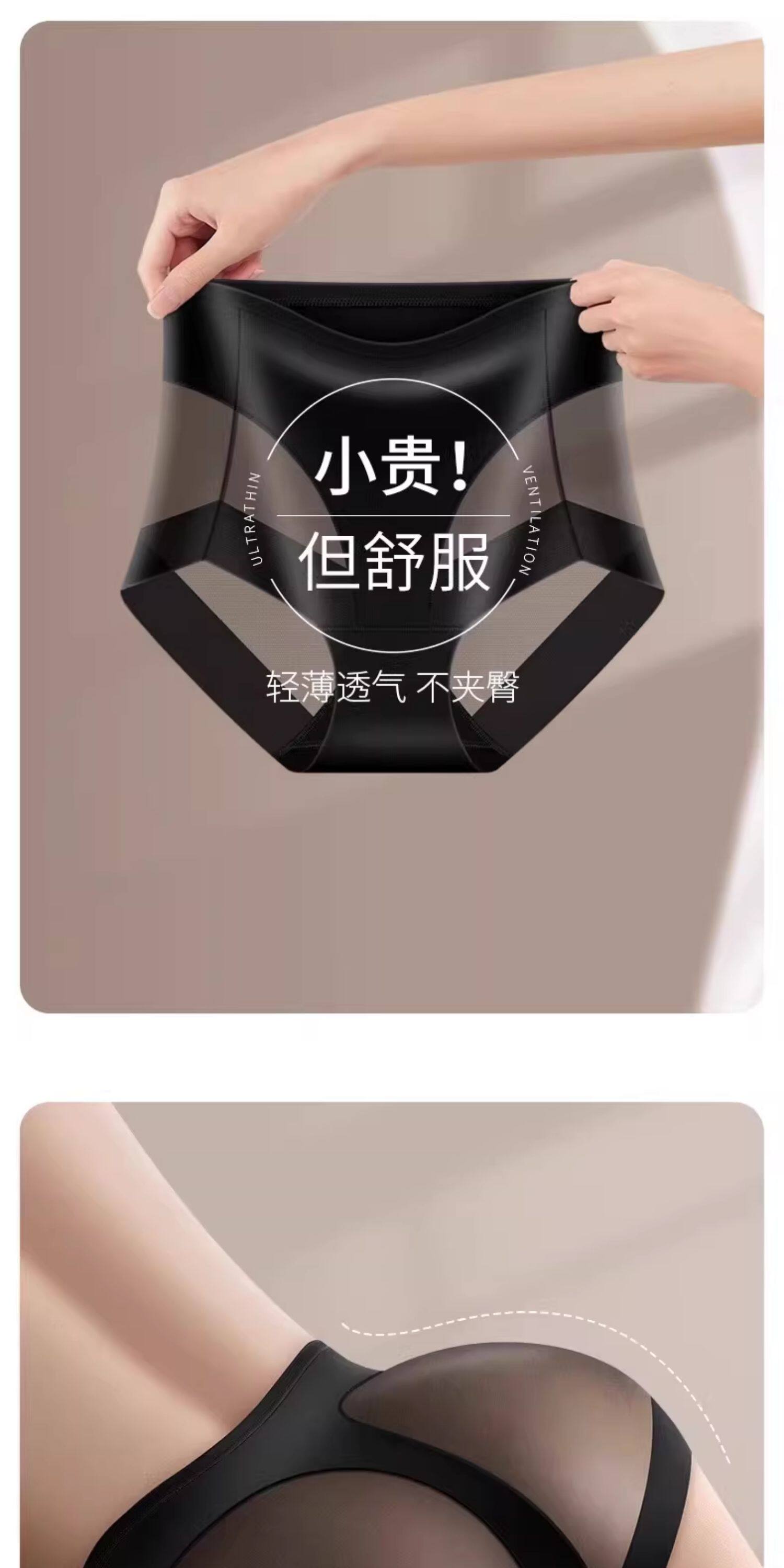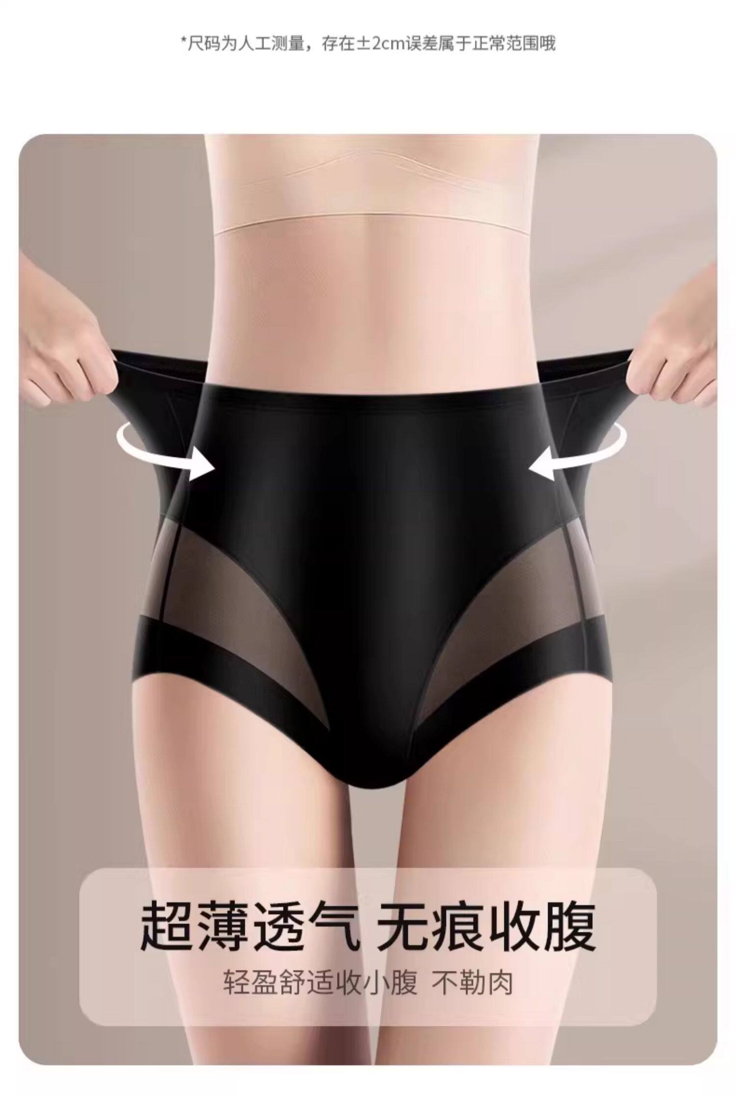 Japanese Women's High-Waisted Tummy Control Butt-Lifting Antibacterial Crotch Large Size Big Butt Sexy Ice Silk Seamless Safety Briefs