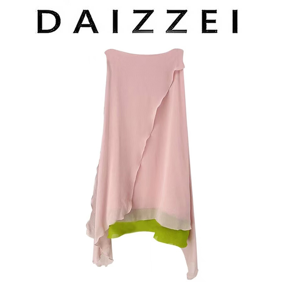 DAIZZEI ~ elegant thin high waist A chiffon skirt Elegant women's Asymmetrical Contrast Color high waist dress tide