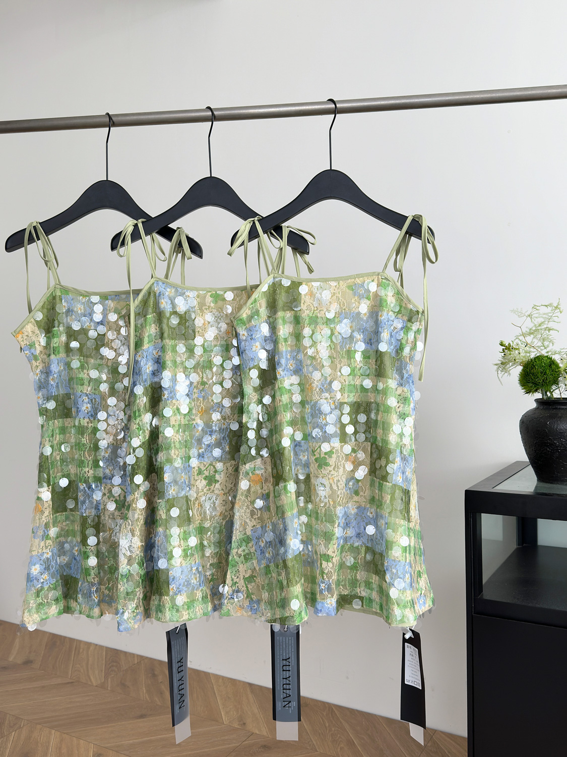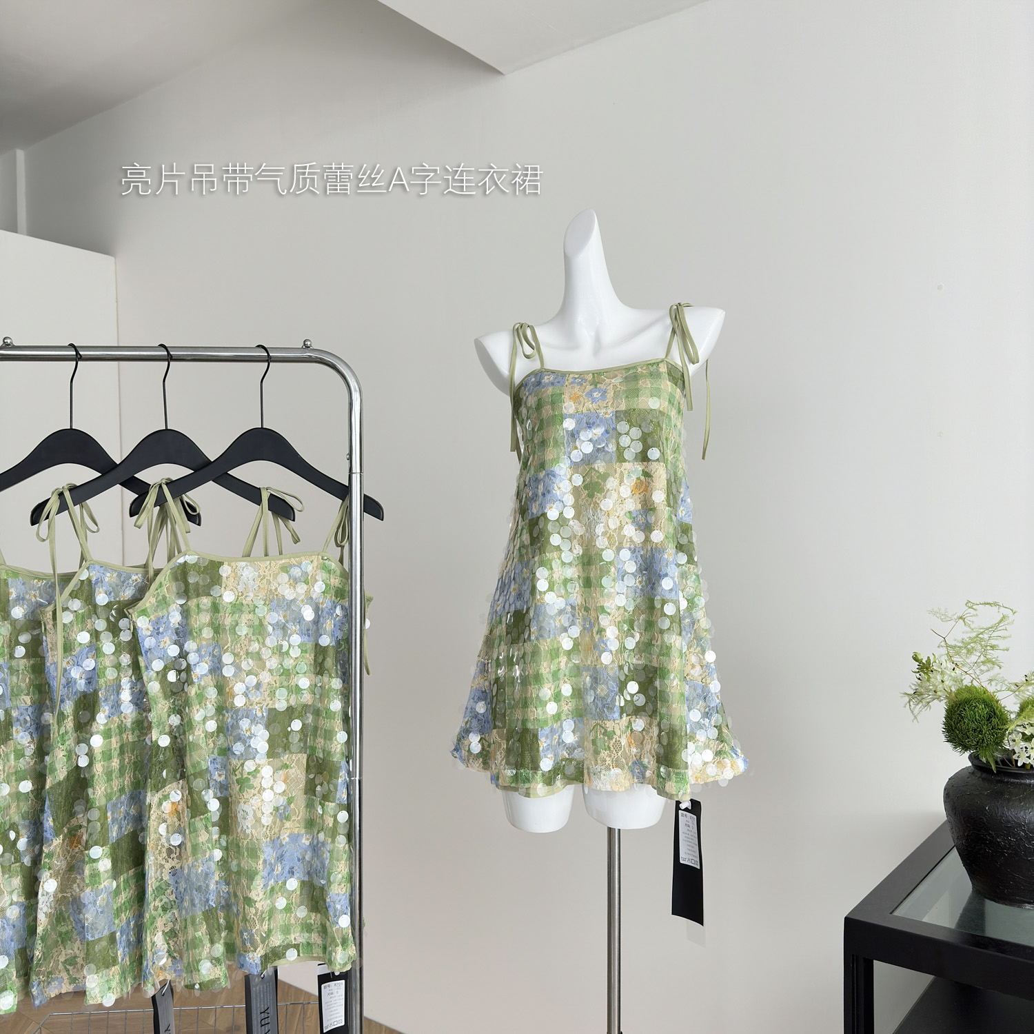 Peach LAOSHU Midsummer Night's Dream Original Heavy Sequin Strap Elegant Lace Vacation A-Line Dress