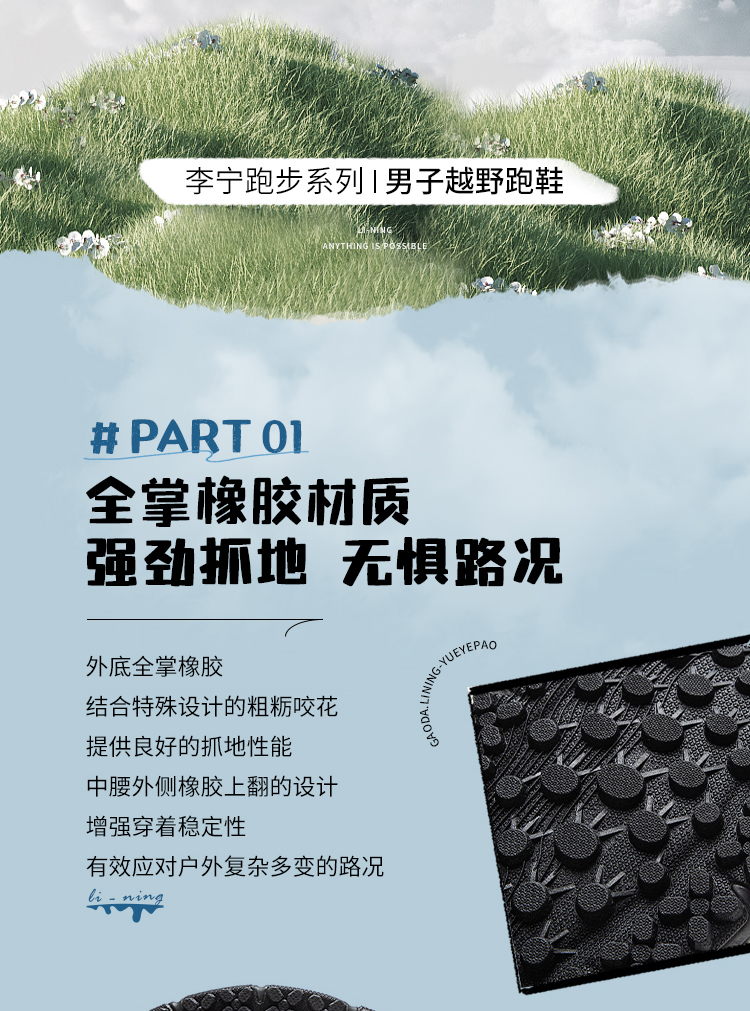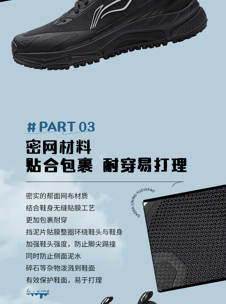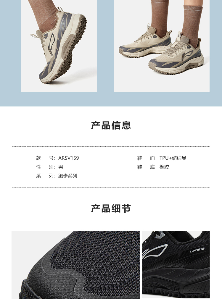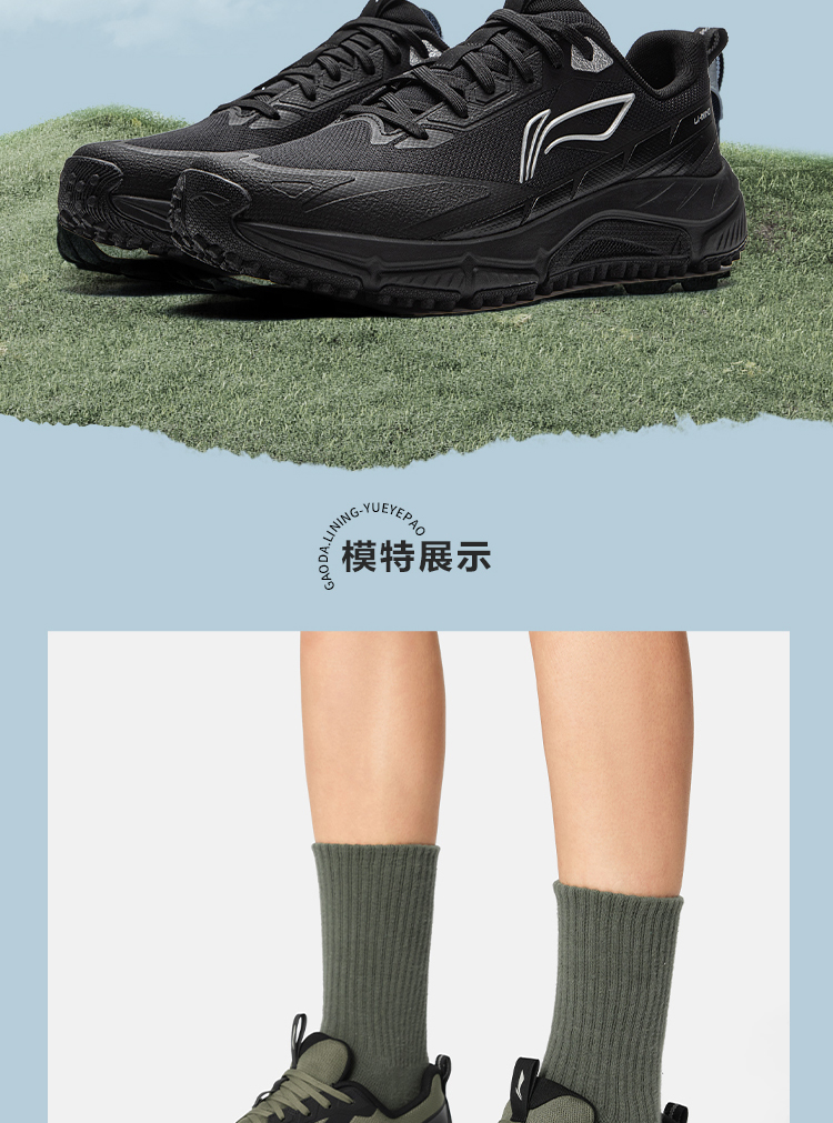 Li-Ning Zufeng丨 Trail Running Shoes Men's Autumn New Outdoor Hiking and Mountaineering Shoes Shock-Absorbing Black Sports Shoes