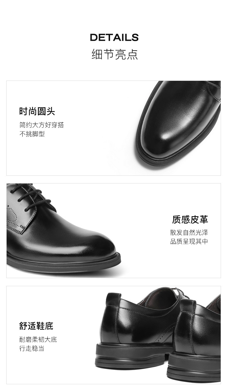 Belle Men's Casual Business Formal Leather Shoes Spring New Style Cowhide Soft Sole Commuting Groom Wedding Shoes A2066Cm5