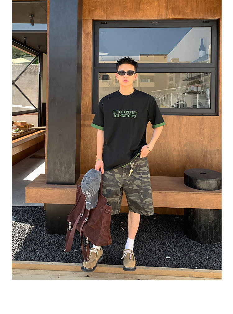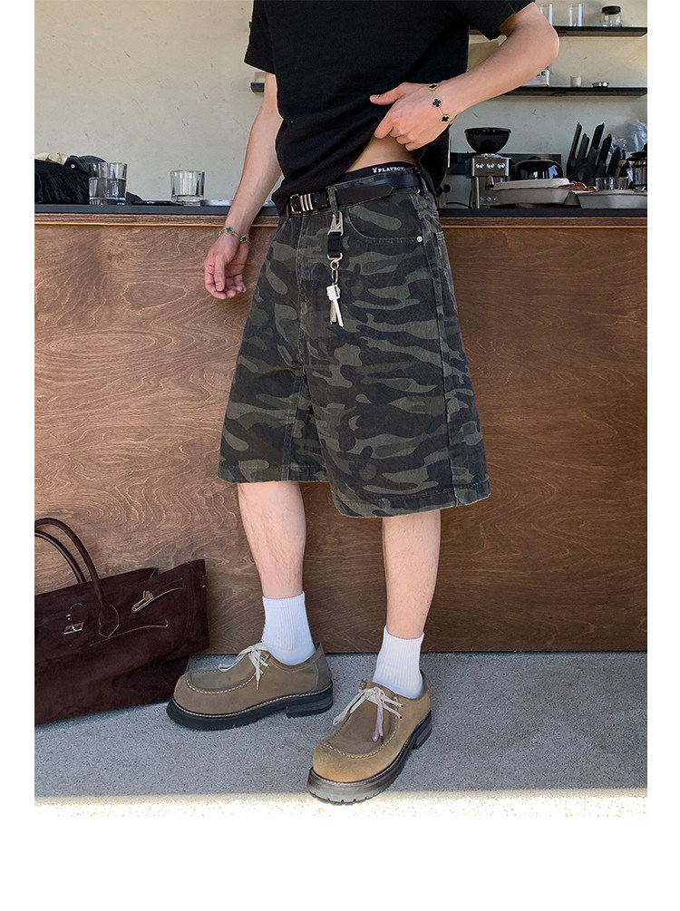 Plth* American Retro Camouflage Mid-Waist Shorts for Men, Summer Casual Versatile Trendy Brand Loose Cargo Pants