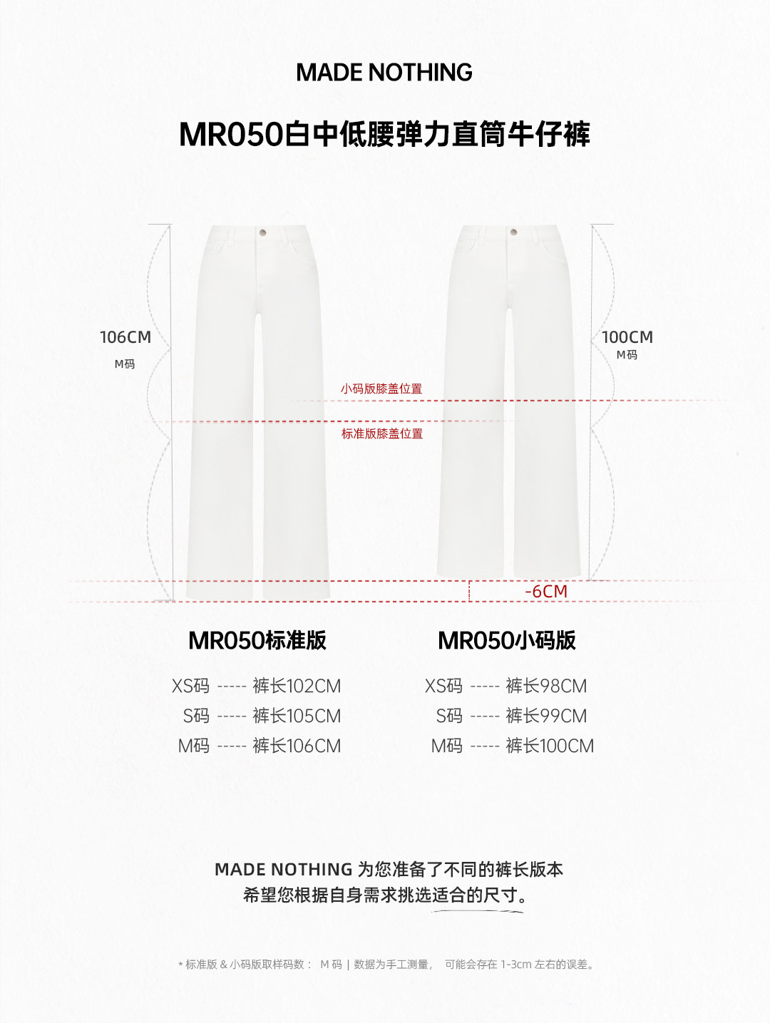 Made Nothing Mr050 Mid-Low Waist Classic White Straight Stretch Slim Straight-Leg Jeans for Women
