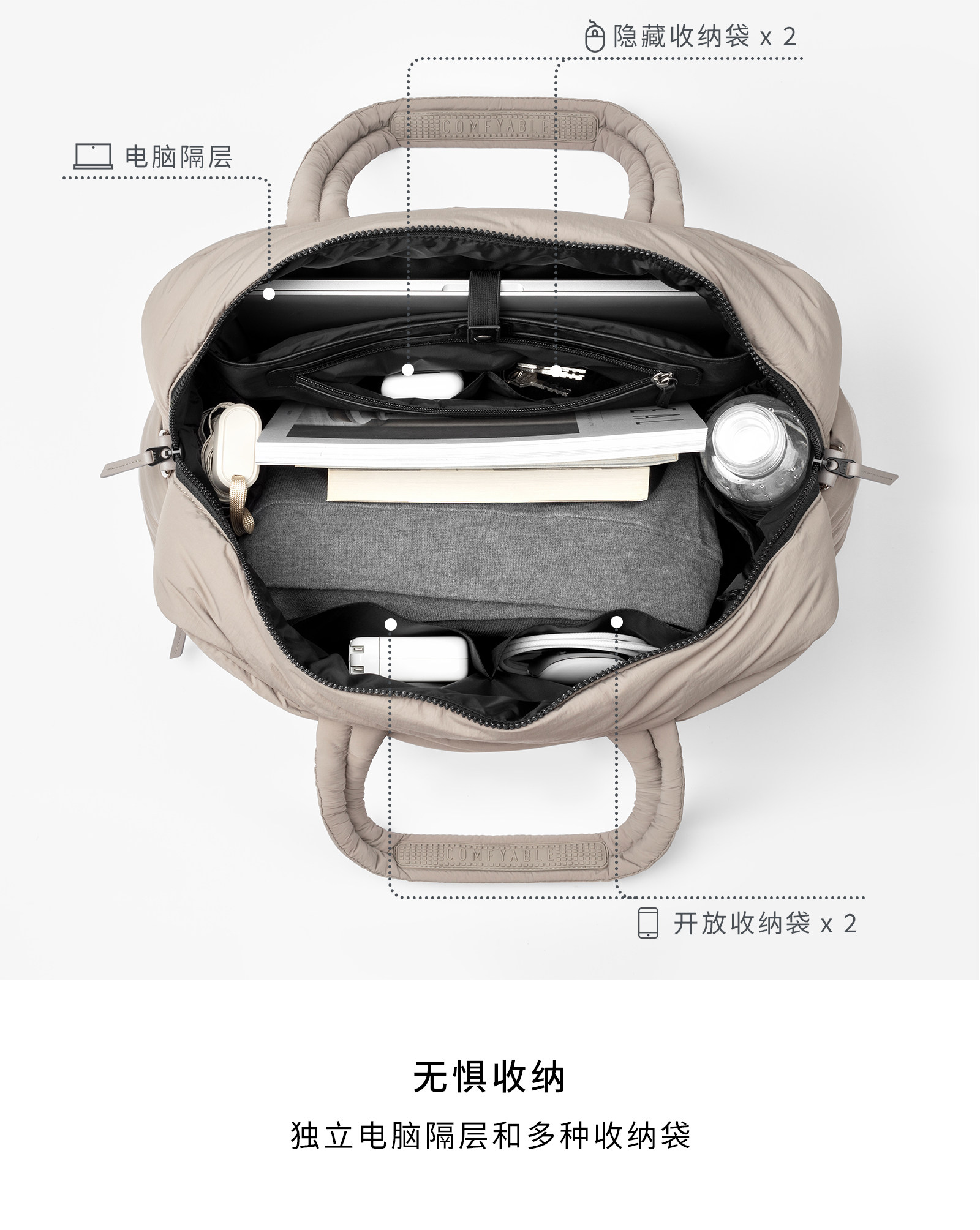 Comfyable Travel Tote Bag Large Capacity Hand Luggage Bag Fitness Sports Bag Business Trip Unisex Brown Gray