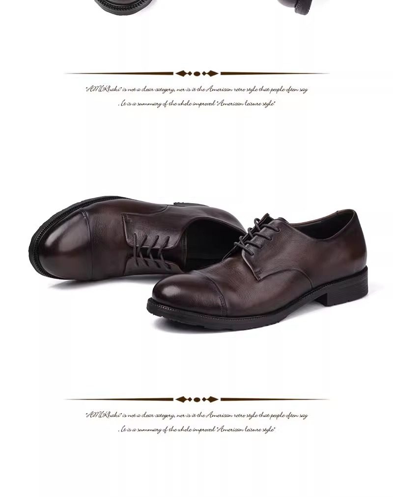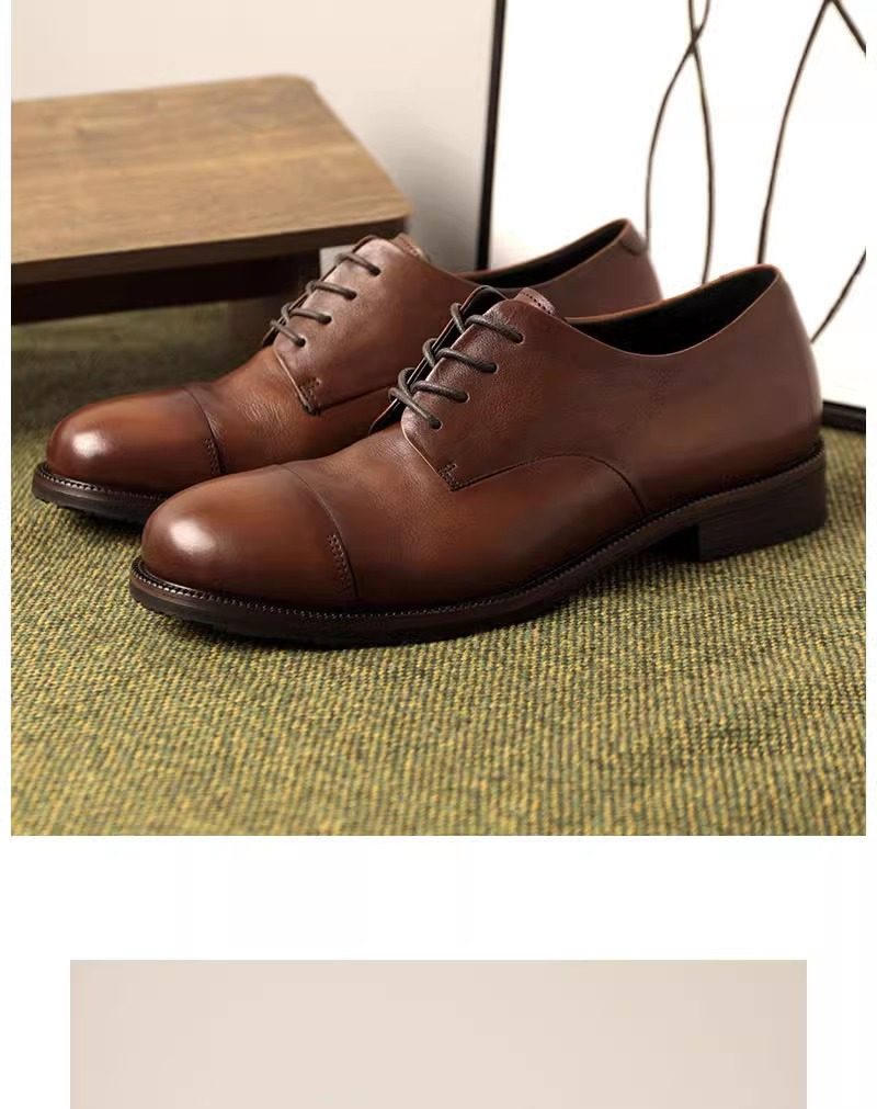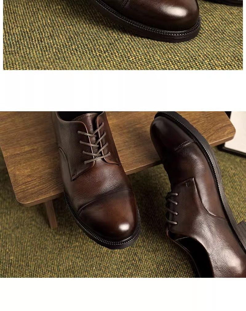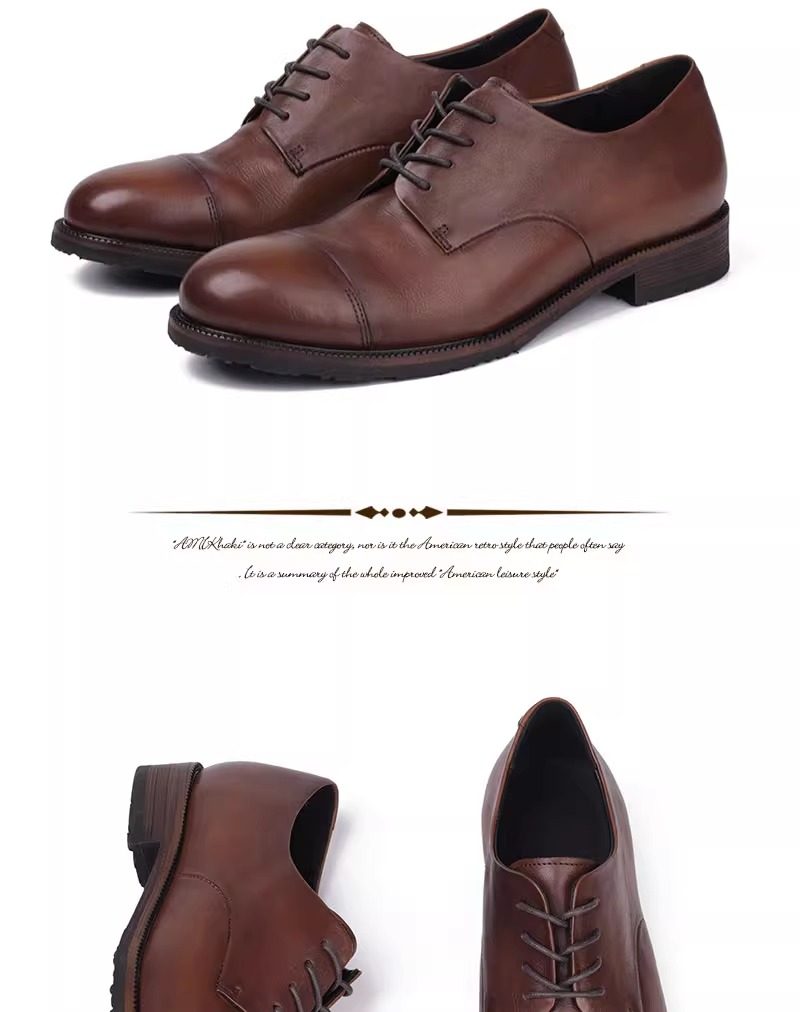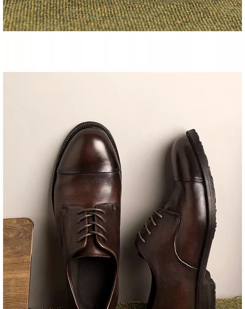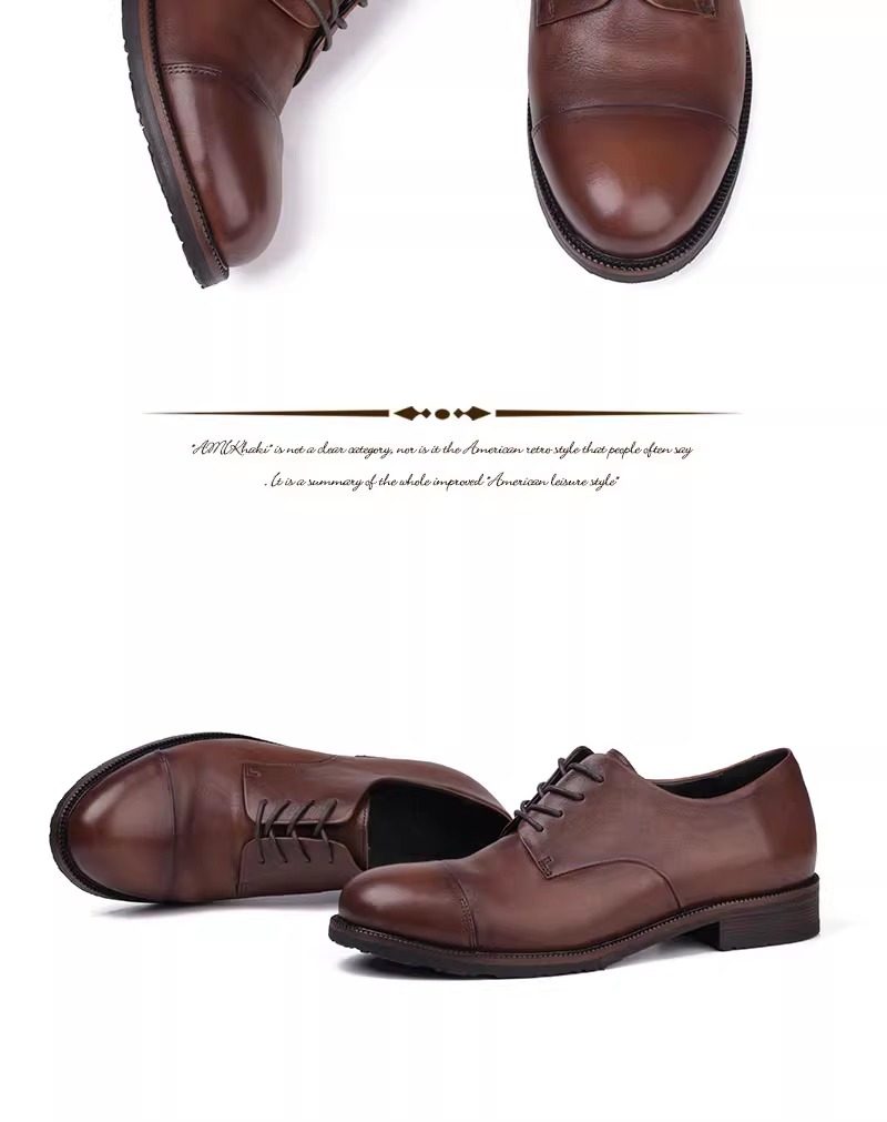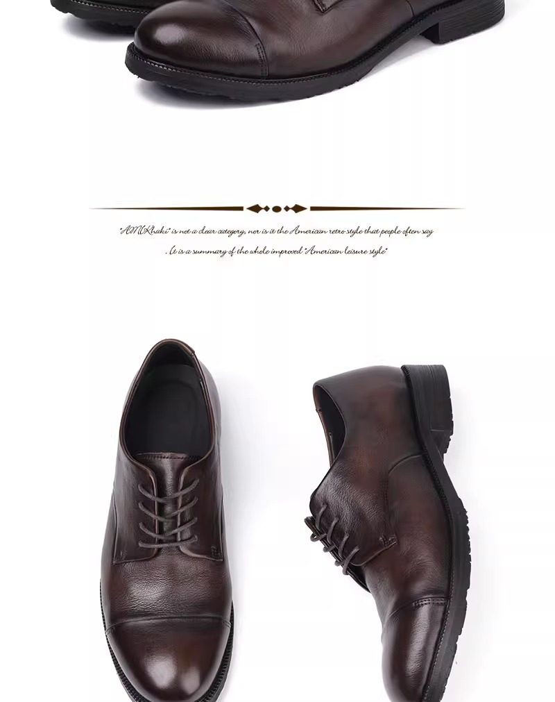 Retro Men's Shoes, Handmade Genuine Leather, Color-Rubbed, Distressed Casual Leather Shoes, American Ami Khaki Round-Toe Soft-Soled Oxford Shoes