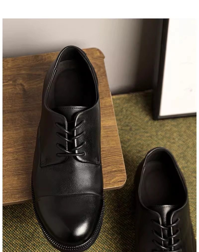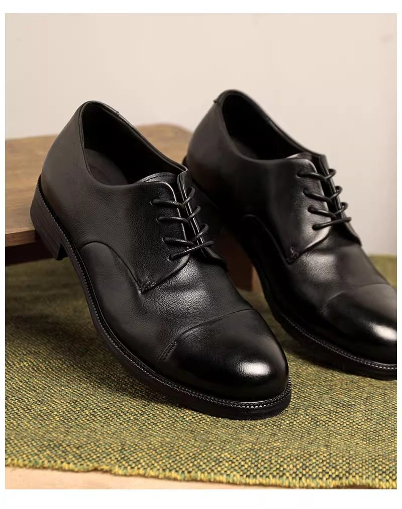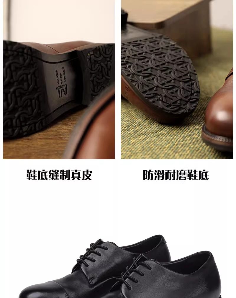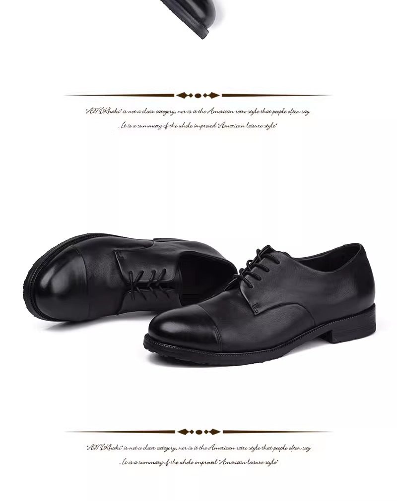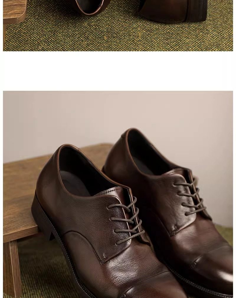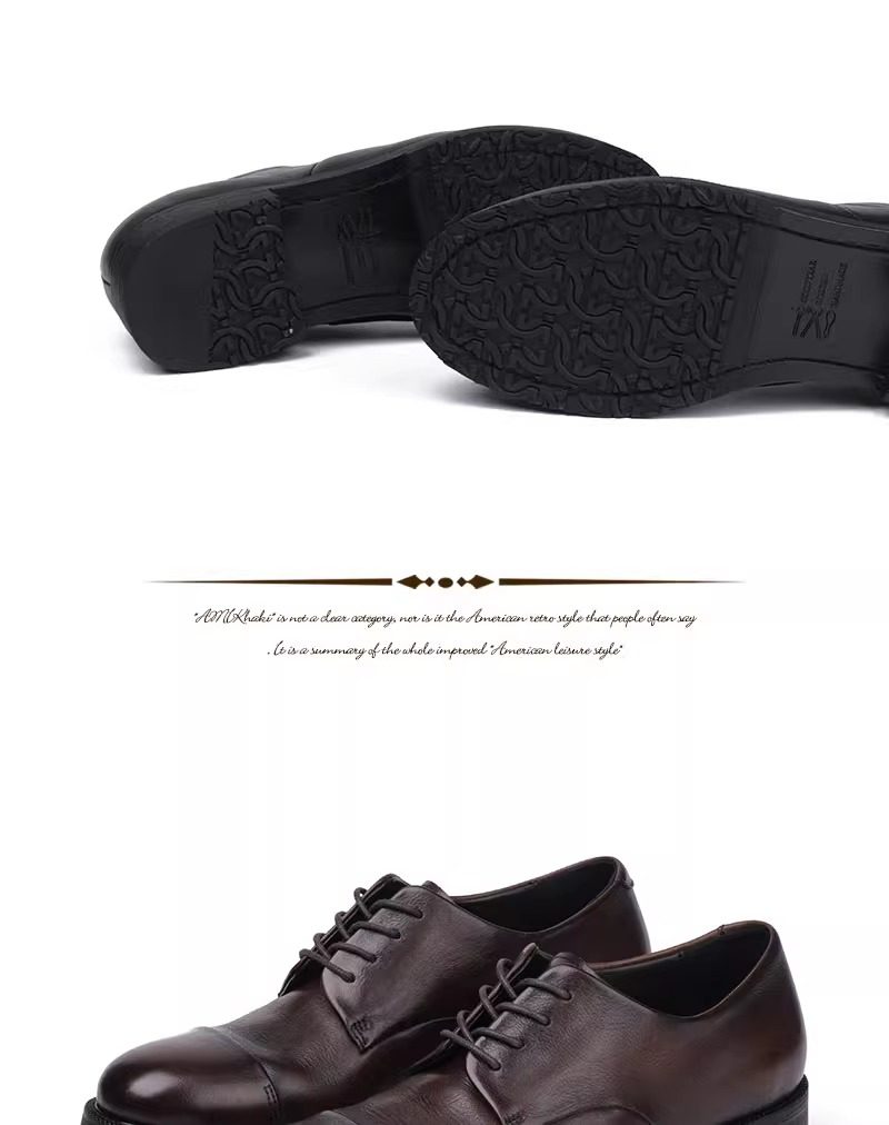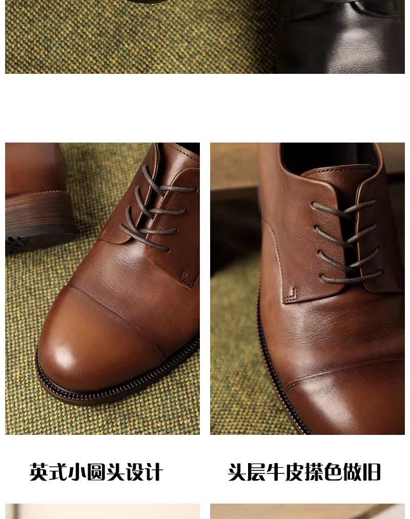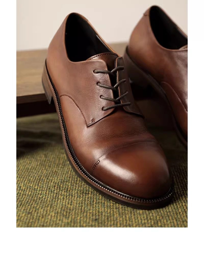Retro Men's Shoes, Handmade Genuine Leather, Color-Rubbed, Distressed Casual Leather Shoes, American Ami Khaki Round-Toe Soft-Soled Oxford Shoes