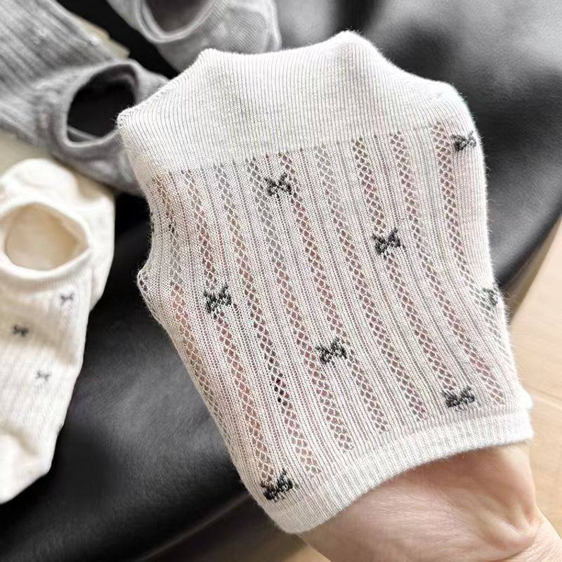 Bowknot ins Style Women's Socks, No-Show Socks, Low-Cut Summer Thin Non-Slip Invisible Breathable Short Socks