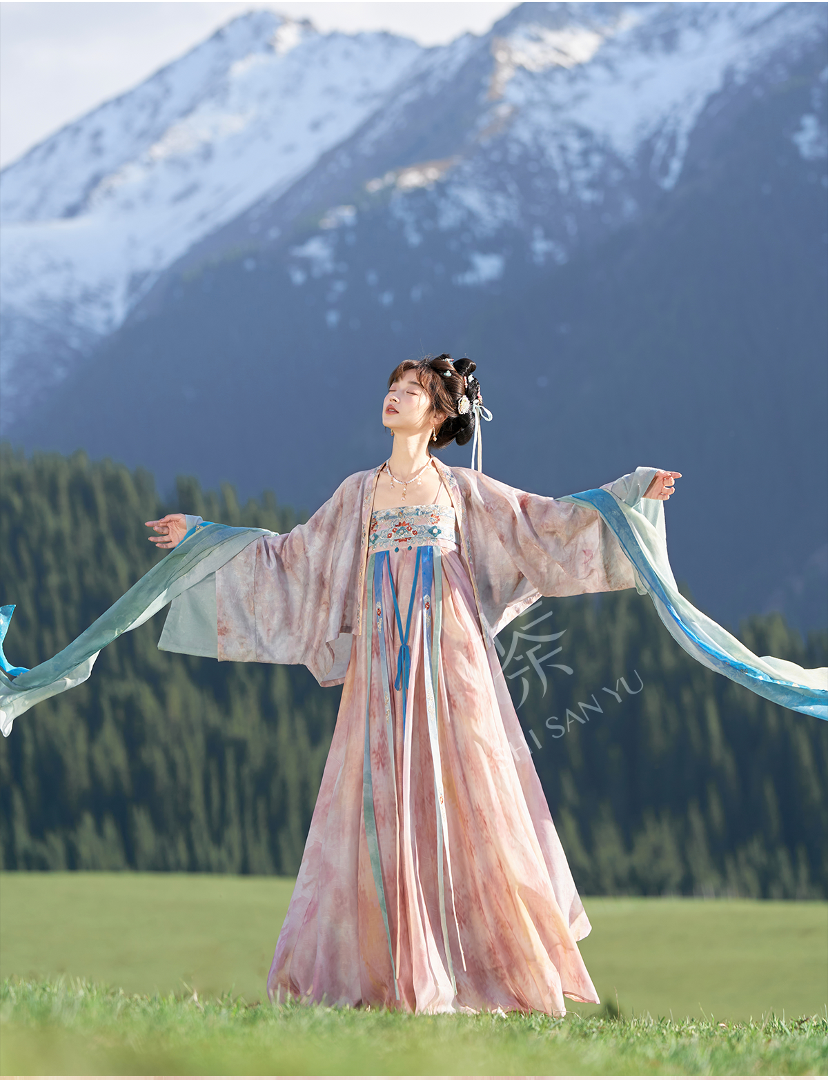 Thirteen Years Old Little Maiden [Yumen Yunni] Spring and Summer Silk Girl's Kaifeng Temple Strap Dress Hanfu Women's Adult Style