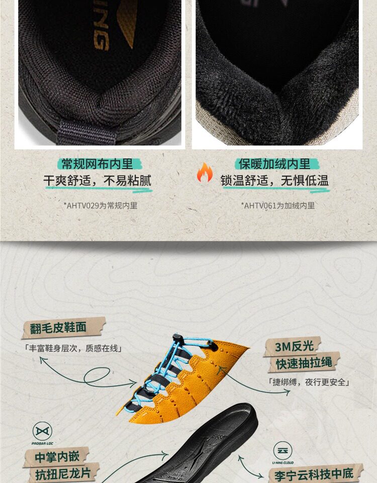 Xiao Zhan's Same Style Li-Ning Outdoor Cf Se Casual Shoes for Men and Women, Winter Fleece-Lined Cushioning Trendy Sports Shoes