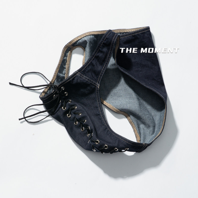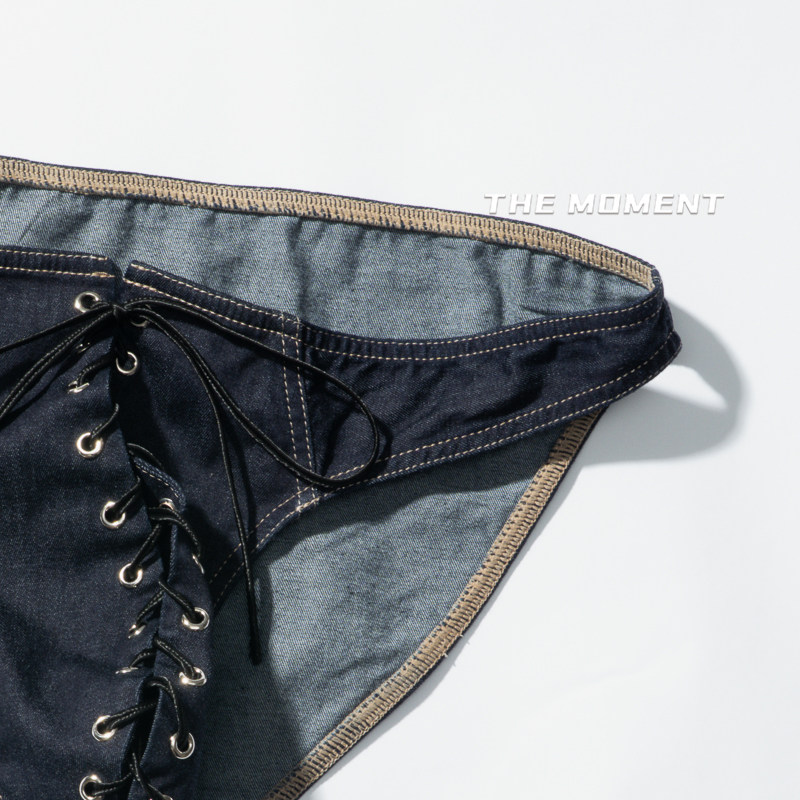 Original Sexy Blue Denim String Thong with High Slit, Fashionable Designer Style for Men, Size 25