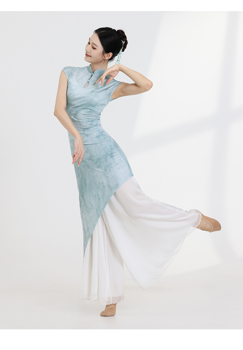 Fubo New Chinese Style Hanfu Qipao National Style Performance Costume Sleeveless Dress for Women, Flowing Performance and Practice Clothing