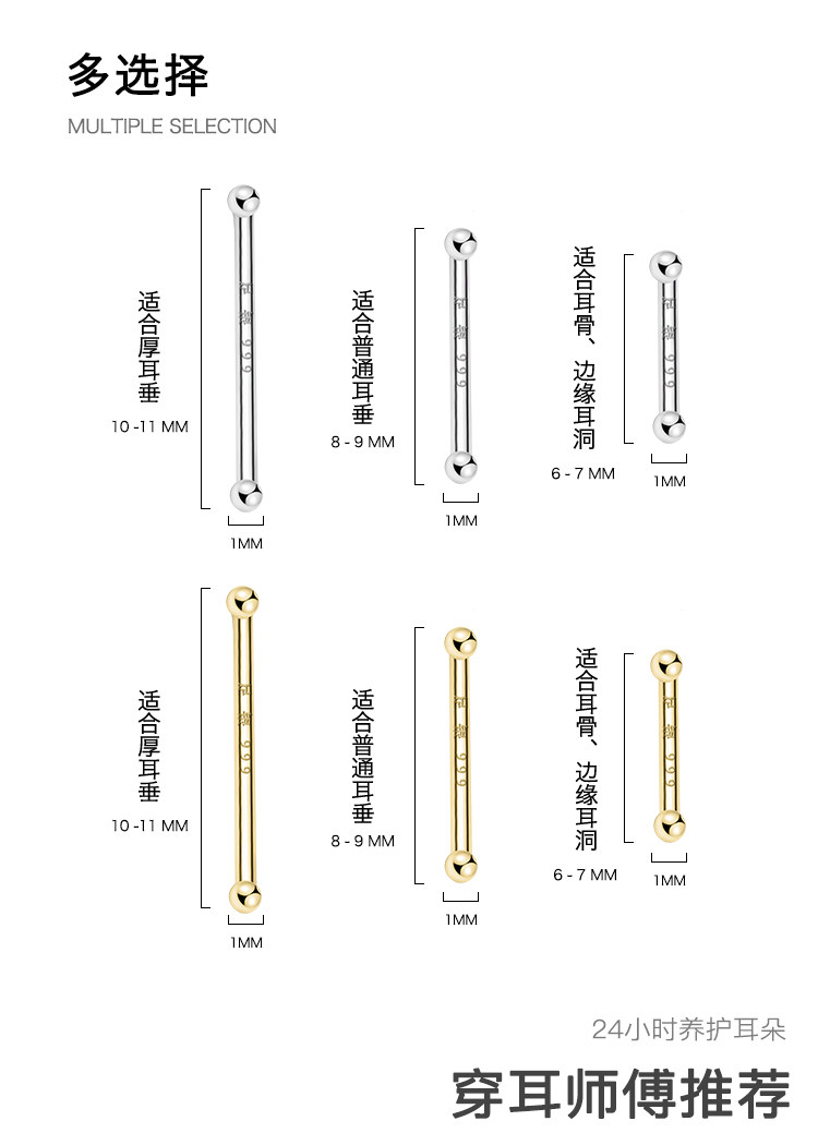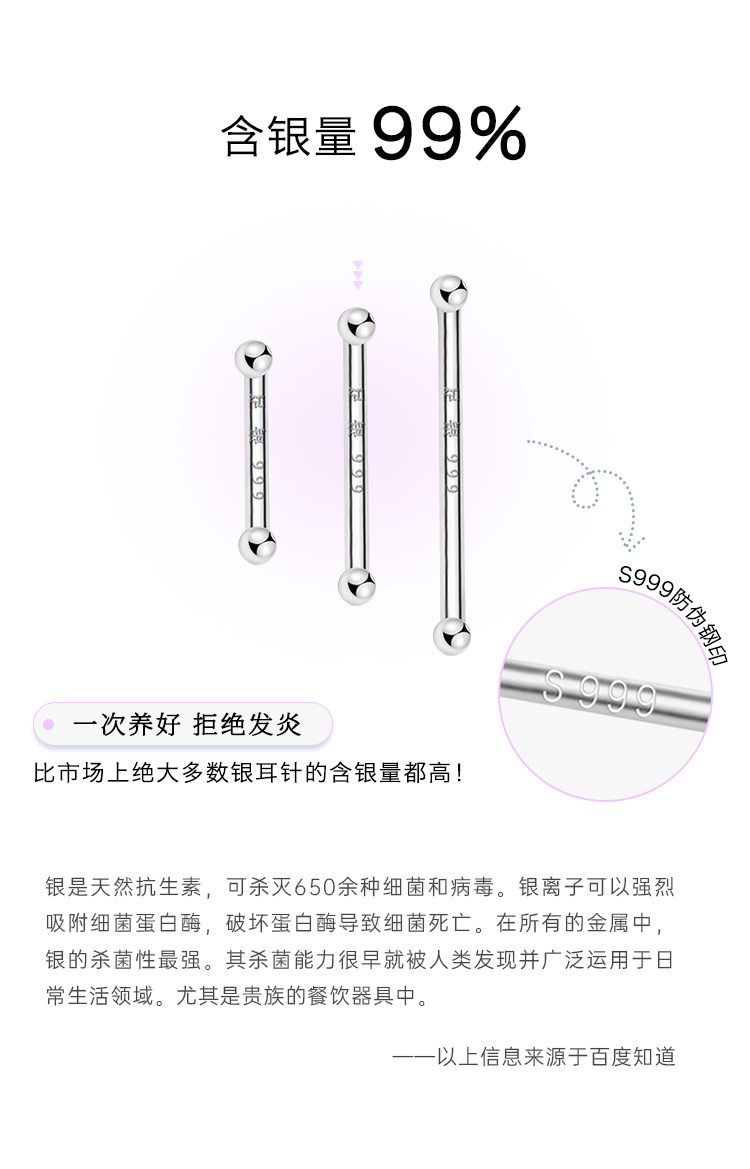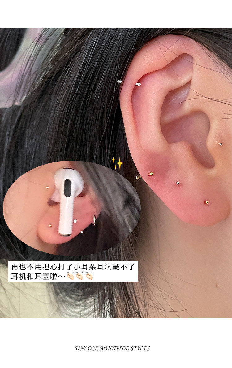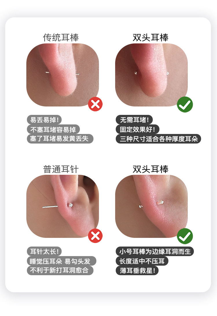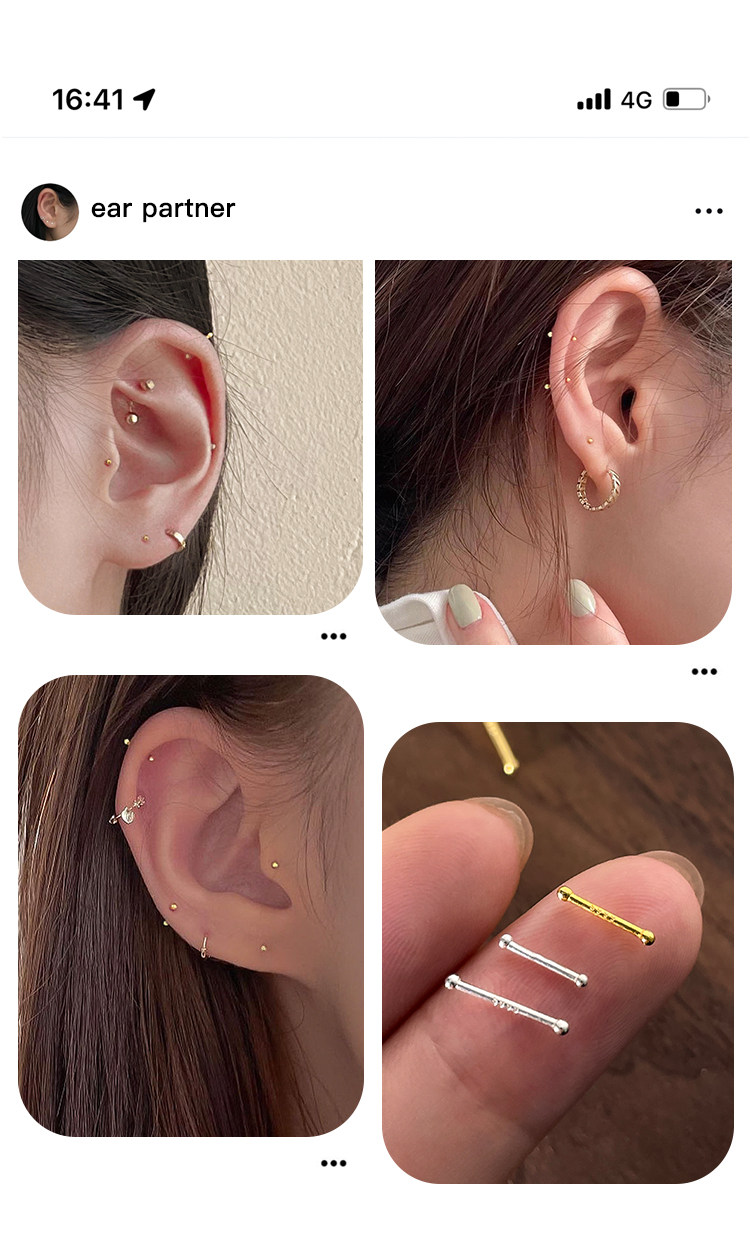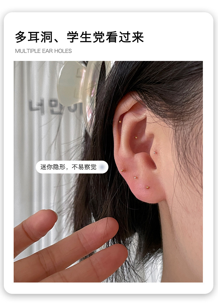 999 Pure Silver Ear Studs for Ear Care, Mini Ear Cartilage Studs, Sleep Without Removing, Small Ear Rods, Anti-Clogging Needle, Silver Ear Jewelry, Cochlear Studs