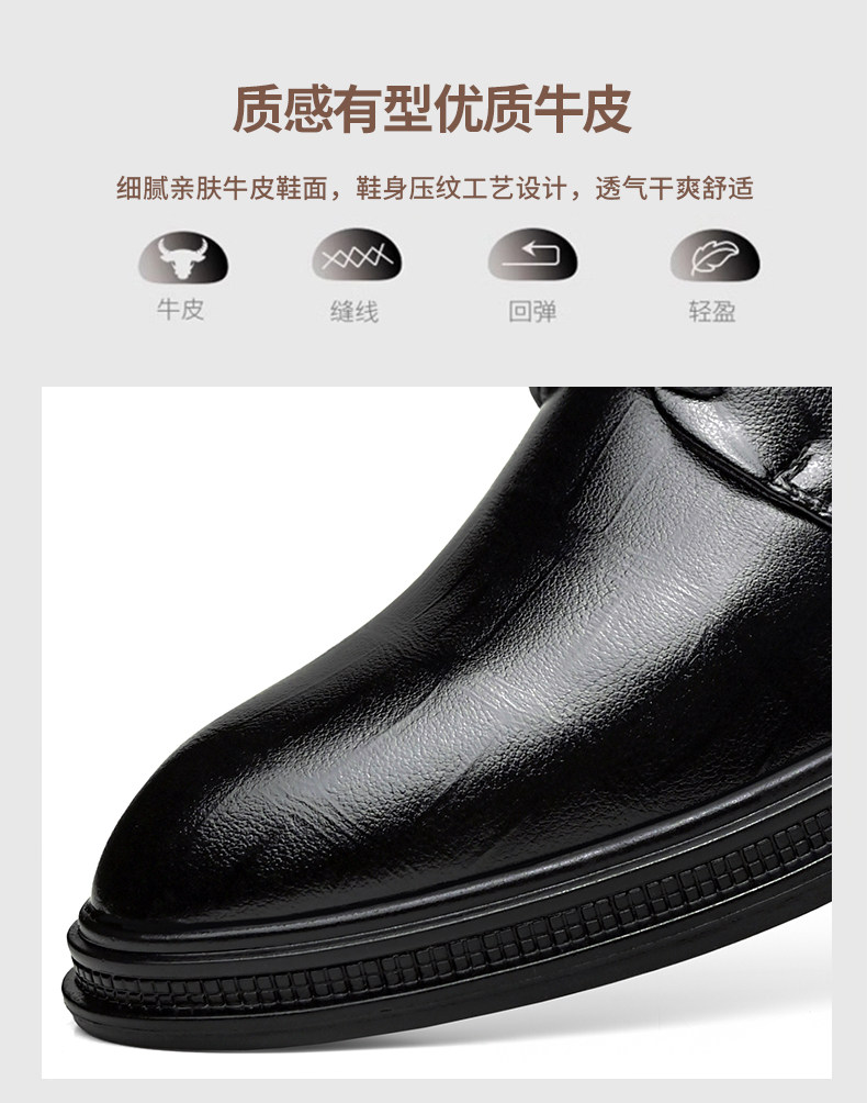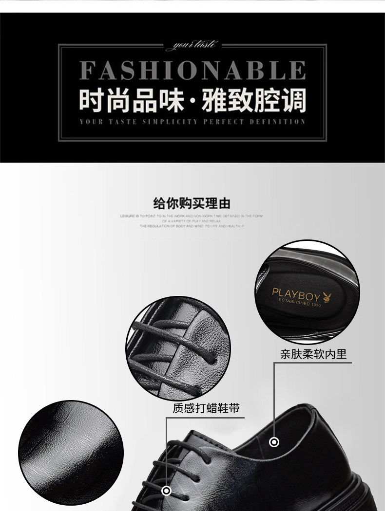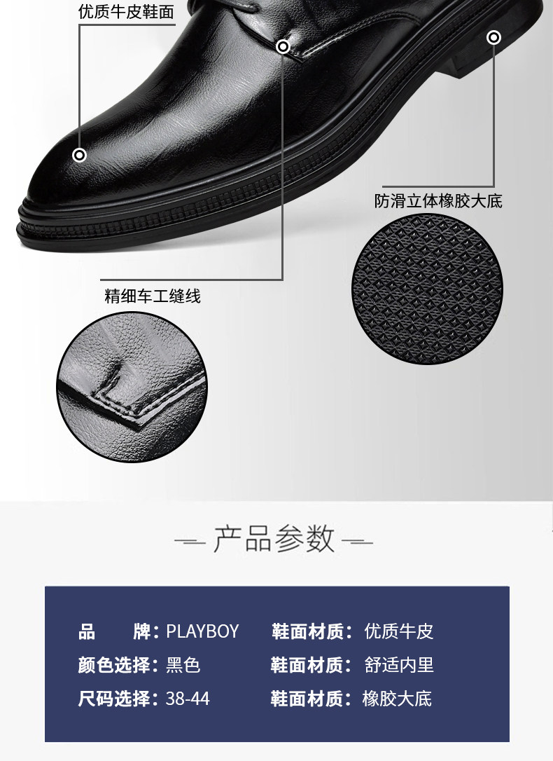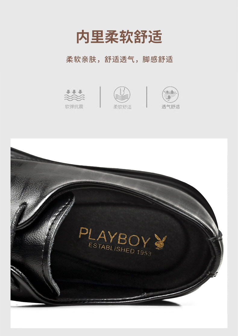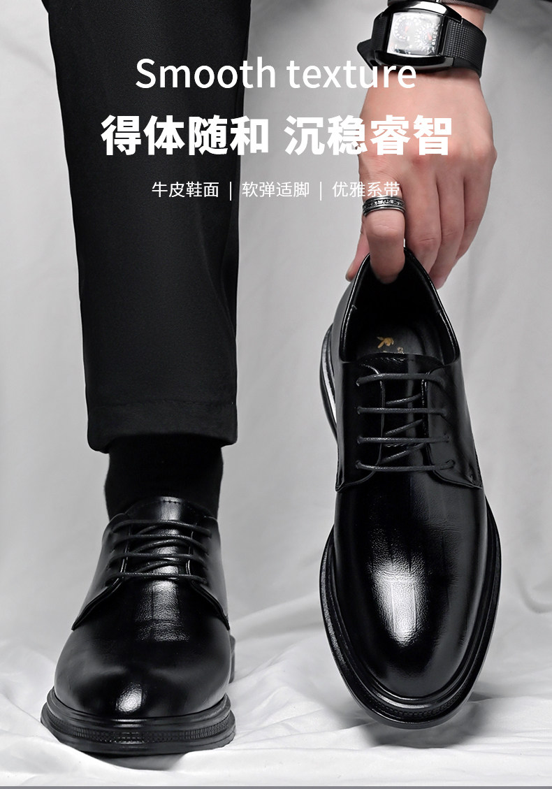 Playboy New Men's Shoes Spring and Autumn British Style Business Leather Shoes Men's Genuine Leather Formal Height-Increasing Wedding Groom Shoes
