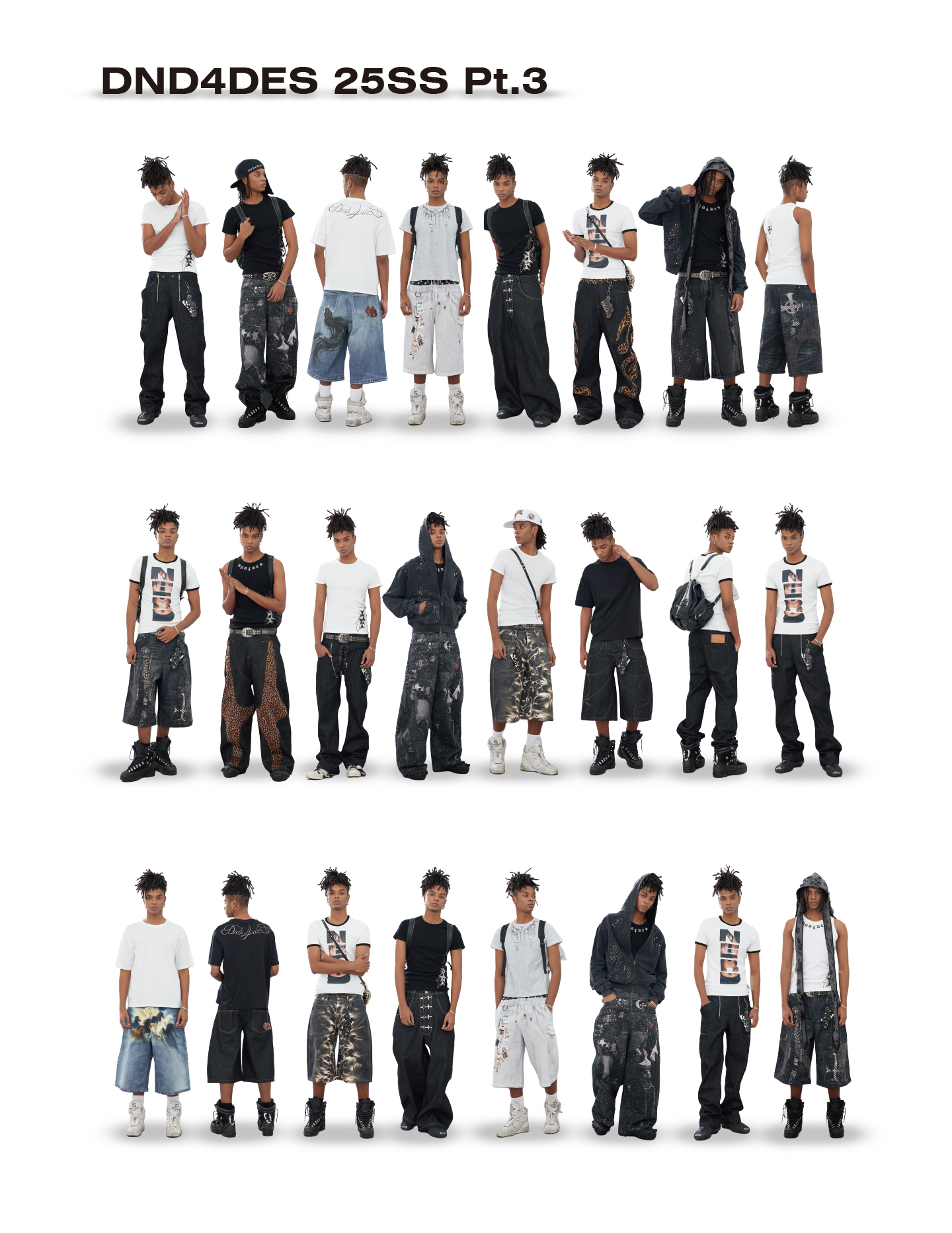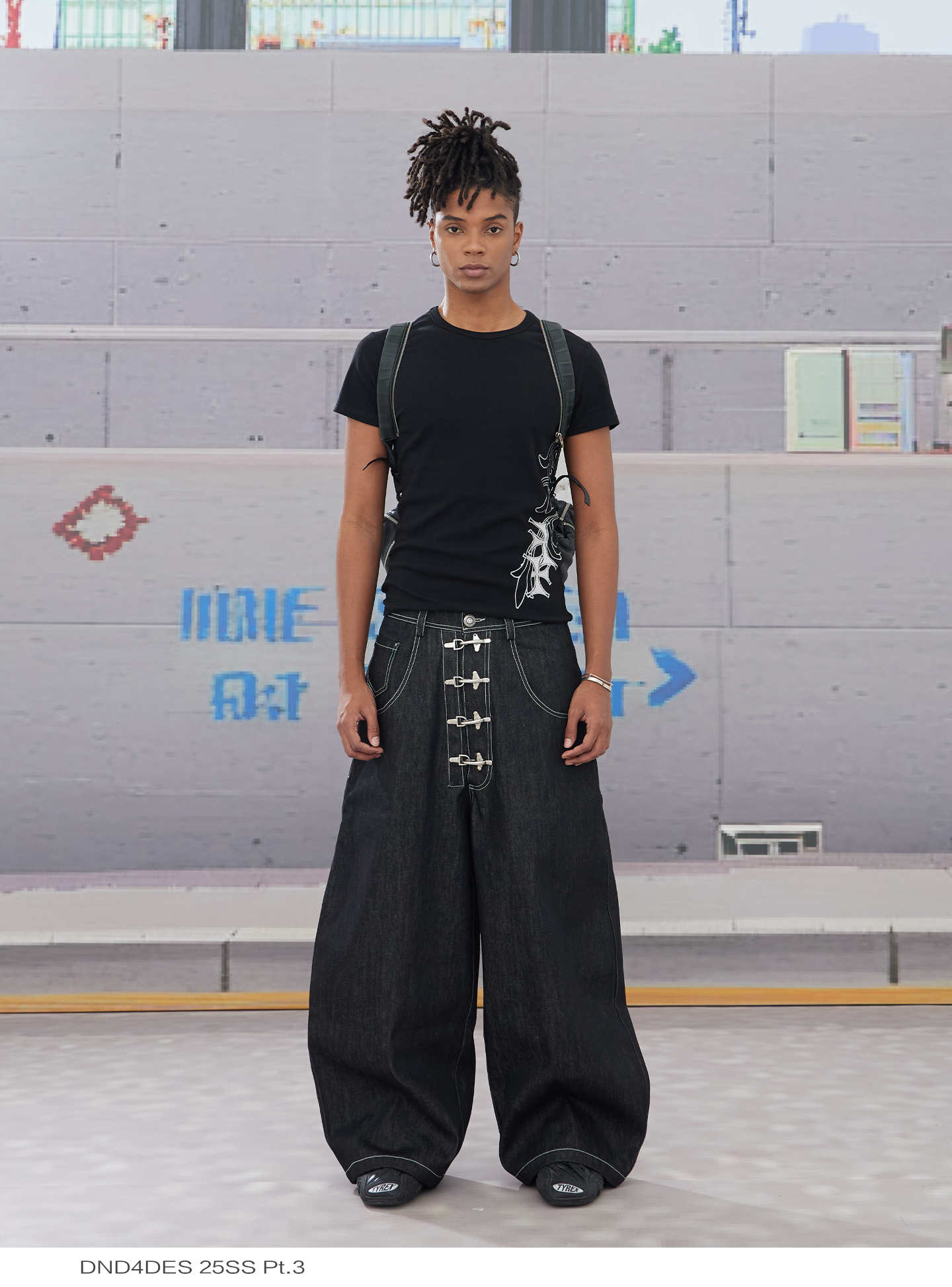 Wang Yiheng's Same Style Dnd4Des American Street Design Denim Raw Leather Airplane Buckle Baggy Scimitar Jeans