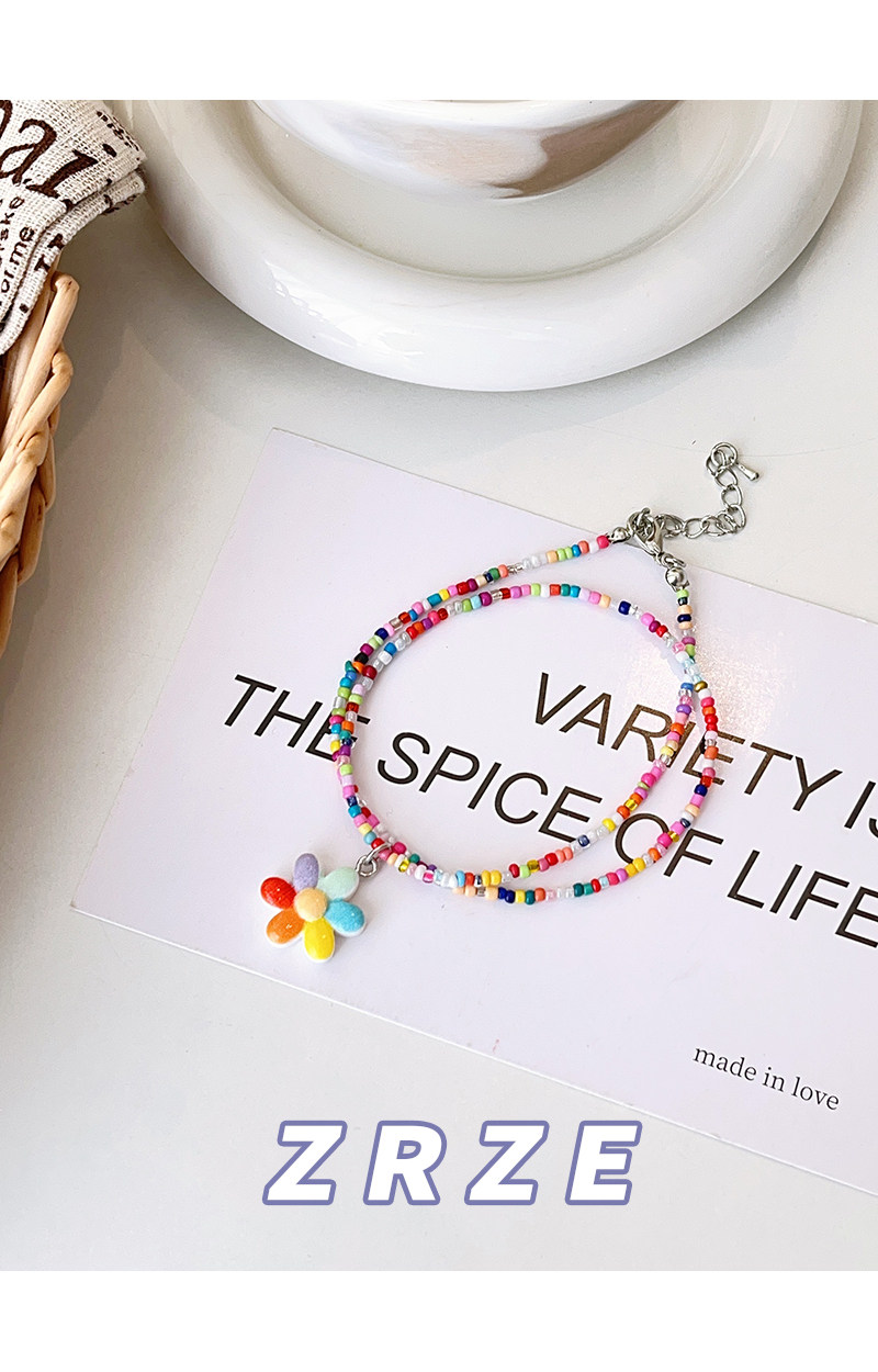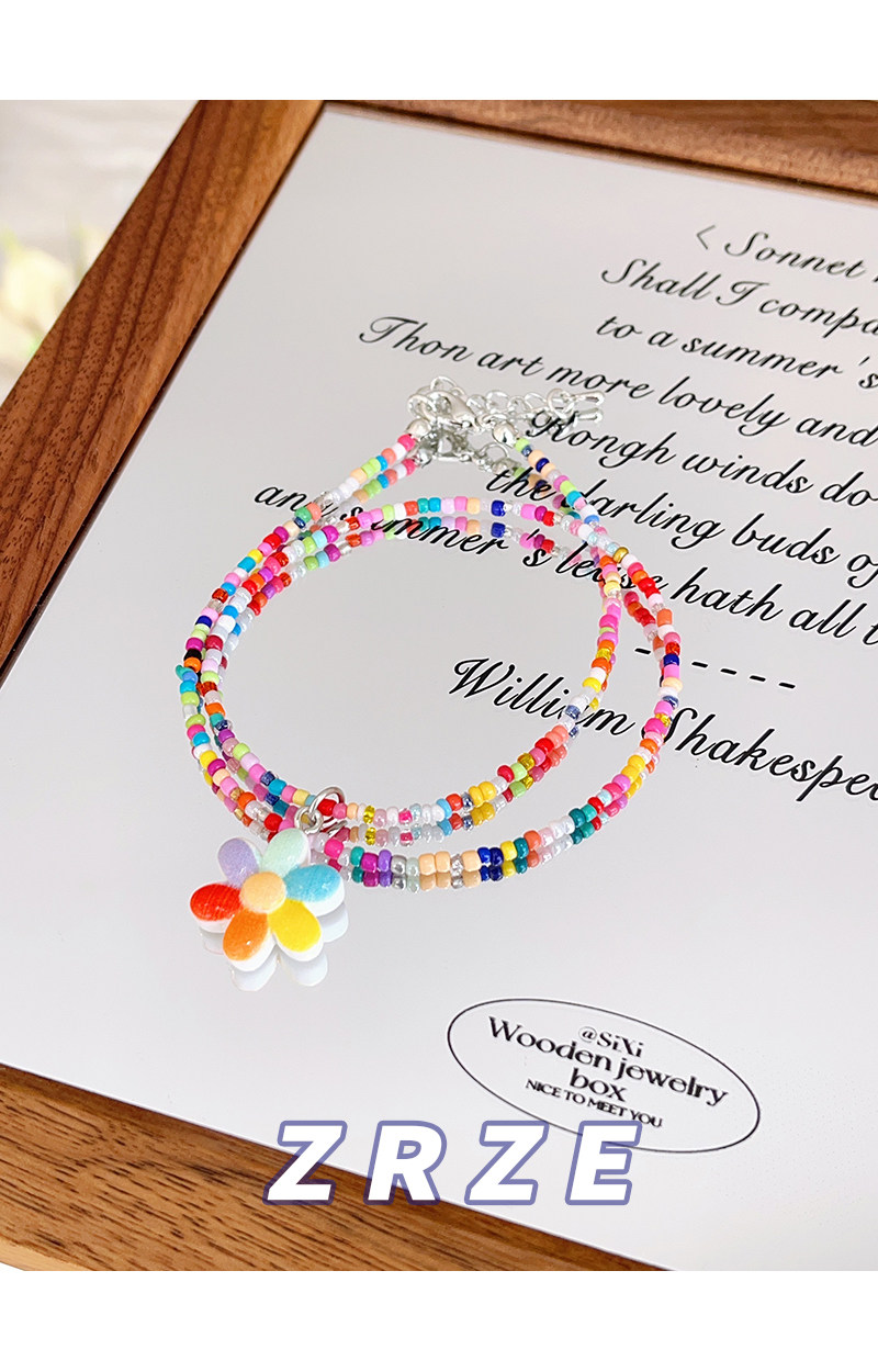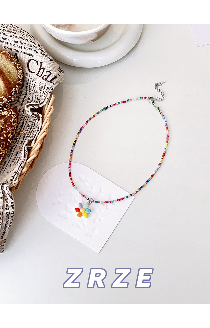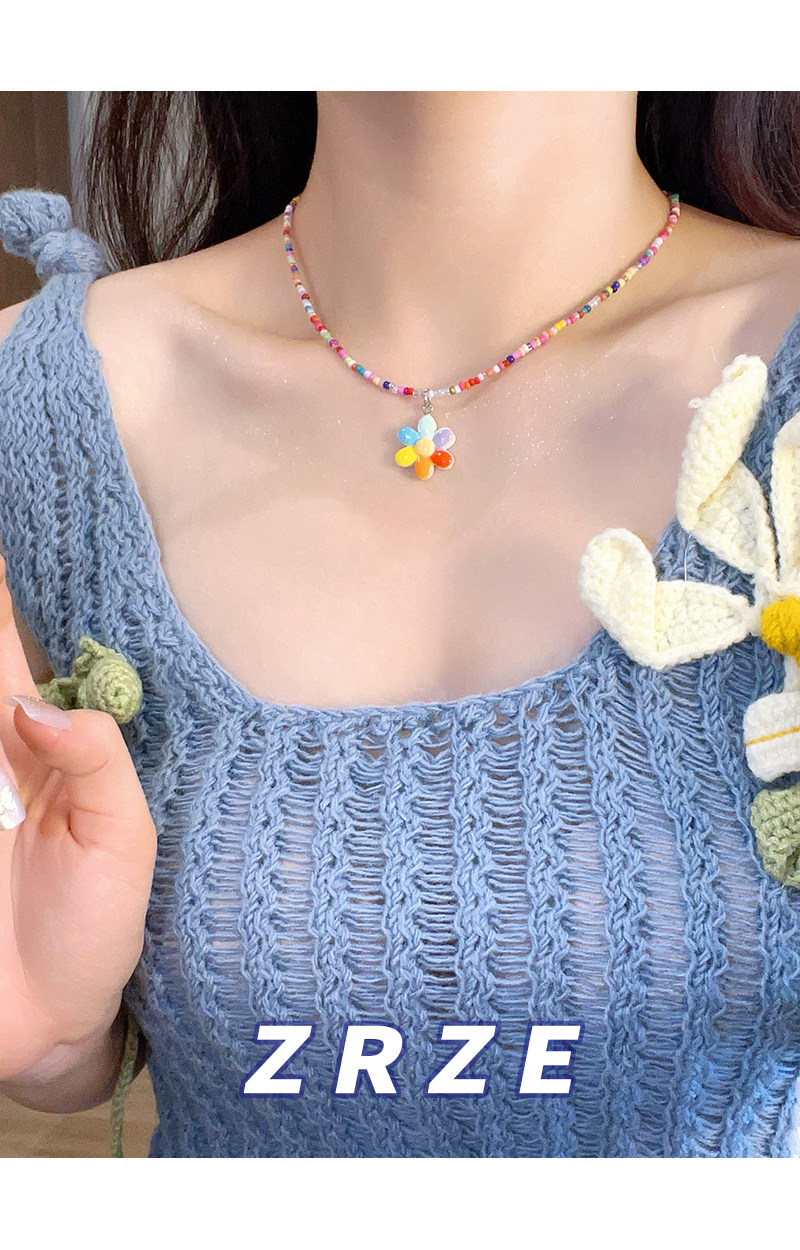 Zrze Summer Dopamine Rainbow Flower Necklace for Women Sweet Colorful Beaded Pendant Cute Girly Heart Clavicle Chain