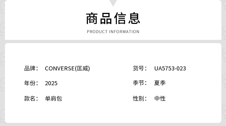 Converse Summer New Unisex Crossbody Bag Casual Shoulder Bag Tote Bag Ua5753-023