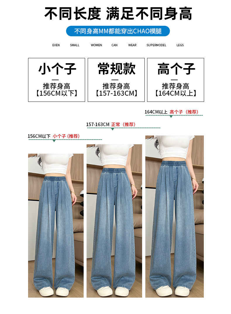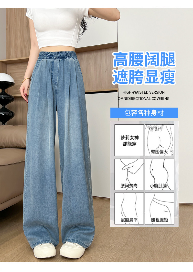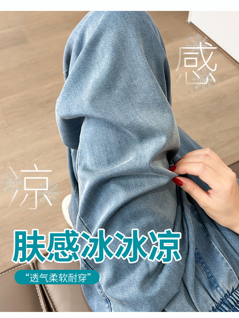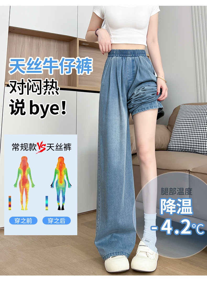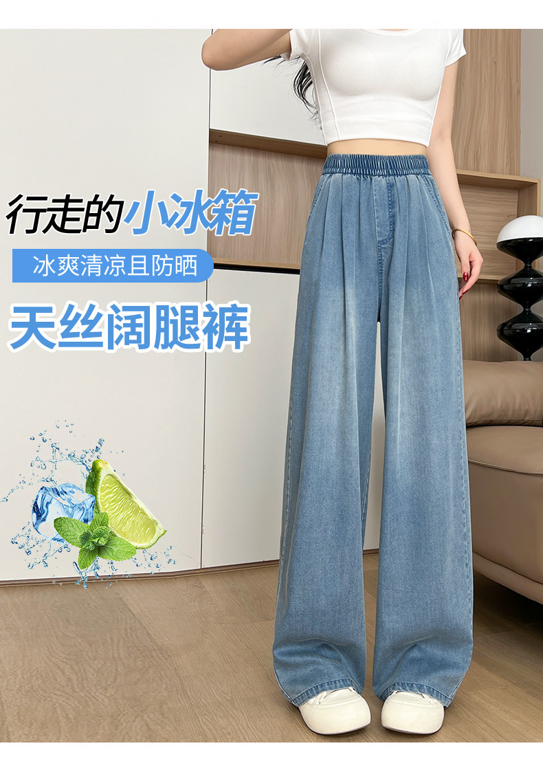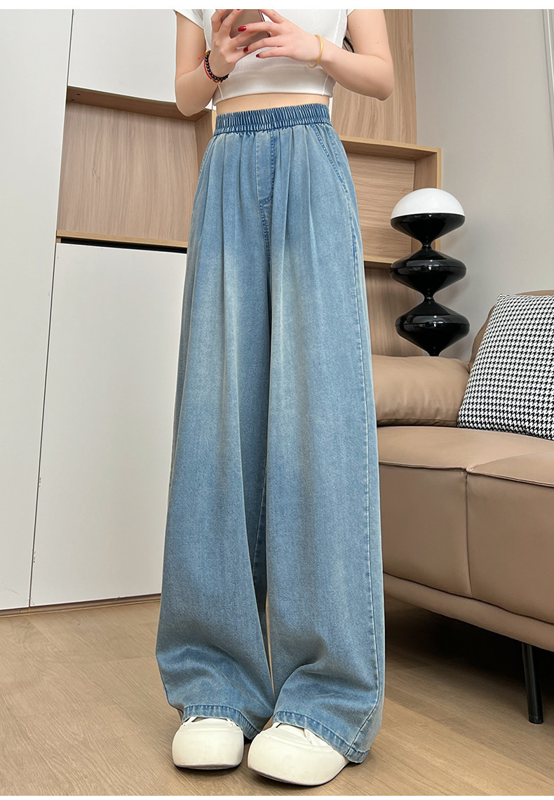 Tencel Jeans Women's Pants Summer Thin Loose Plus Size Straight Casual Petite Ice Silk Wide-Leg Pants