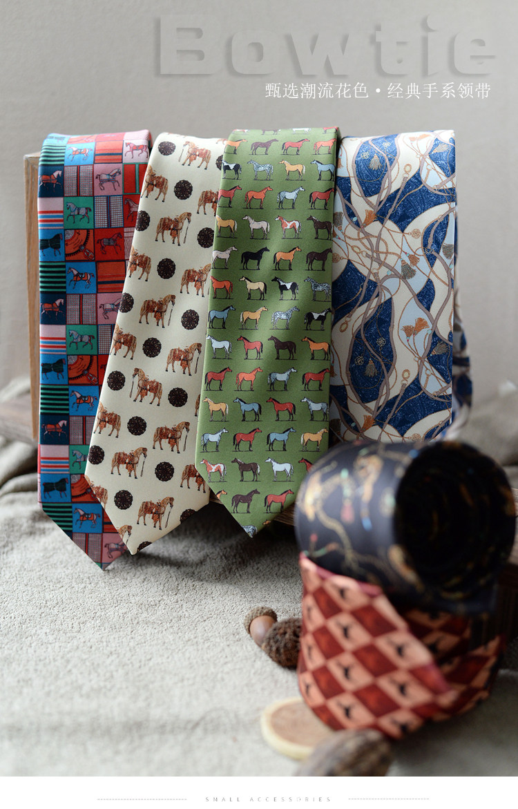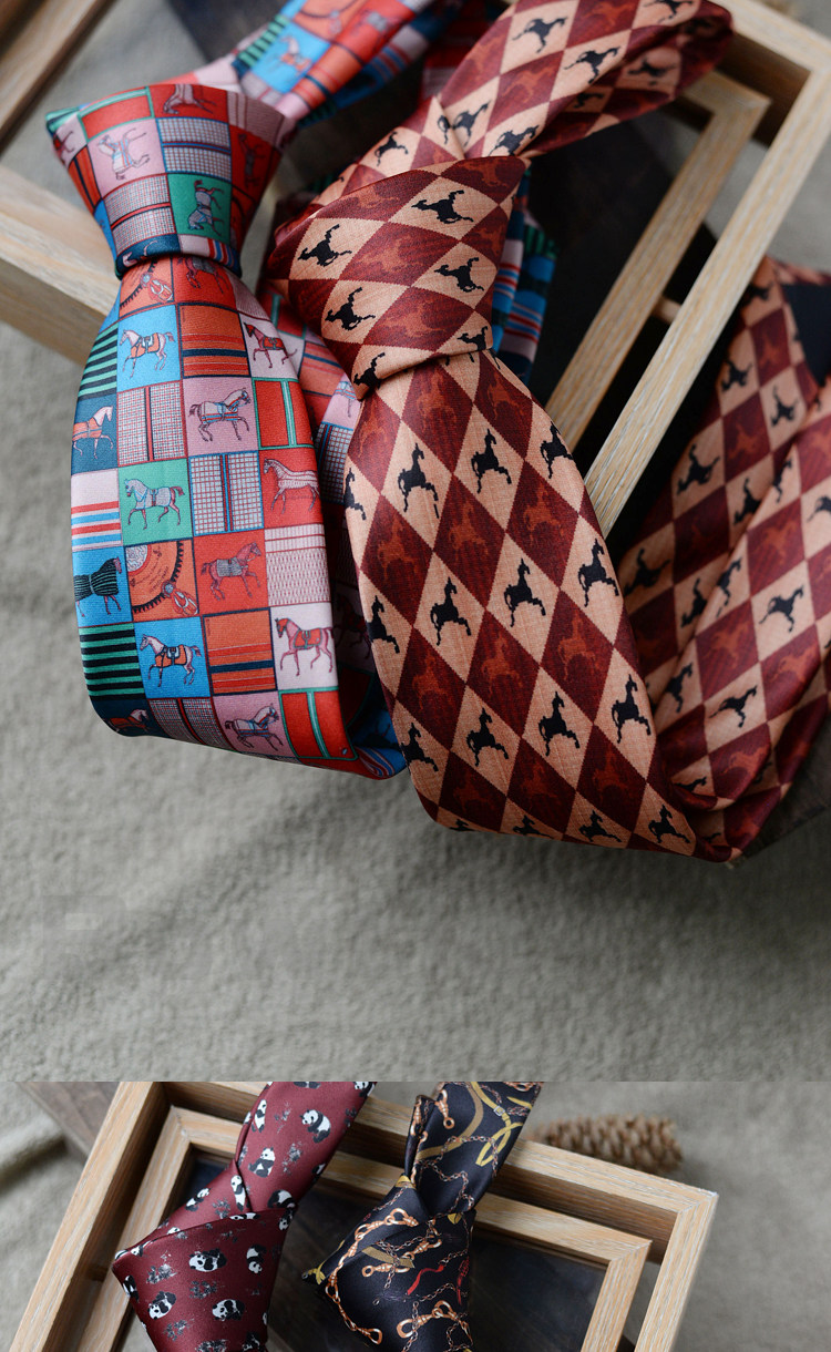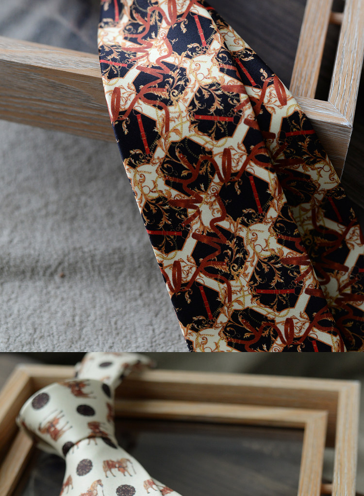Hand-Printed Fashion Retro Tie Patterned Shirt Suit Accessories with a High-End, Interesting, Unique Animal French Style Trend