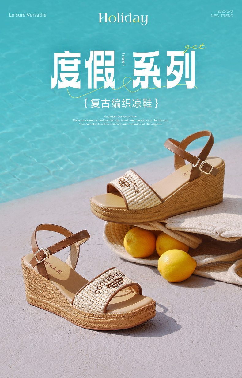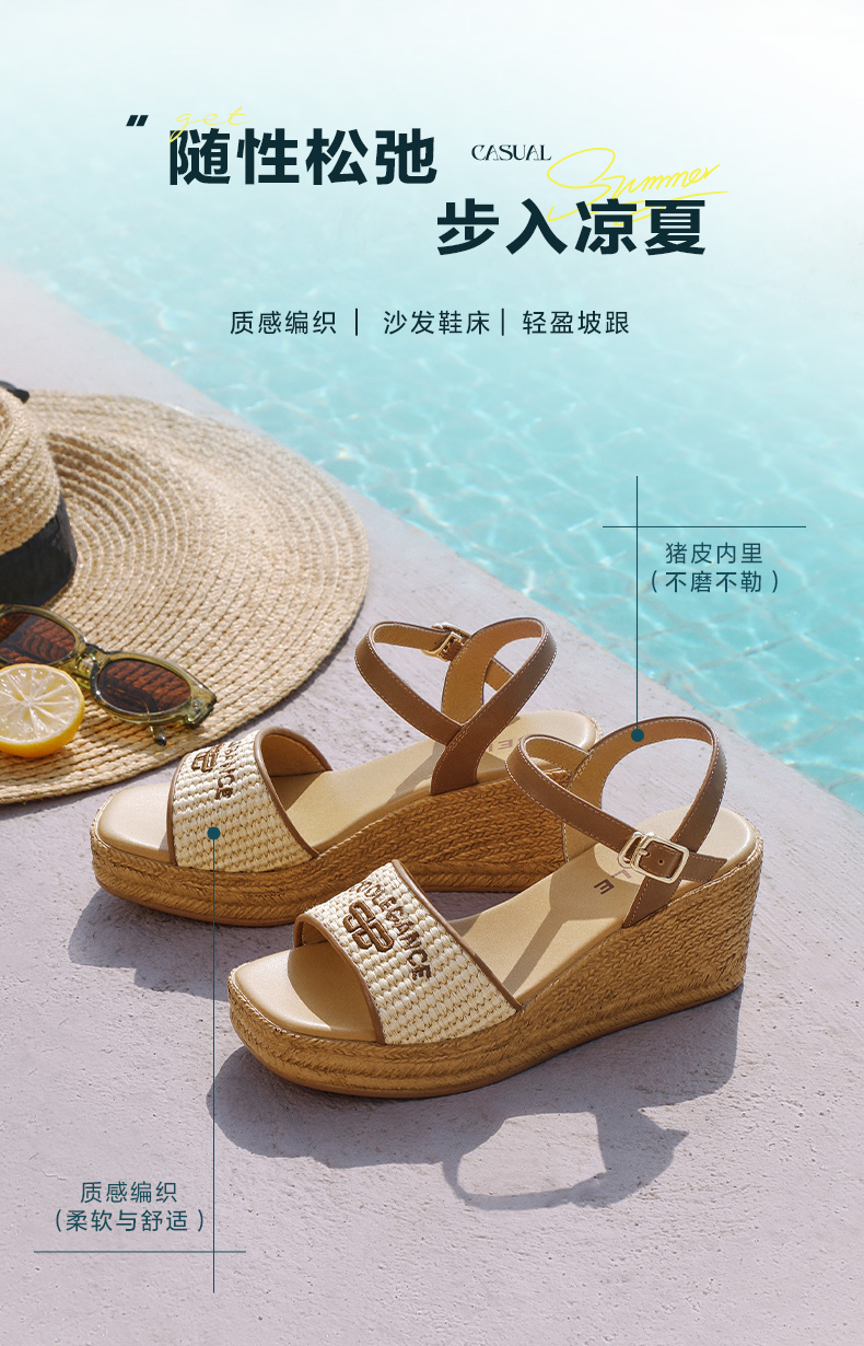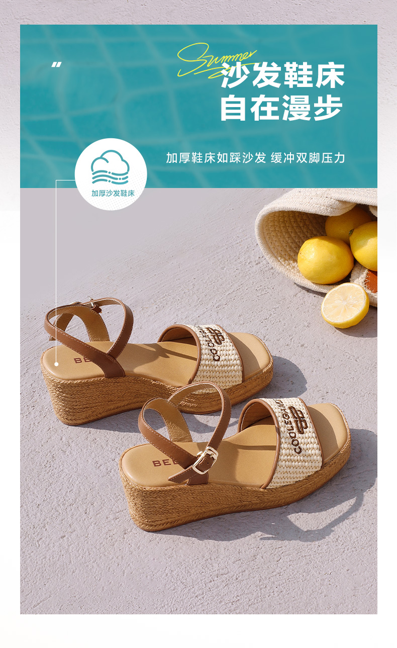 Belle Women's Woven Vacation Casual Sandals 2025 Summer Thick-Soled Wedge Beach Sandals D6J1Dbl5