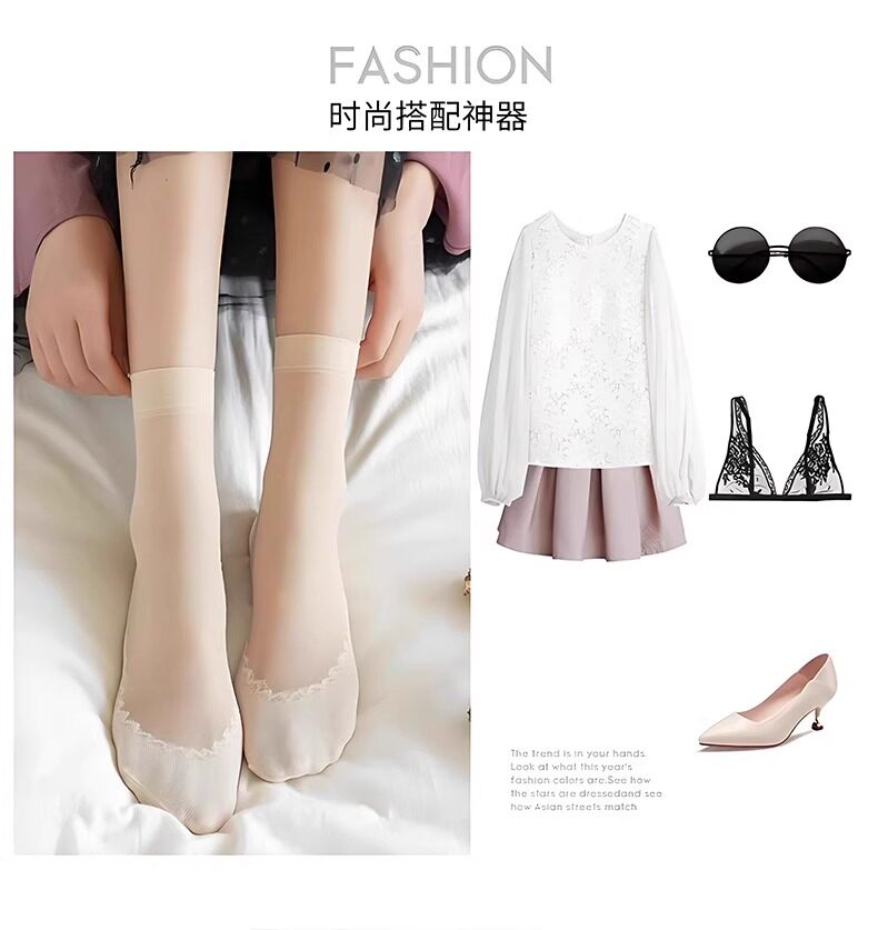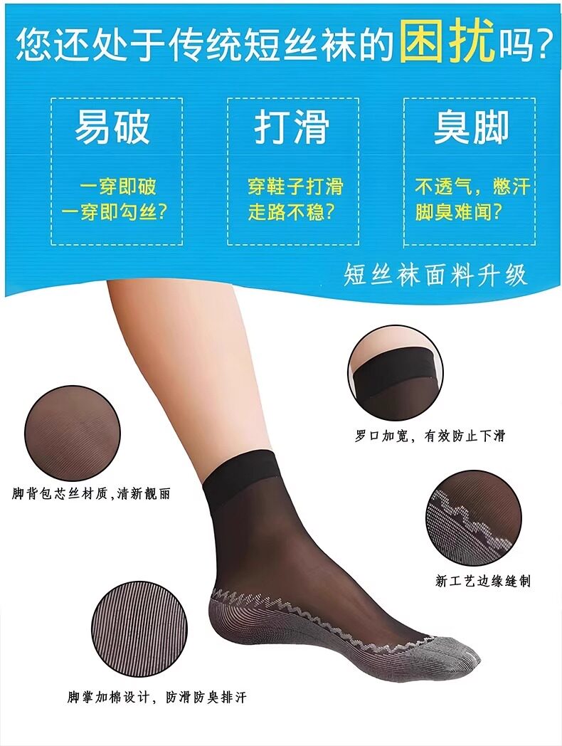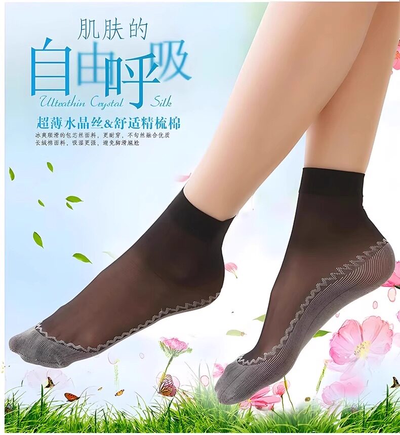 Popular Korean Style Second-Generation Women's Cotton-Soled Steel Socks, Cotton-Soled, Sweat-Absorbent, Breathable, Anti-Snagging, Spring and Summer Student Mask Socks