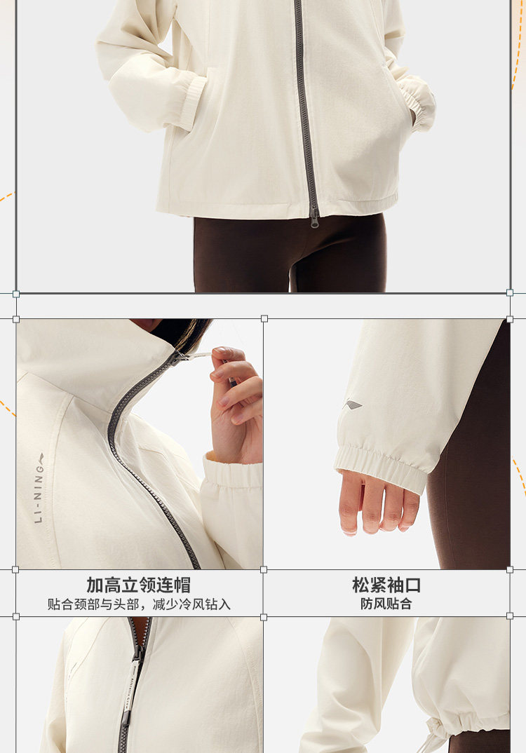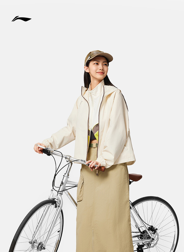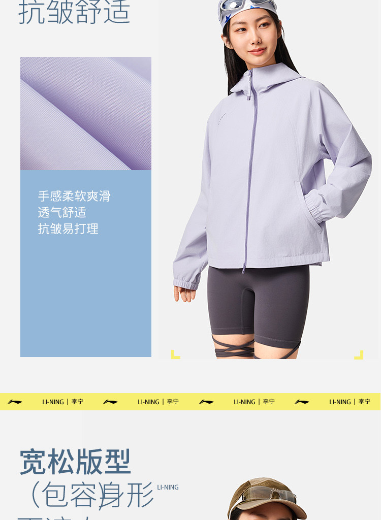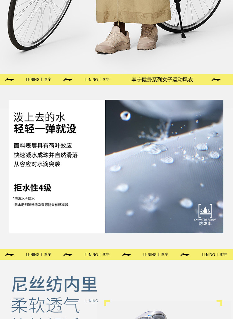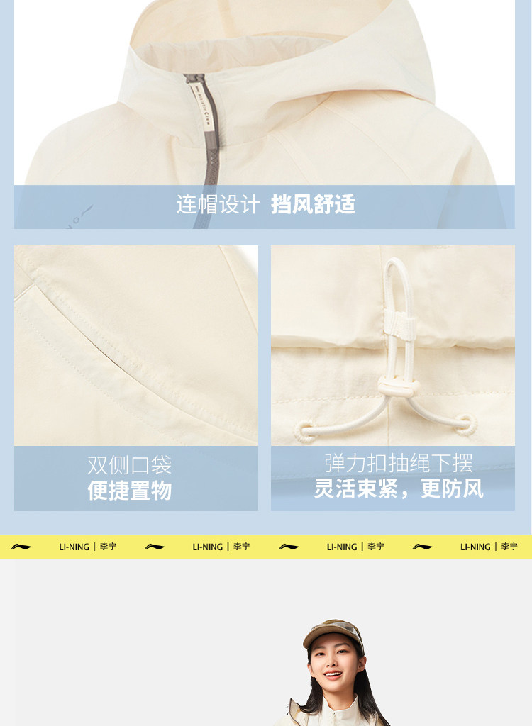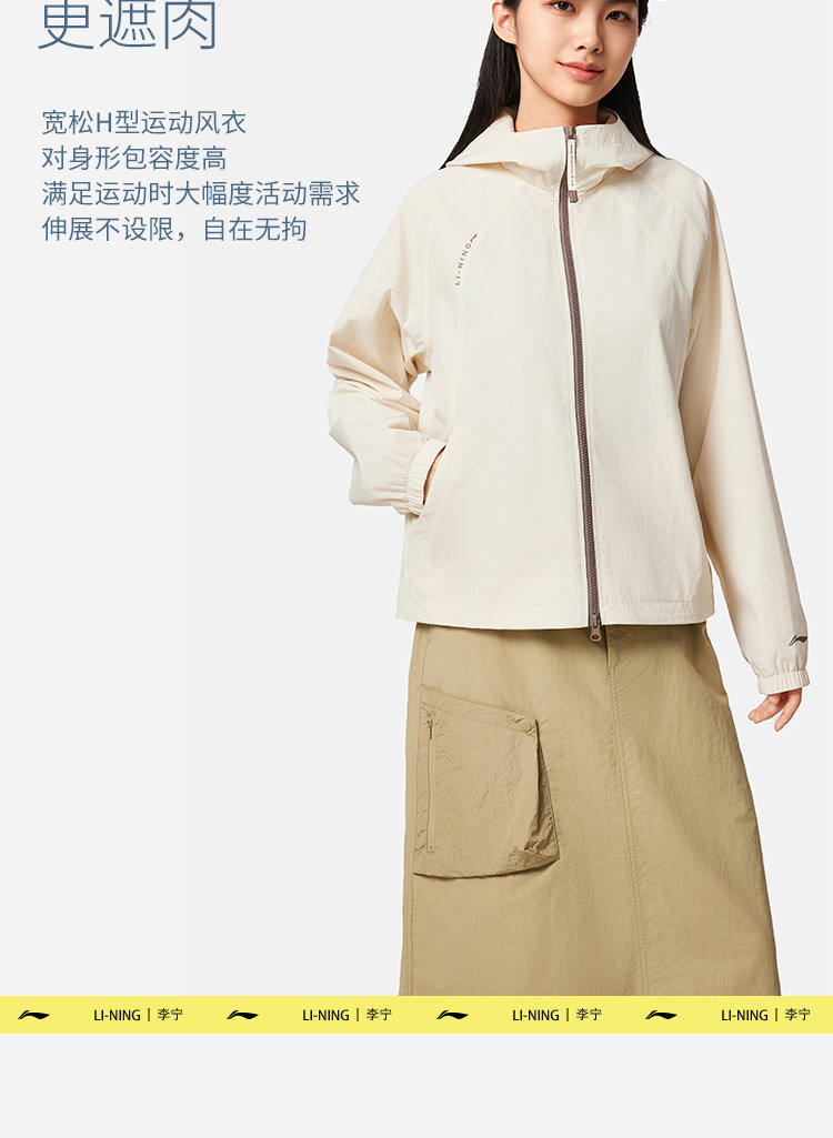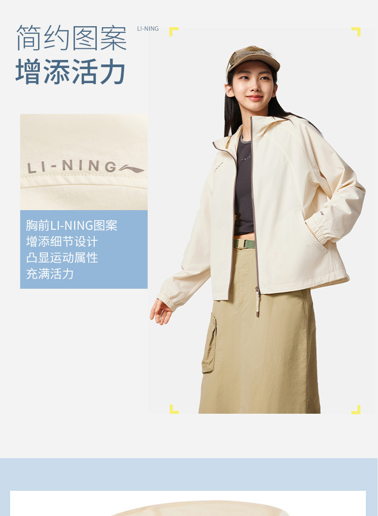Li Ning Women's Spring Running Jacket, Water-Repellent, Windproof, Softshell Casual Hooded Top, Sports Windbreaker for Women