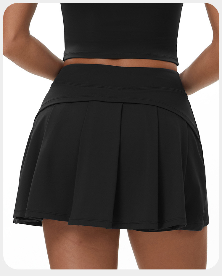 European and American Nude Yoga Skirt Women's High-Waist Sports Fitness Pants Training Pants Slightly Flared Trousers with Flap Pocket Pantss Elastic Tennis Skirt