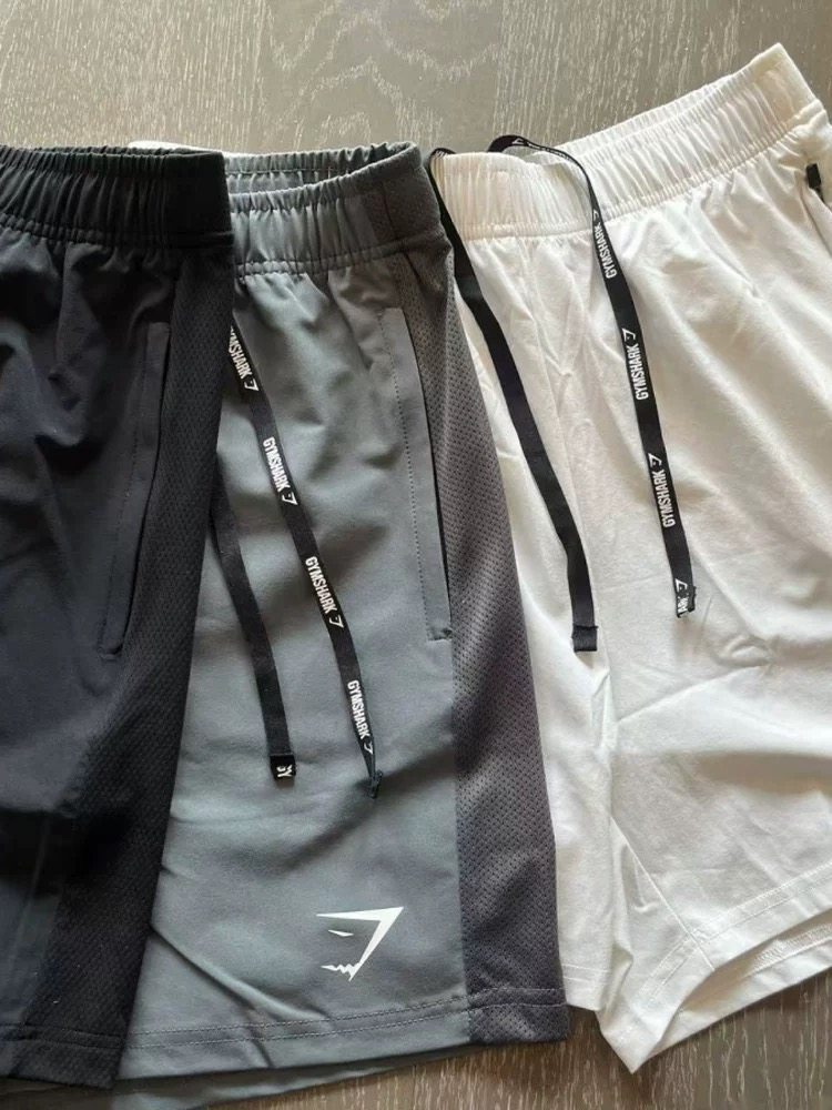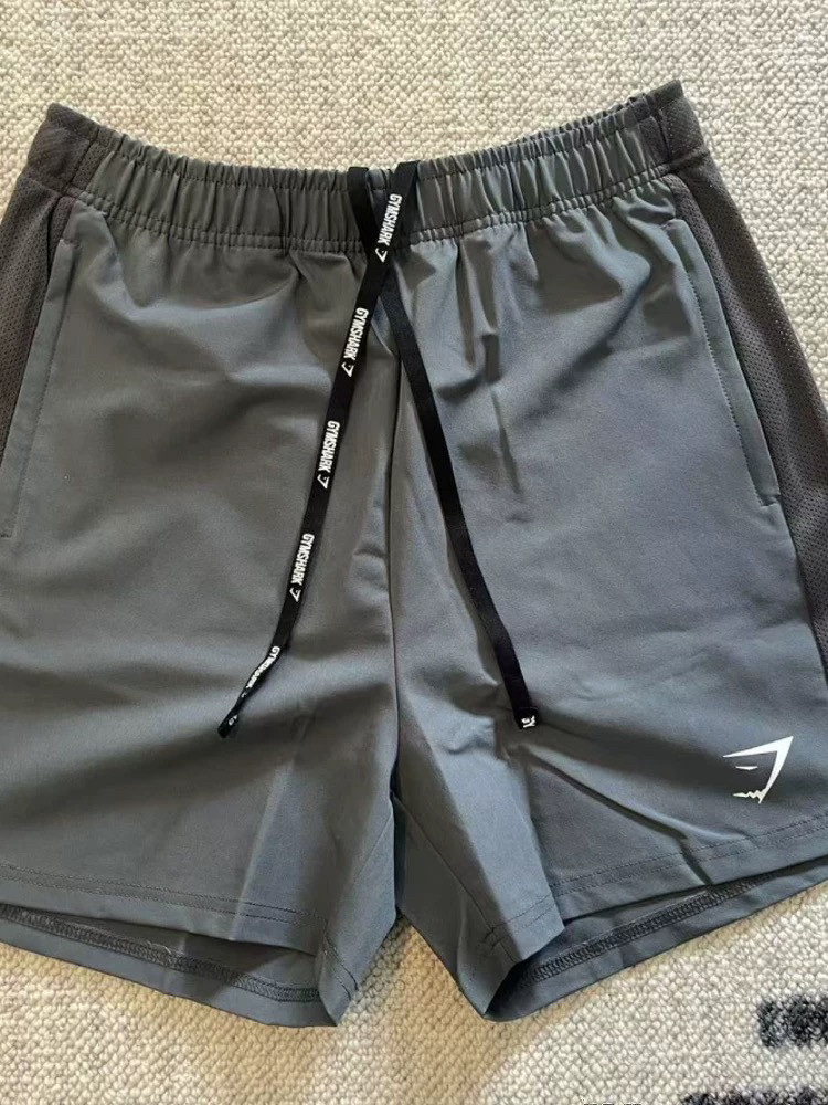 Gym Uk Shark Quick-Drying Shorts with Spliced Design, Breathable Sports Fitness Training Men's Running Quarter Pants