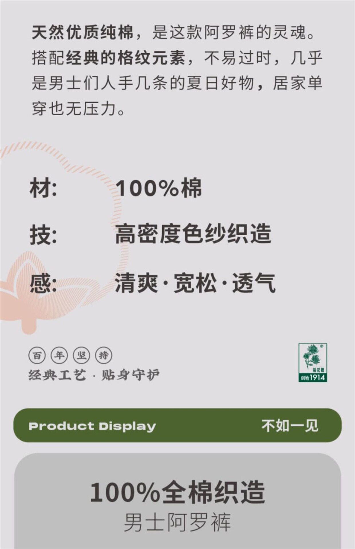 Shanghai Chrysanthemum Brand Pure Cotton Arrow Pants Plaid Home Casual Summer Home Men's Pants Are Loose, Comfortable and Breathable