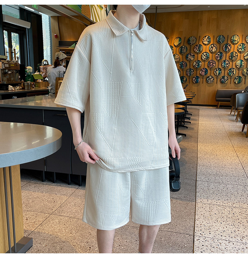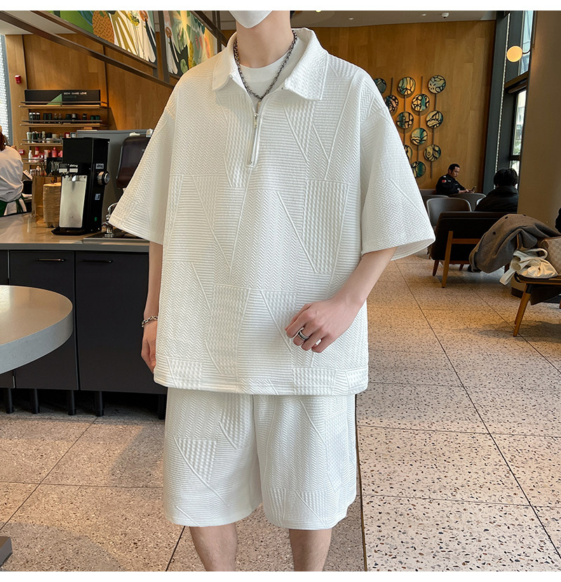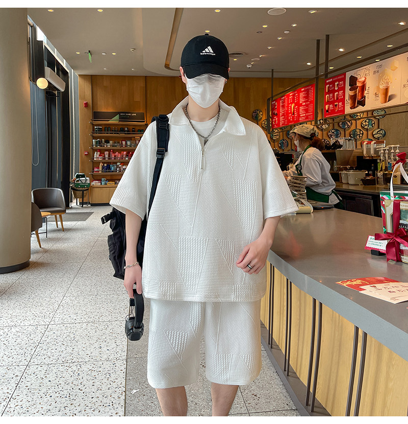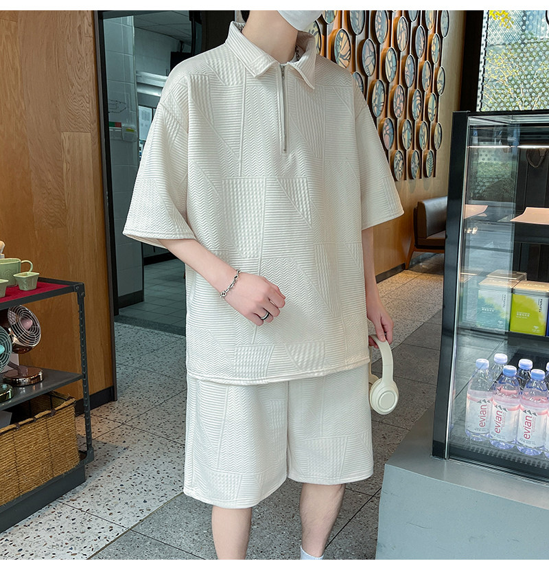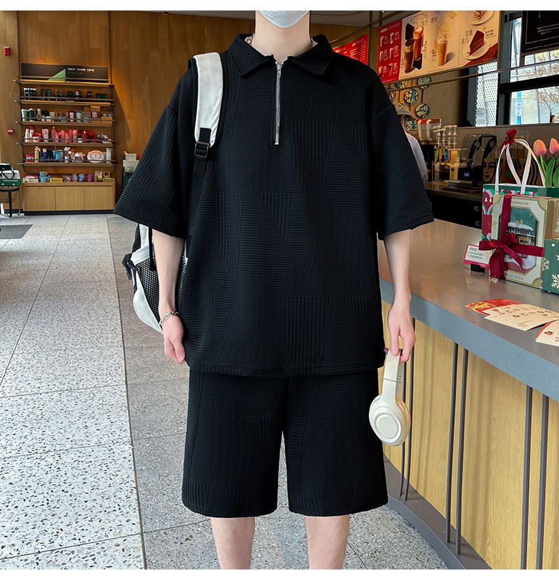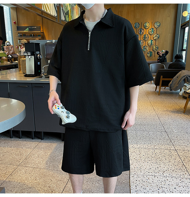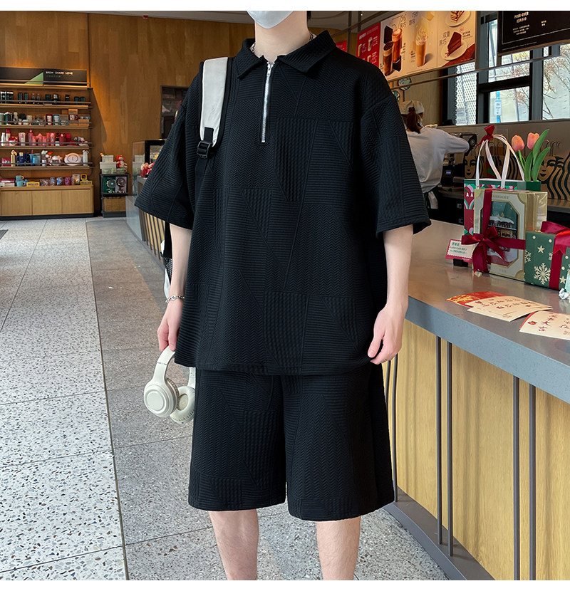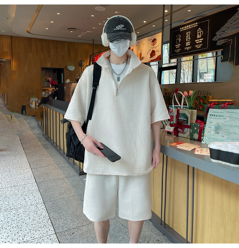 Clearance Sale: Export Surplus Summer Fashion Set for Men, Stand-Up Collar Short-Sleeve T-Shirt Paired with Five-Point Shorts